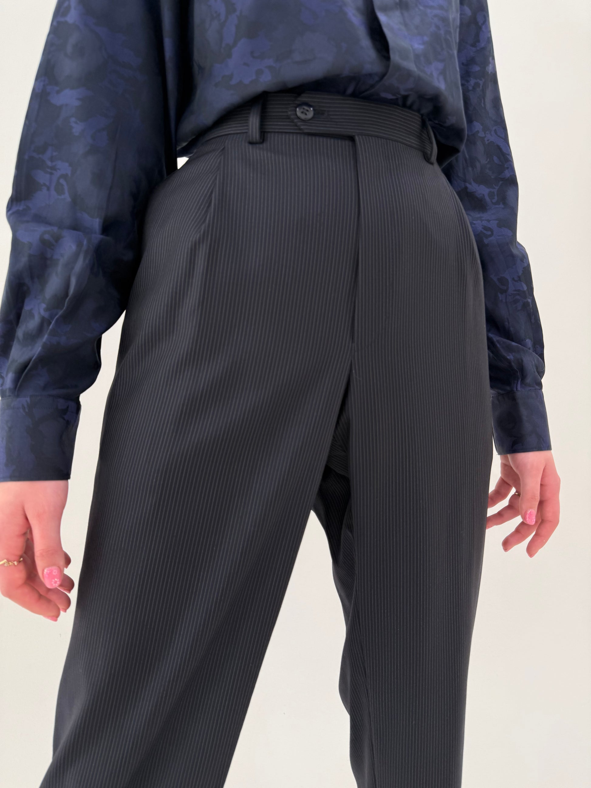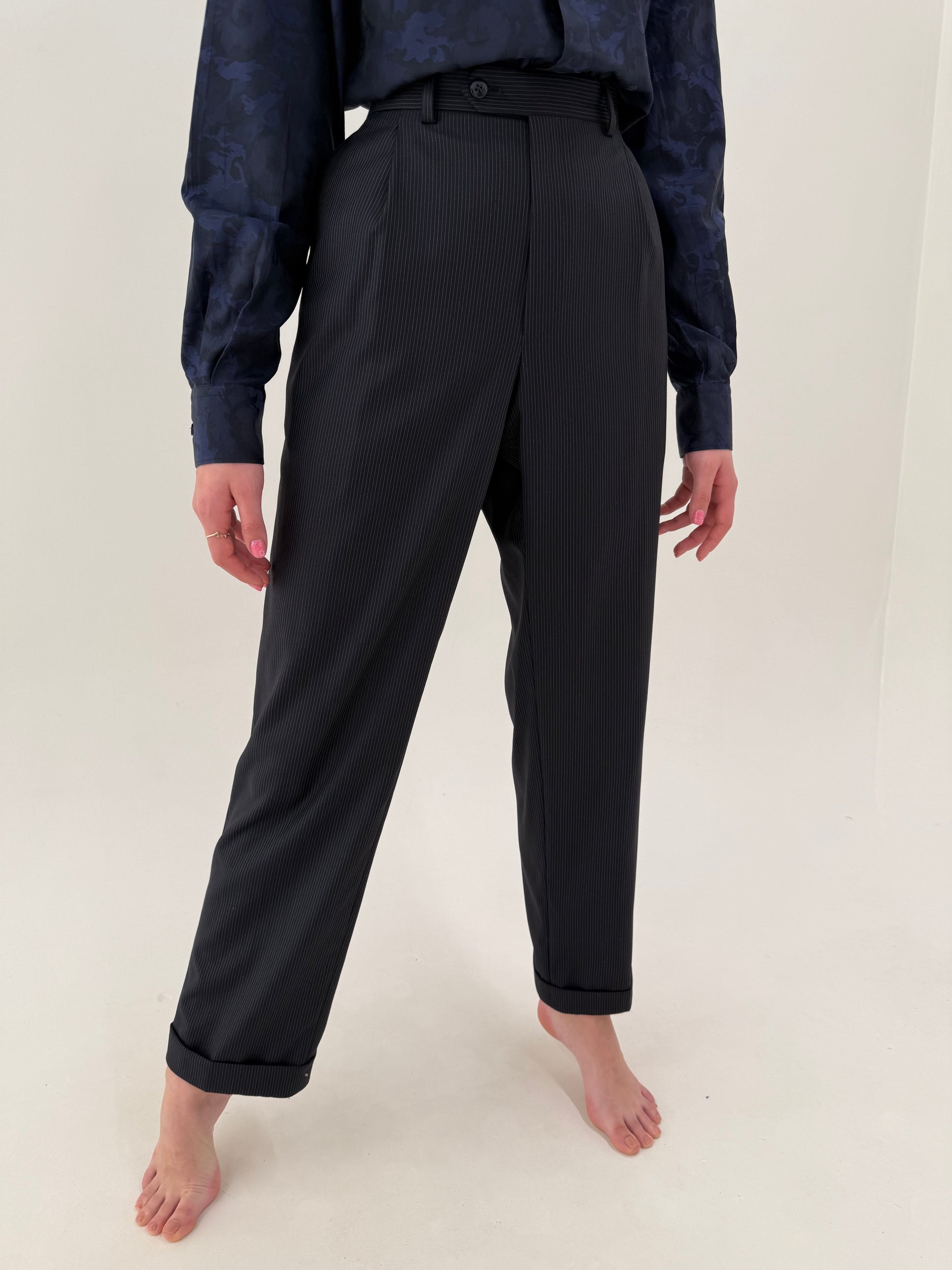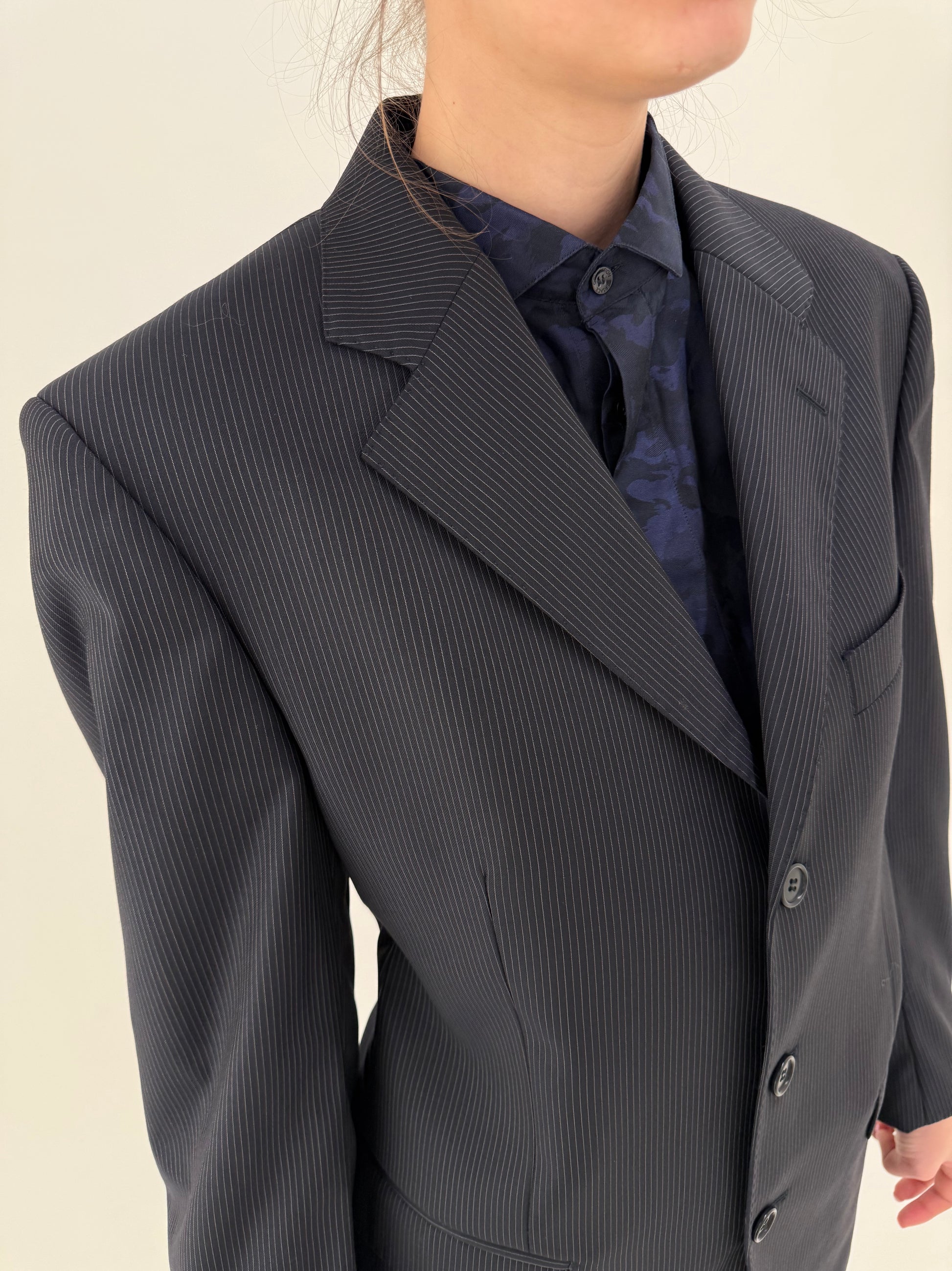 Costum negru din lana extrem de subțire Loro Piana tasmaniana cu dungi fine verticale