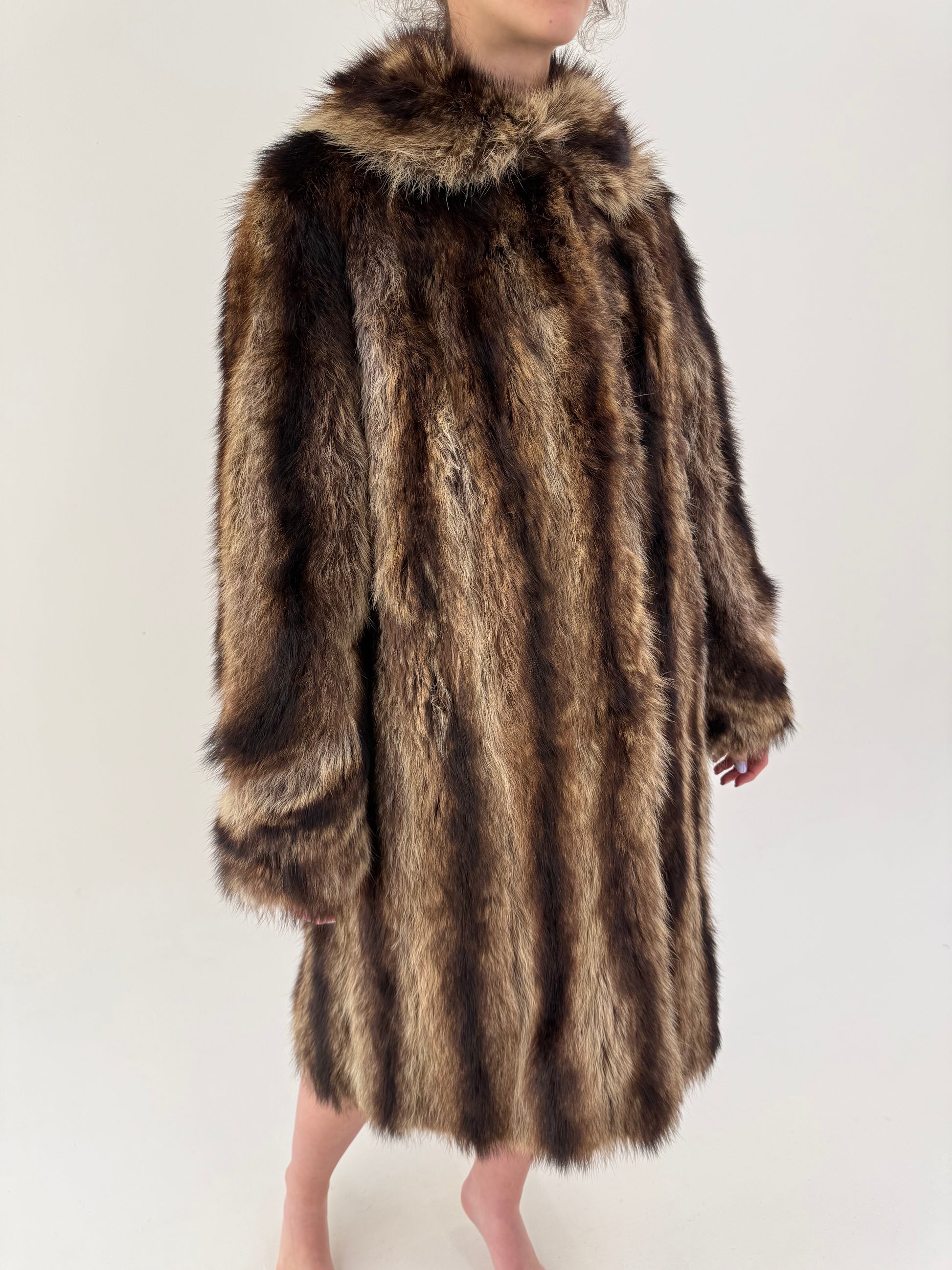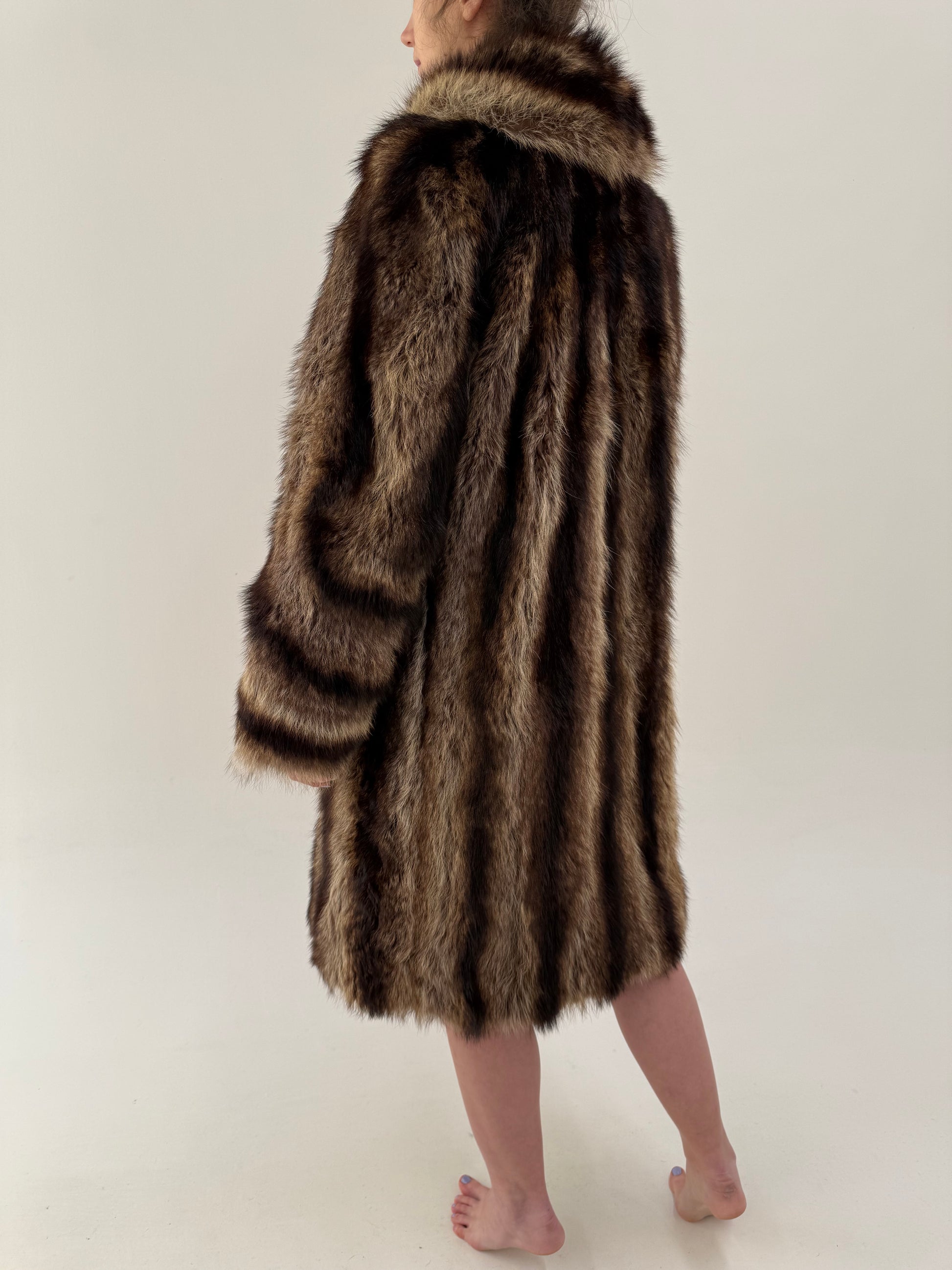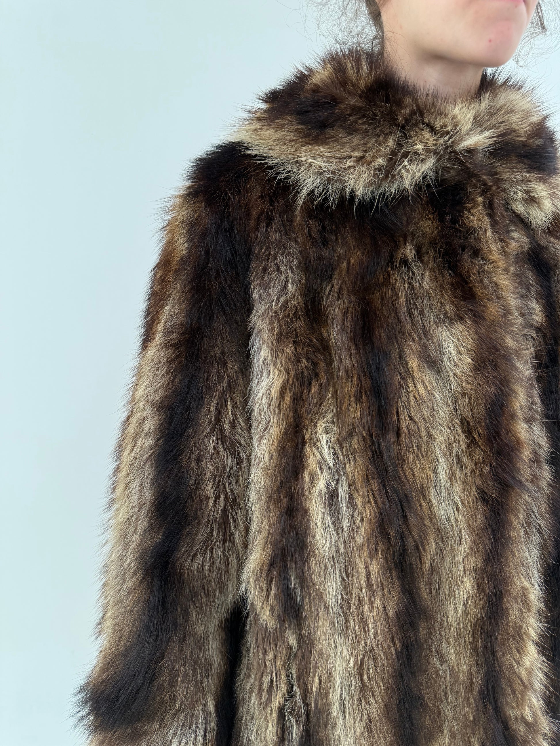 Blană naturală de raton cu volum bogat și fir lung