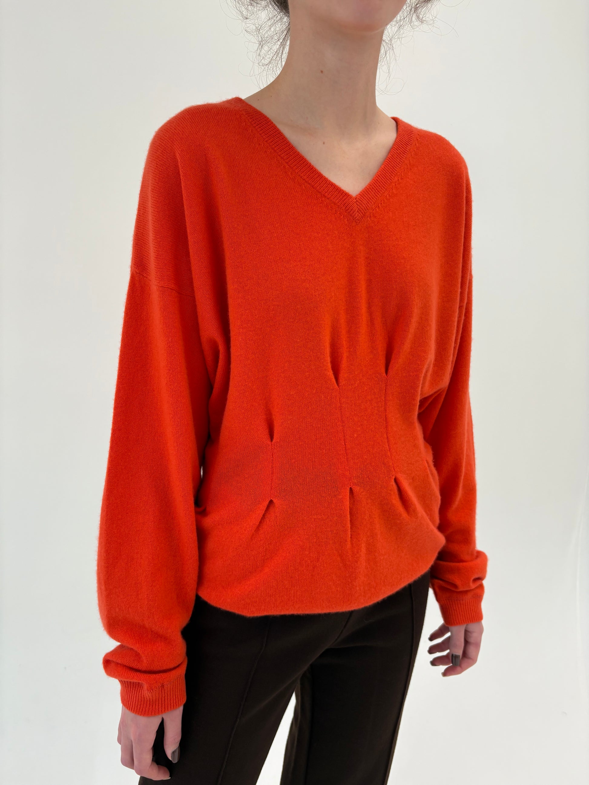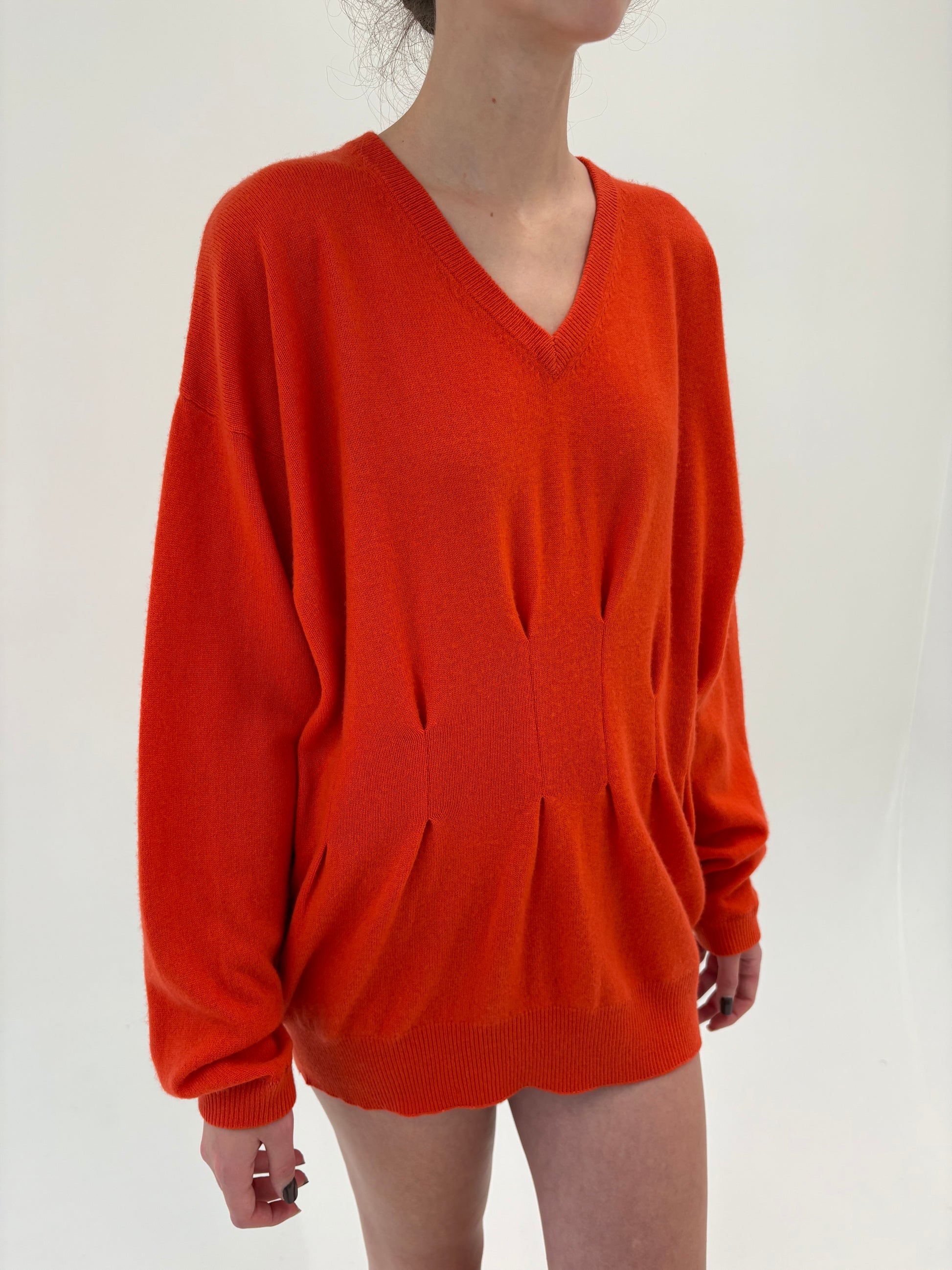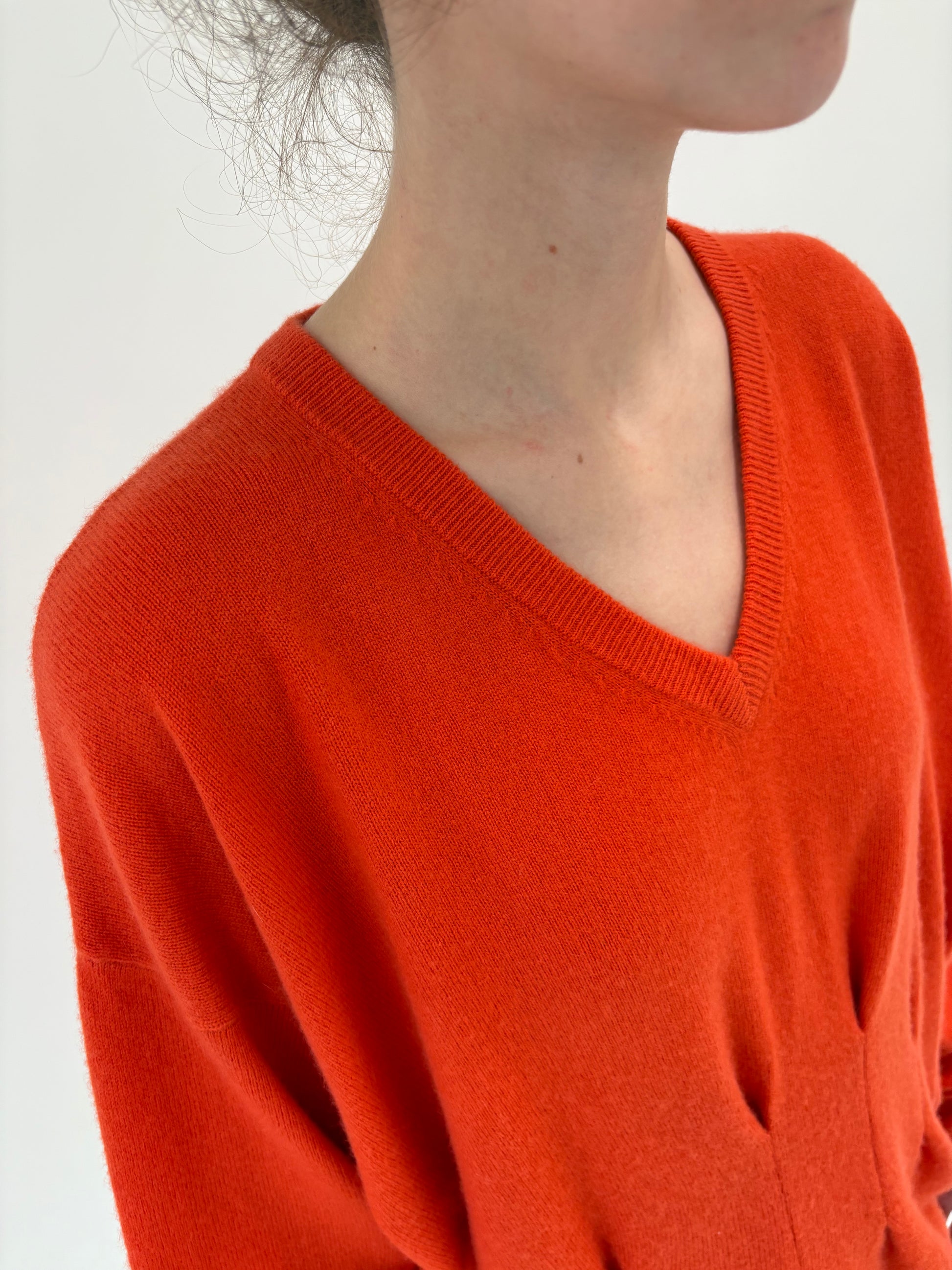 Pulover high end din cașmir multiply în croi lejer cu talia marcată