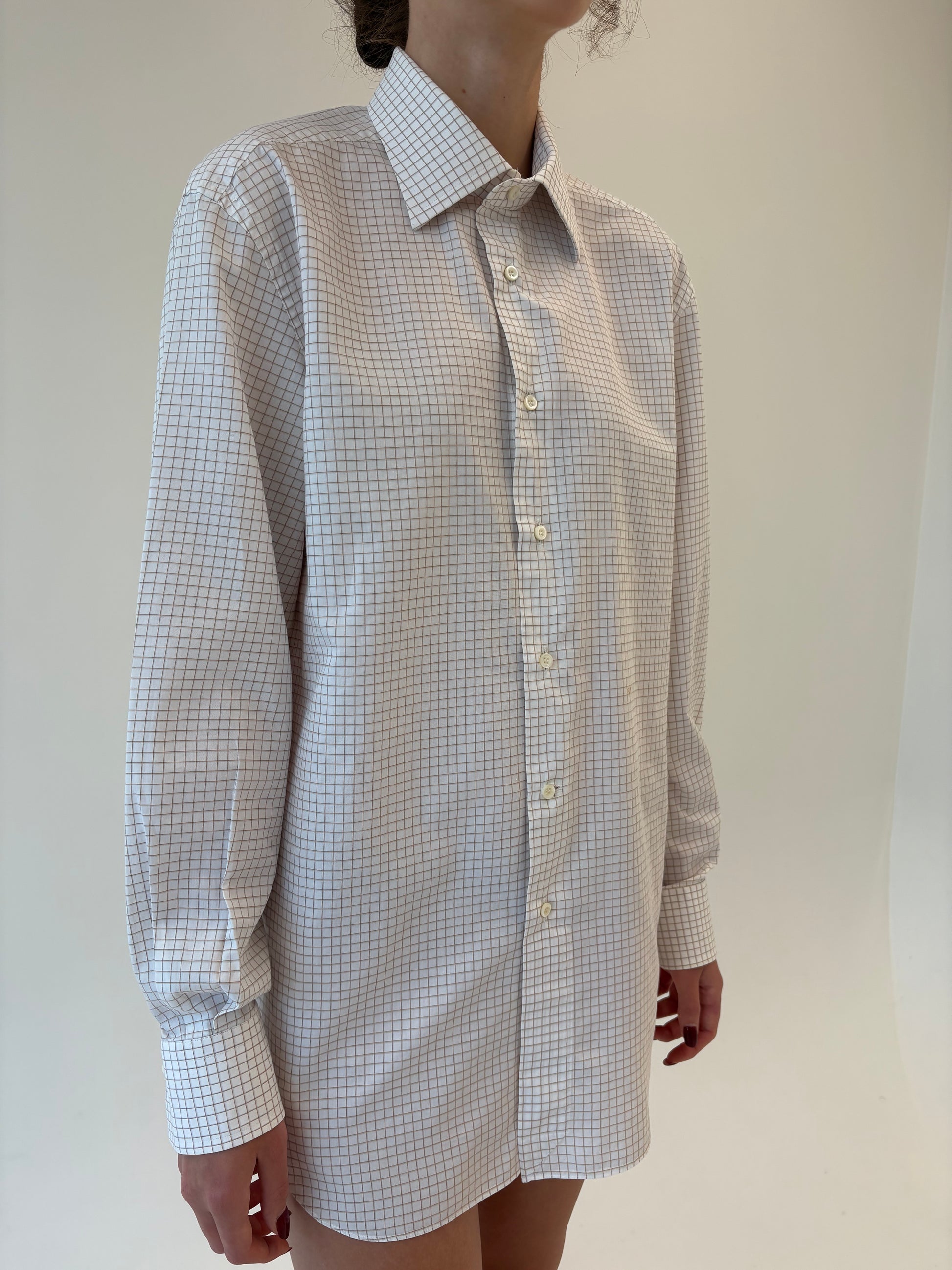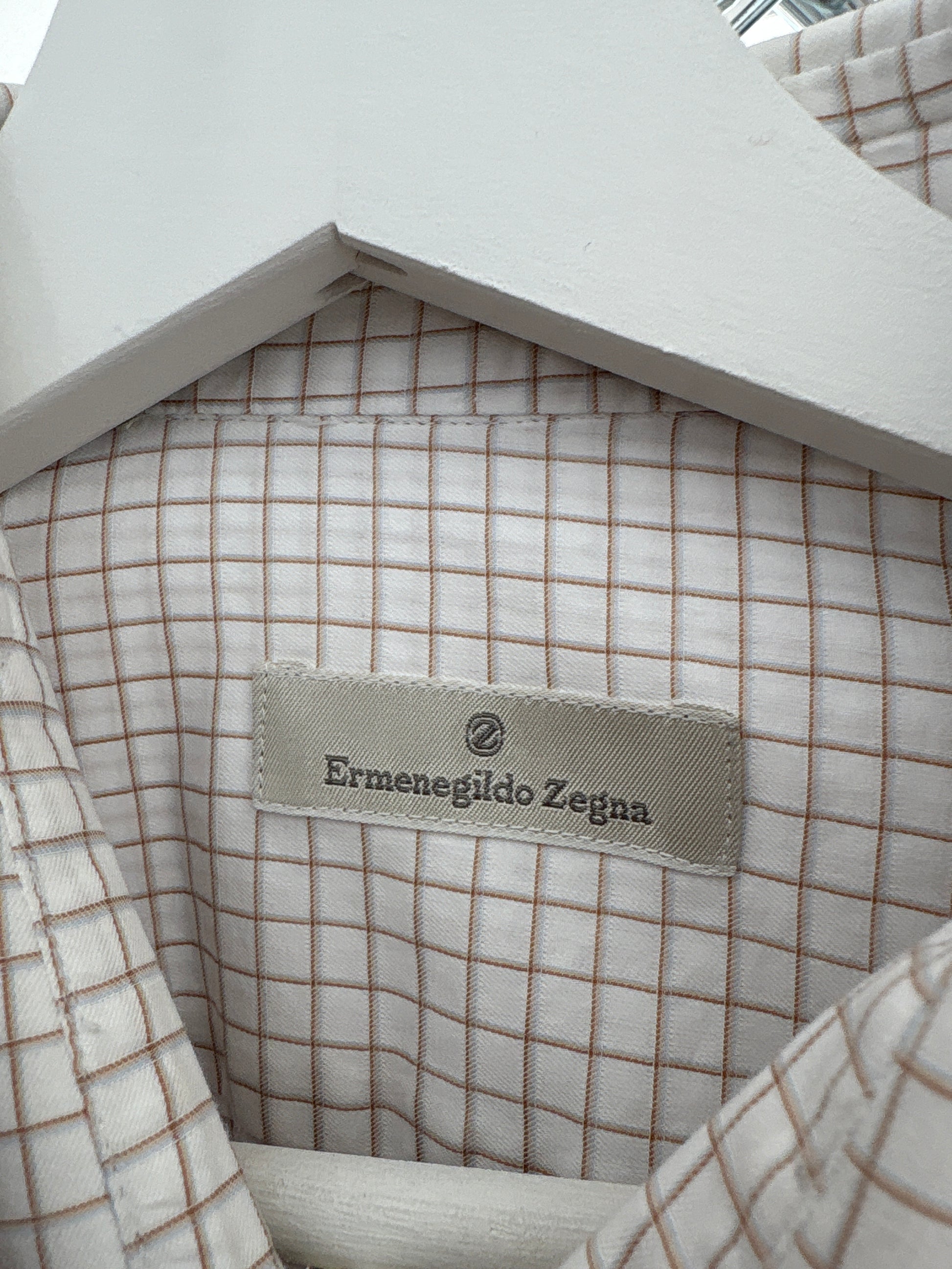 Cămașa ultra luxury Zegna din poplin în carouri fine chocolate brown