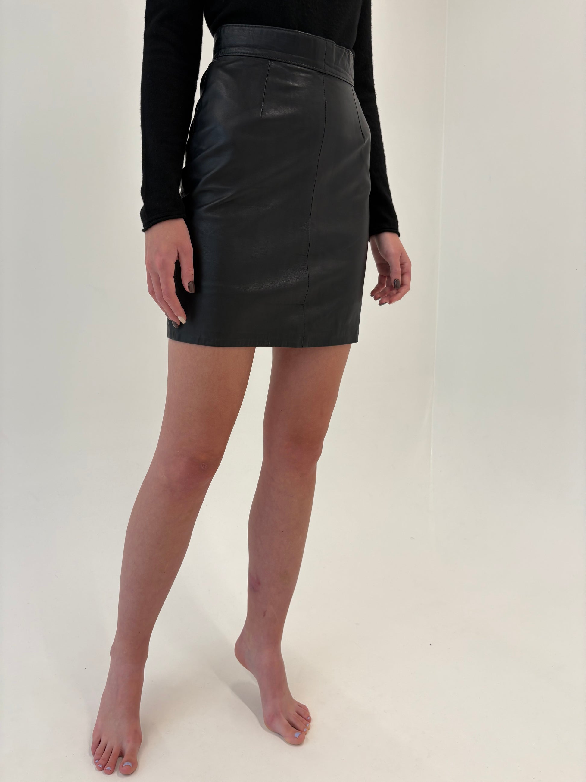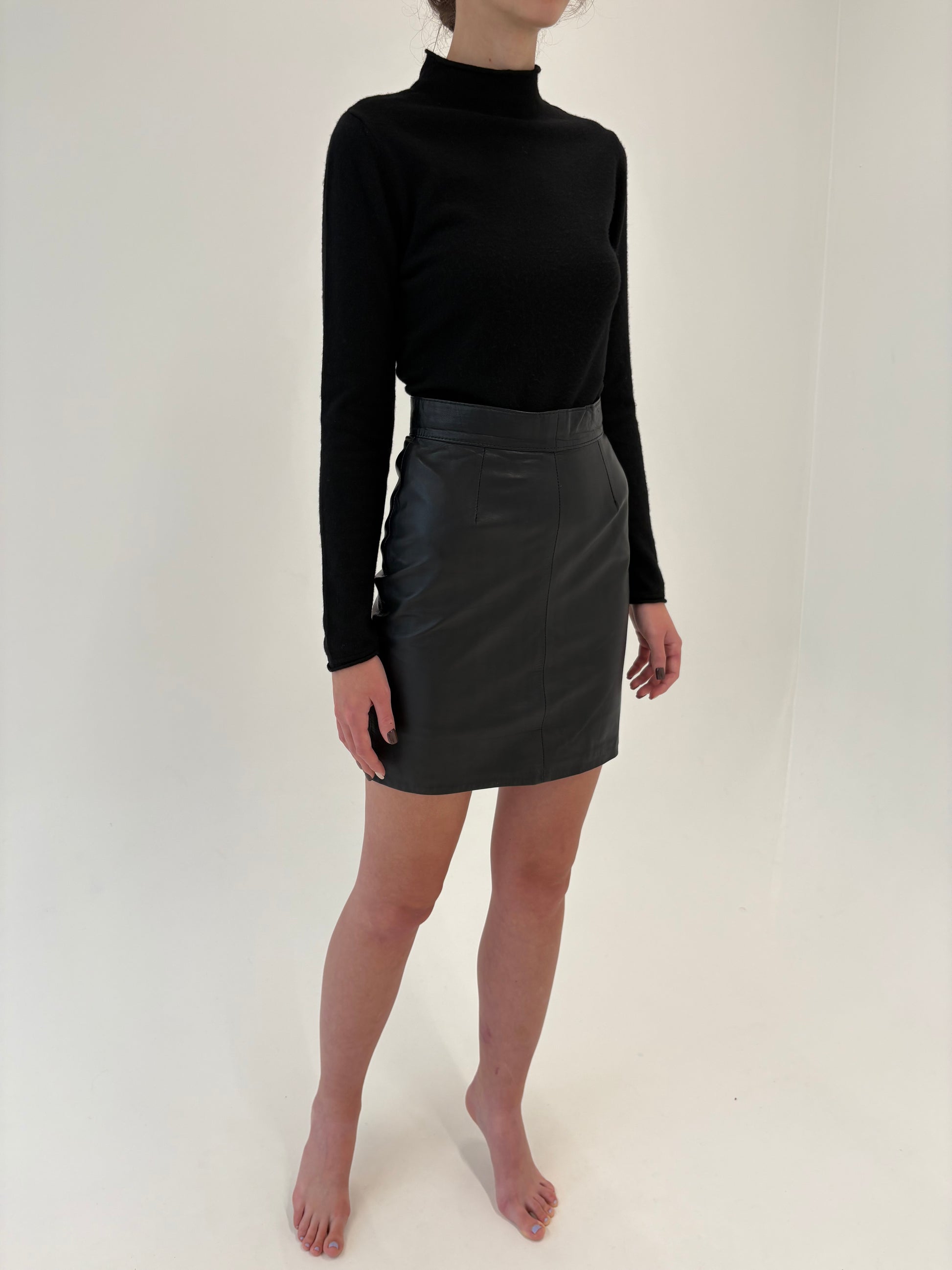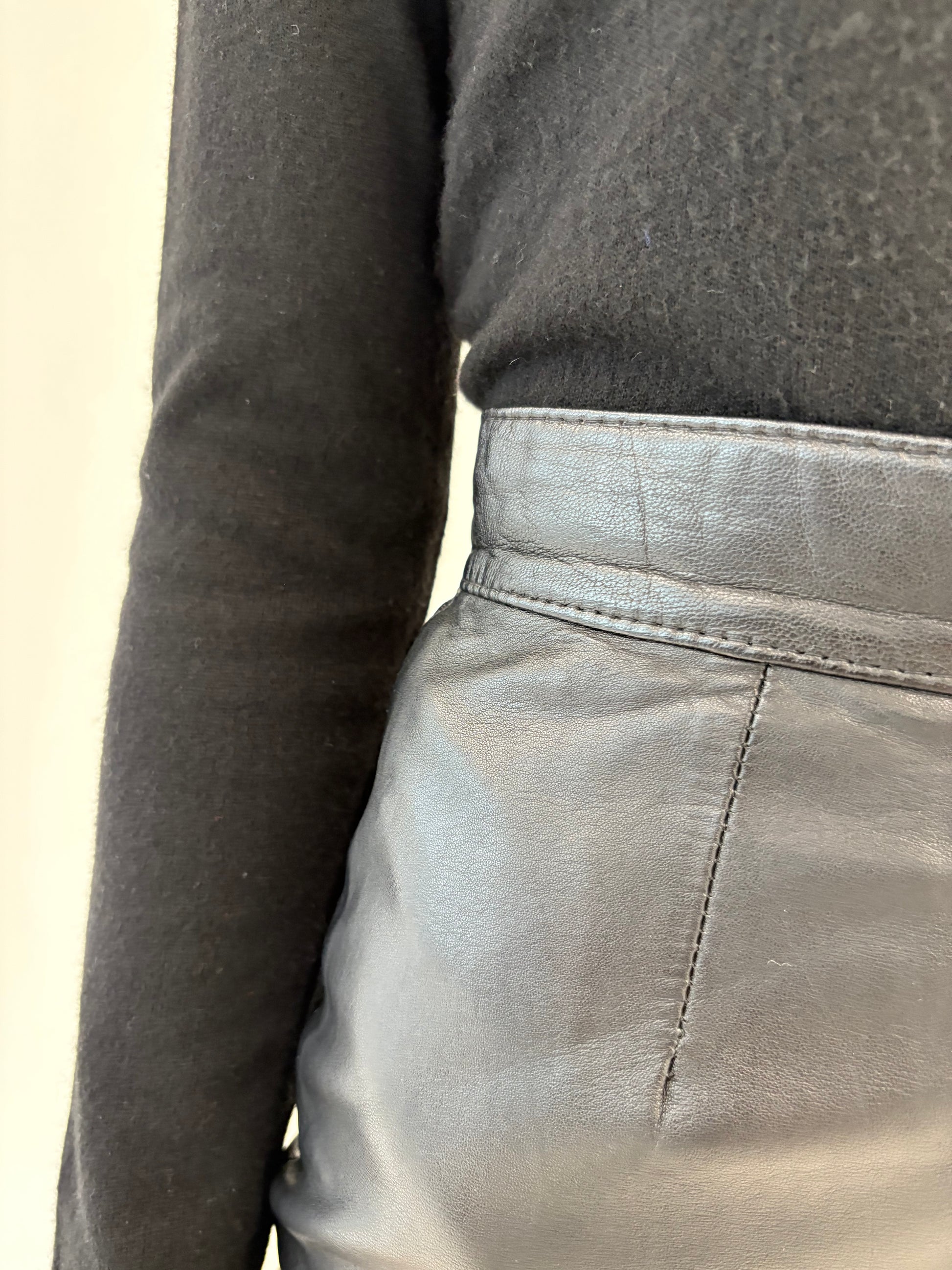 Fustă din piele naturală cu talie ultra înaltă marcată