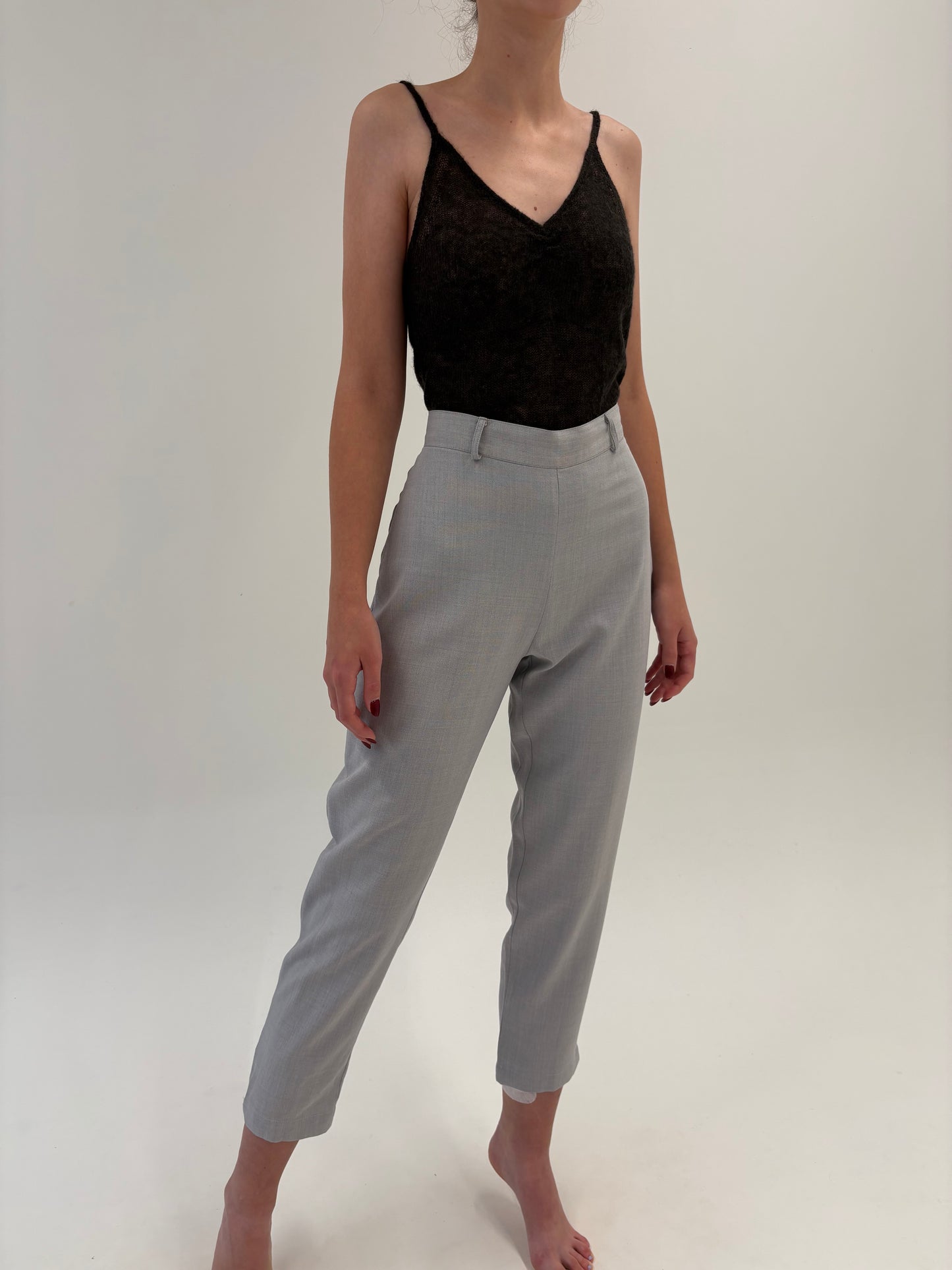 Pantaloni țigaretă cu talie ultra înaltă marcată din lână extrafina