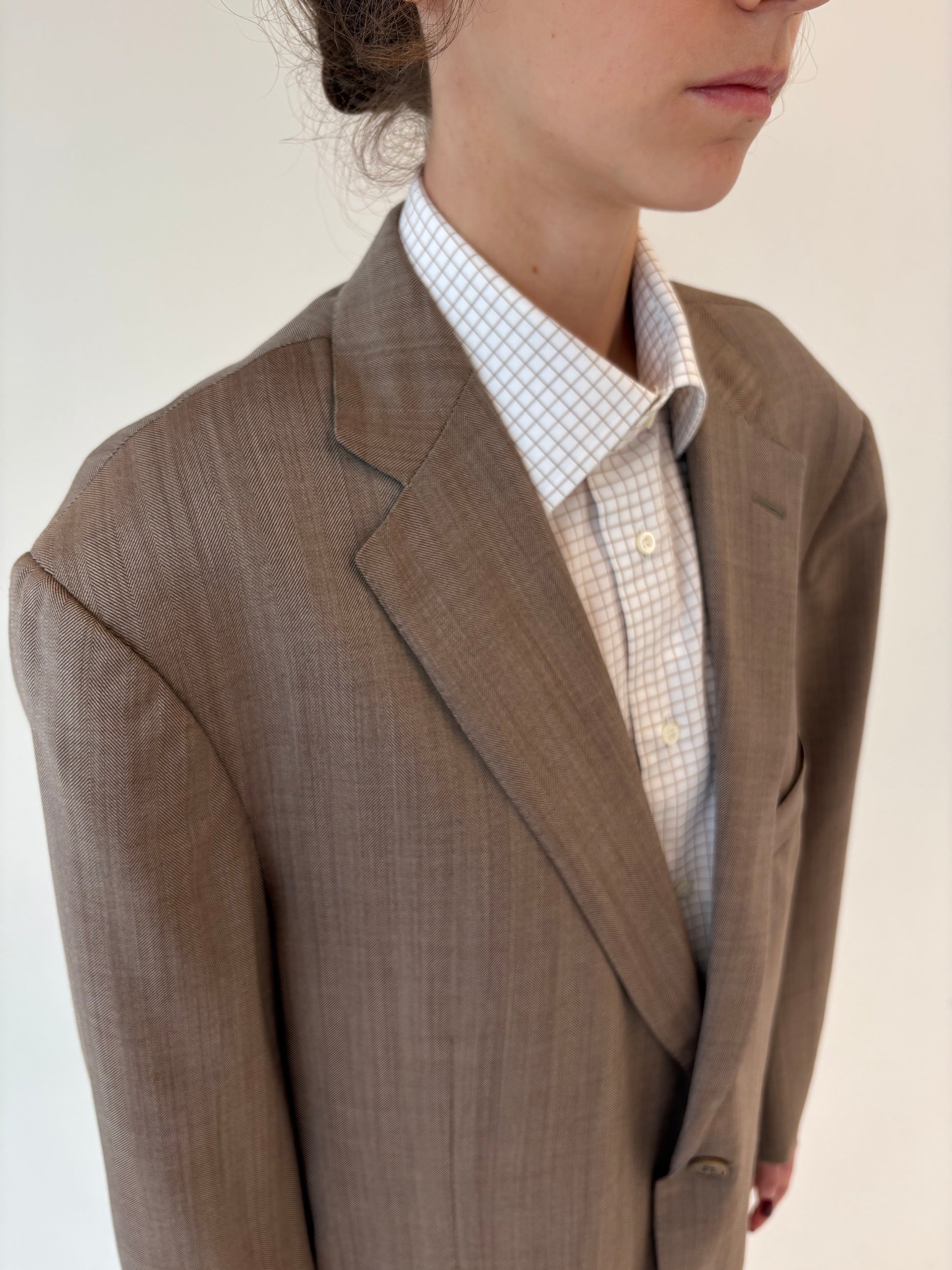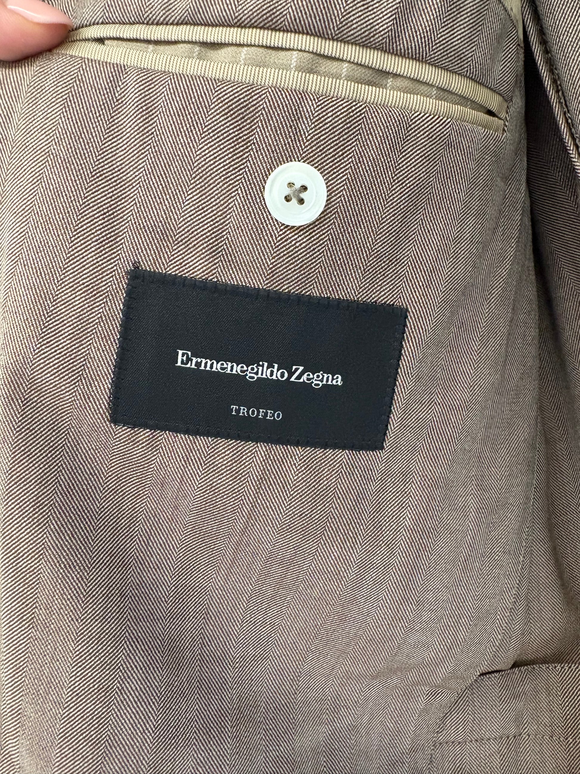 Sacou ultra luxury Zegna din stofă de lana Chevron camel și chocolate brown