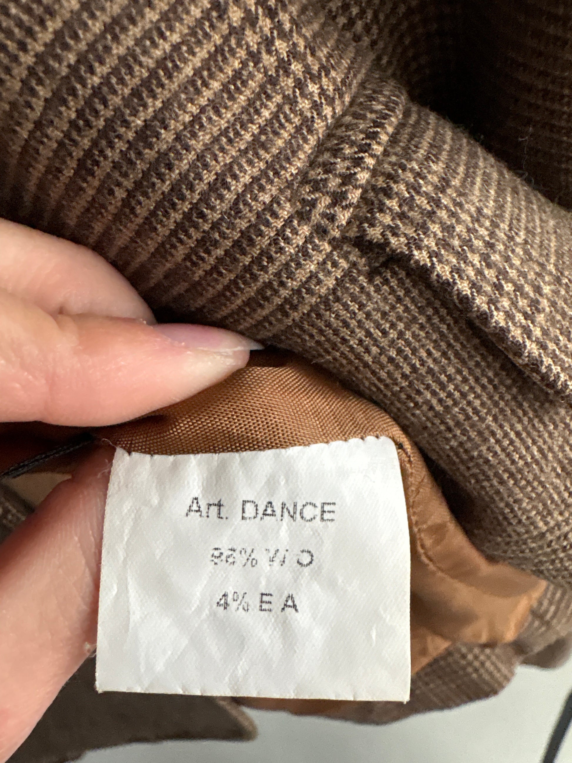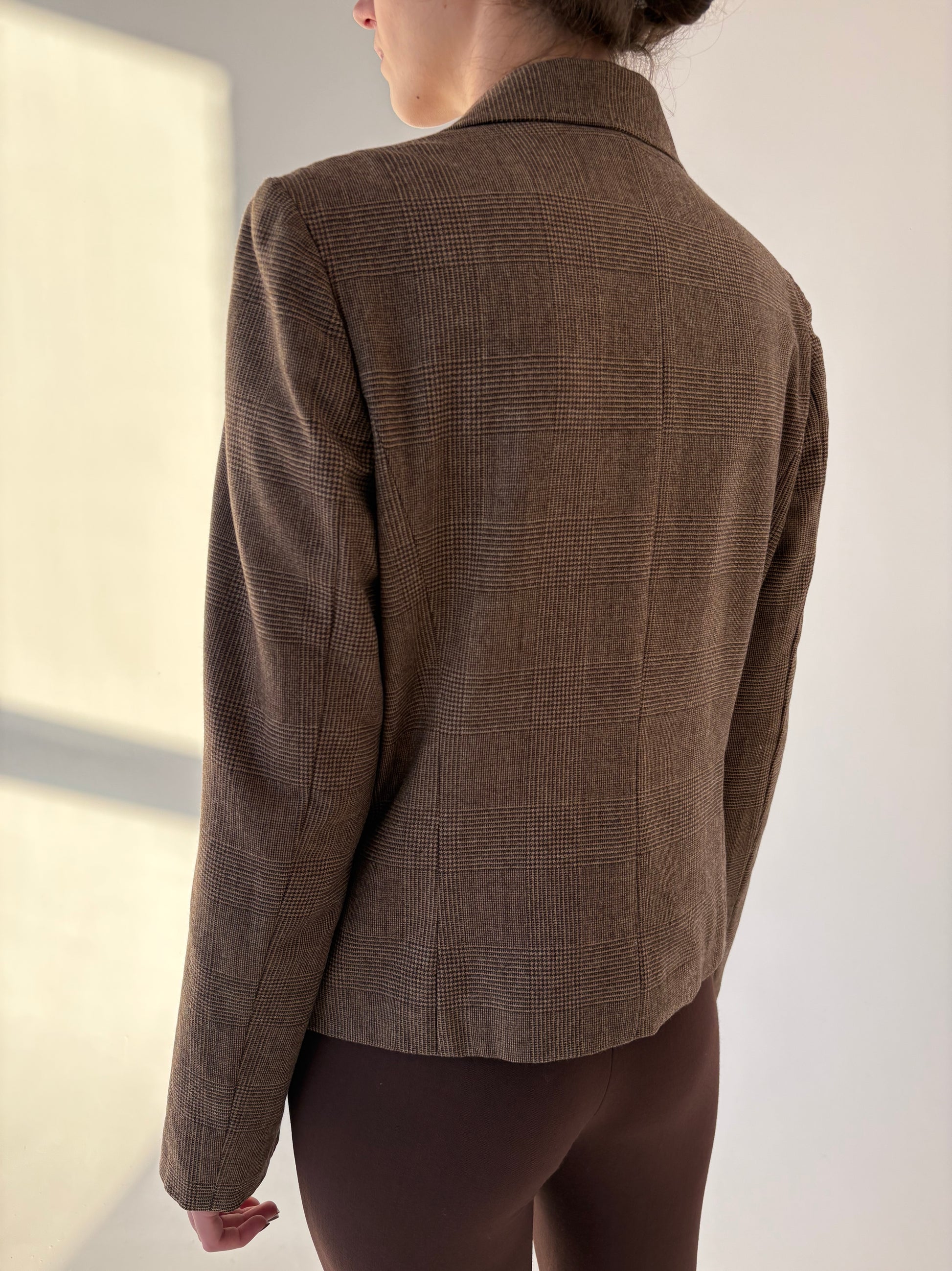Sacou cambrat chocolate brown în carouri fine camel din lana extrafina