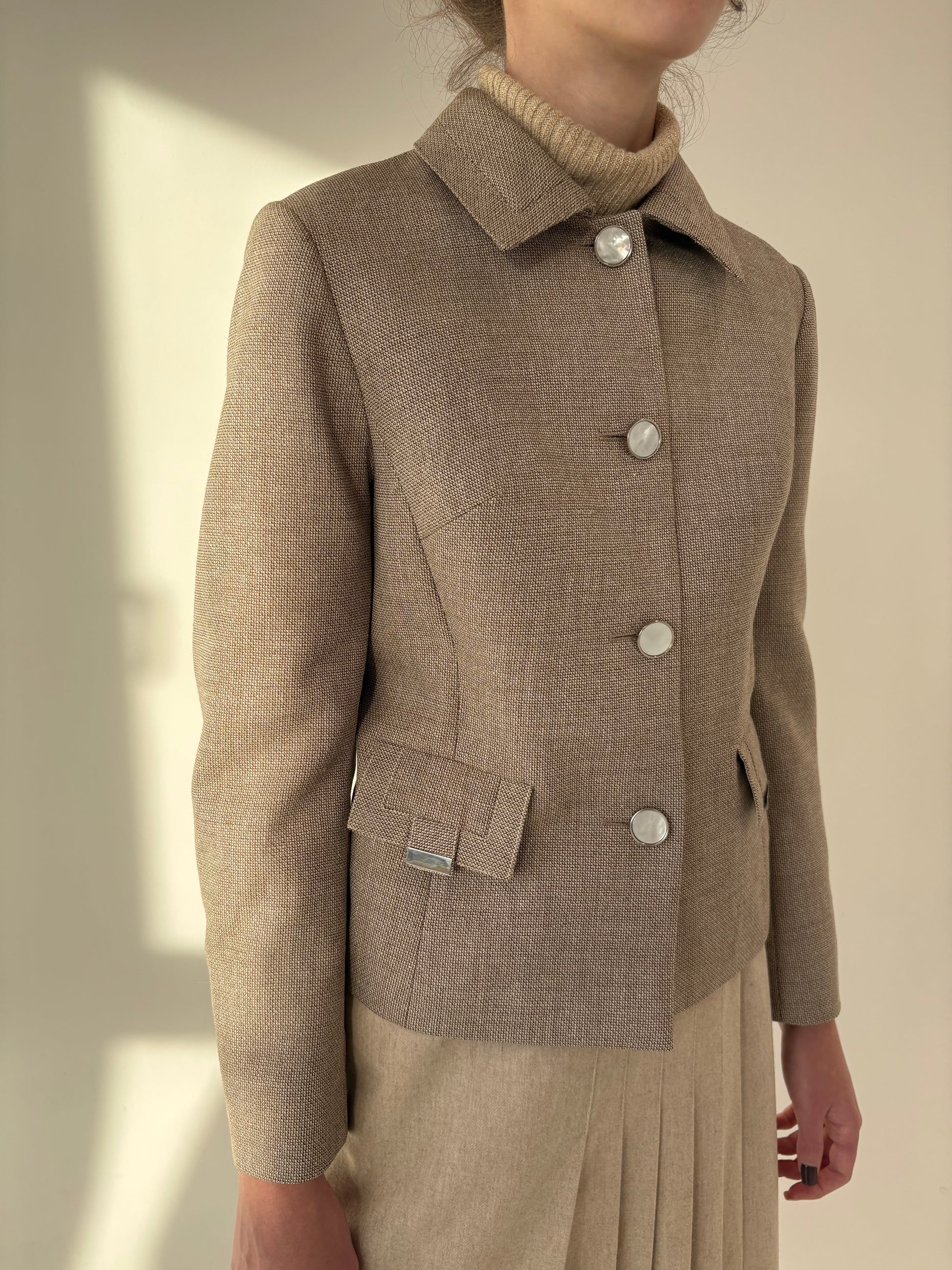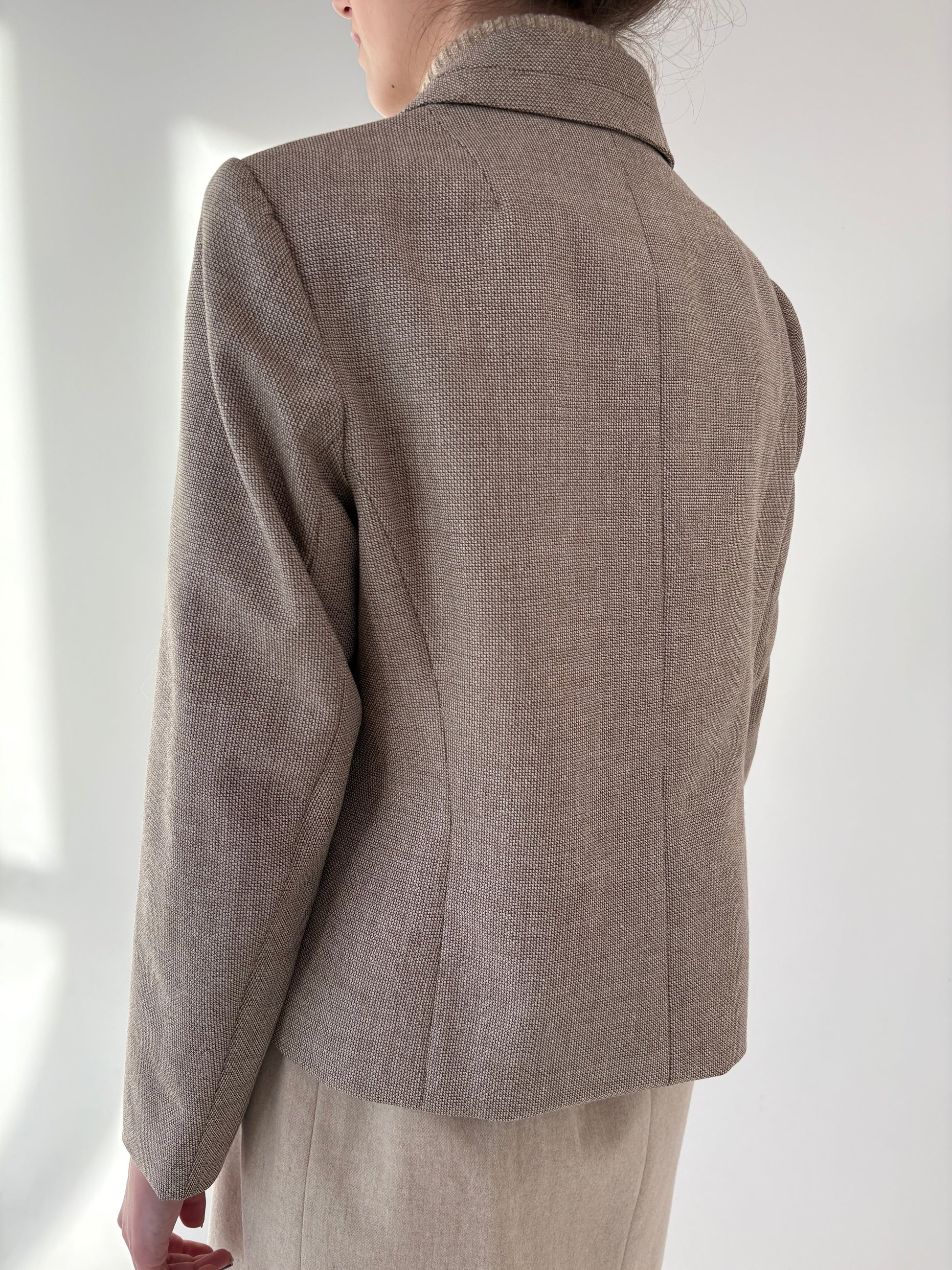 Sacou old vintage anii 70 din stofă structurată de lana și mătase naturală