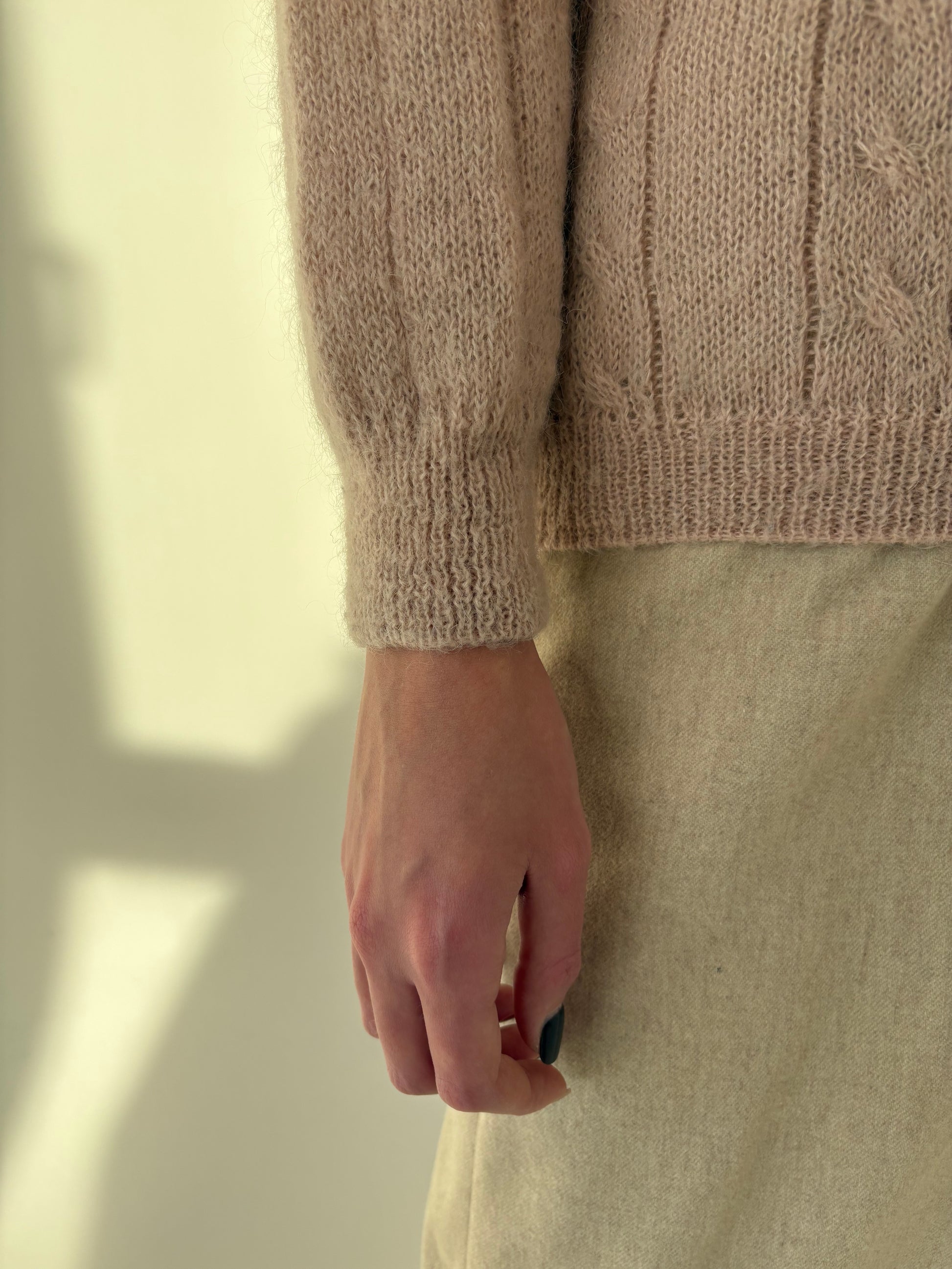 Cardigan dusty pink de brand luxury de tricotaje brodat manual din baby mohair