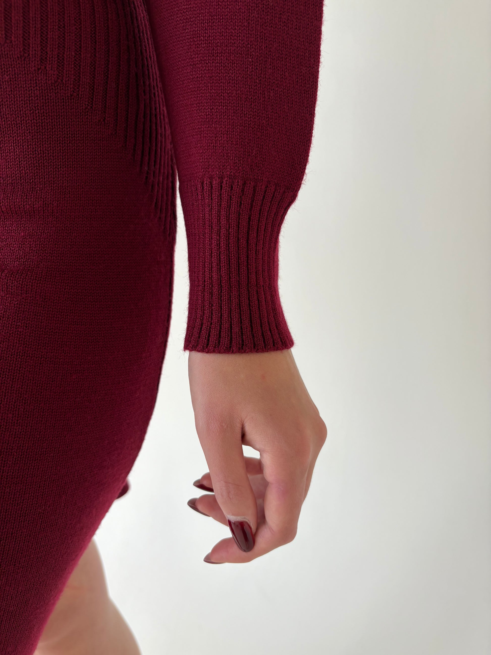 Rochie burgundy din lana merino extrafina cu broderie manuală