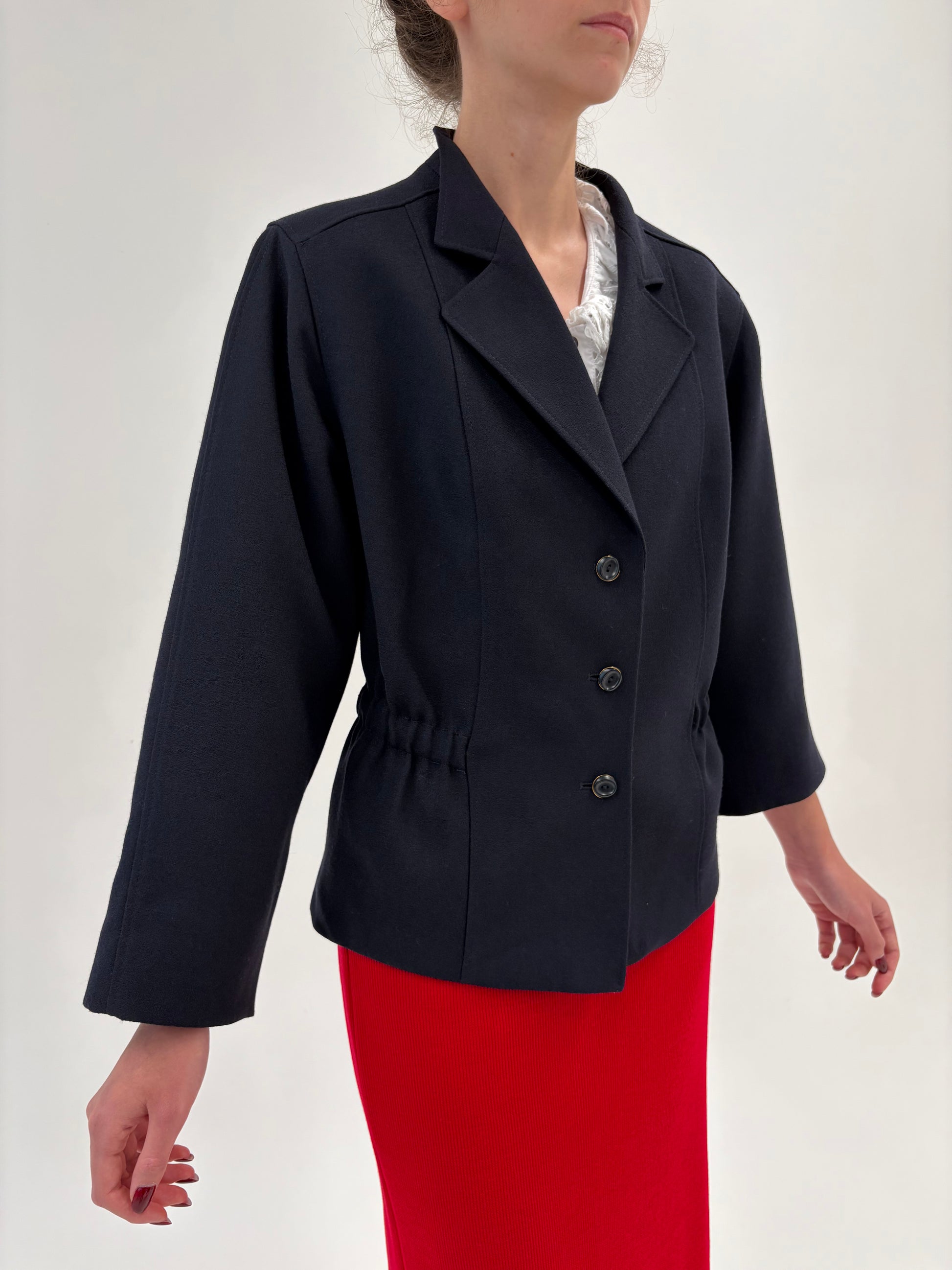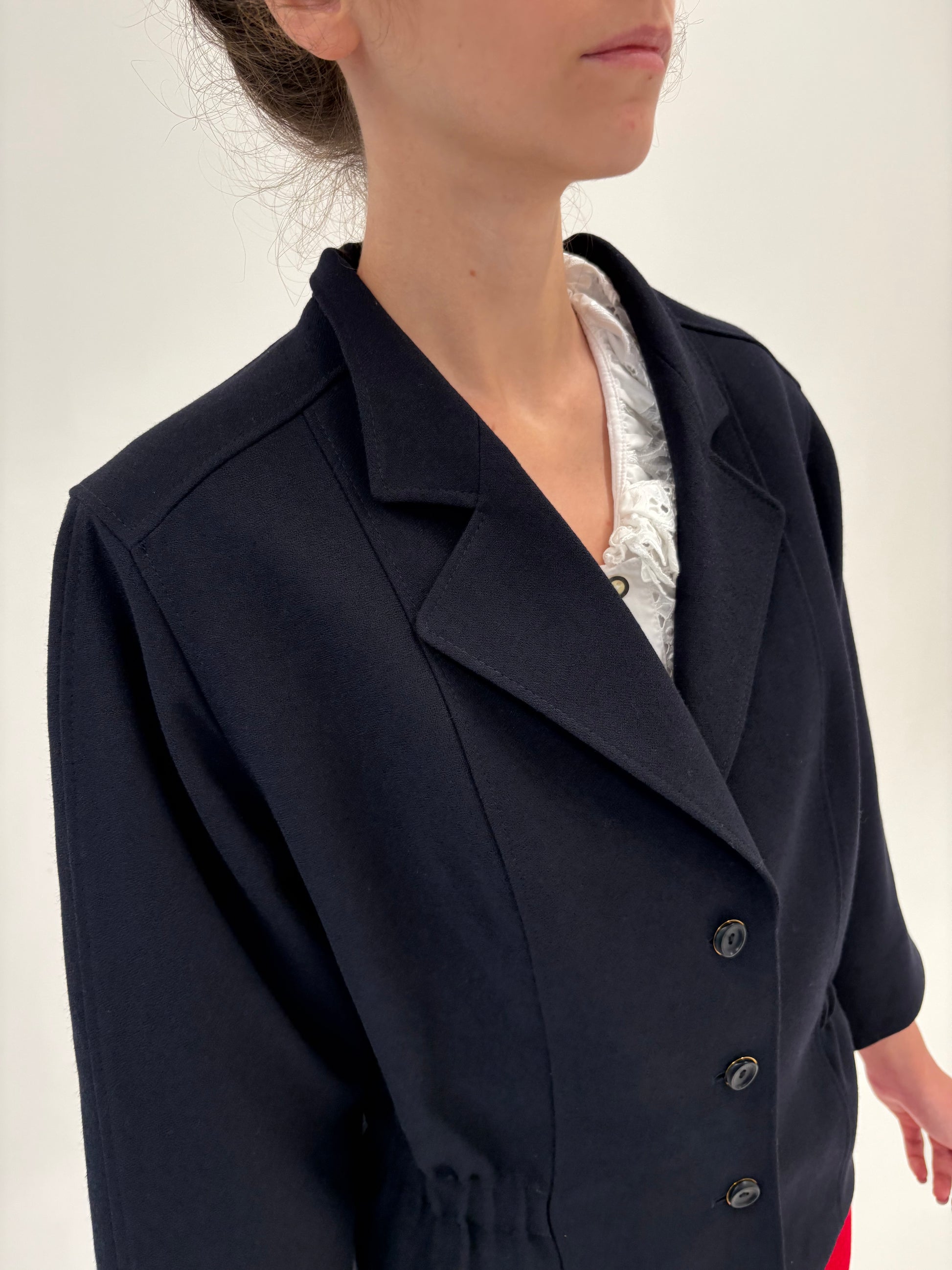 Sacou vintage Navy din lana extrafina cu talie marcată elastică