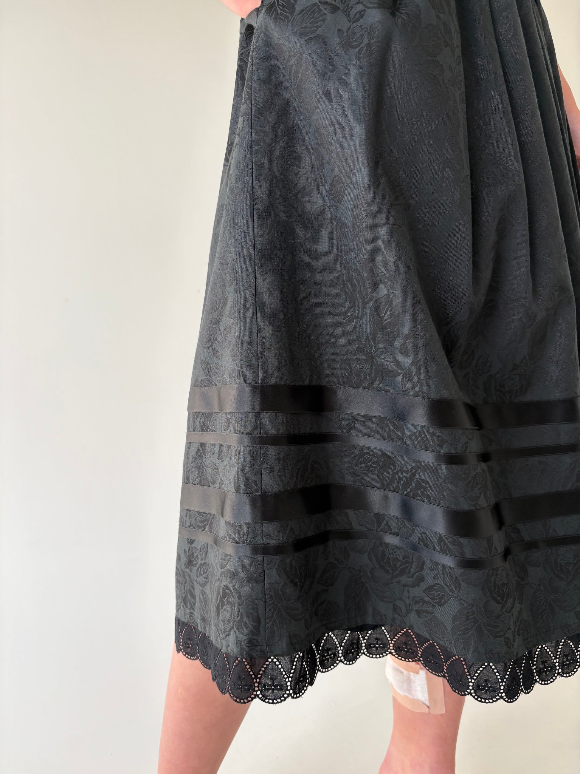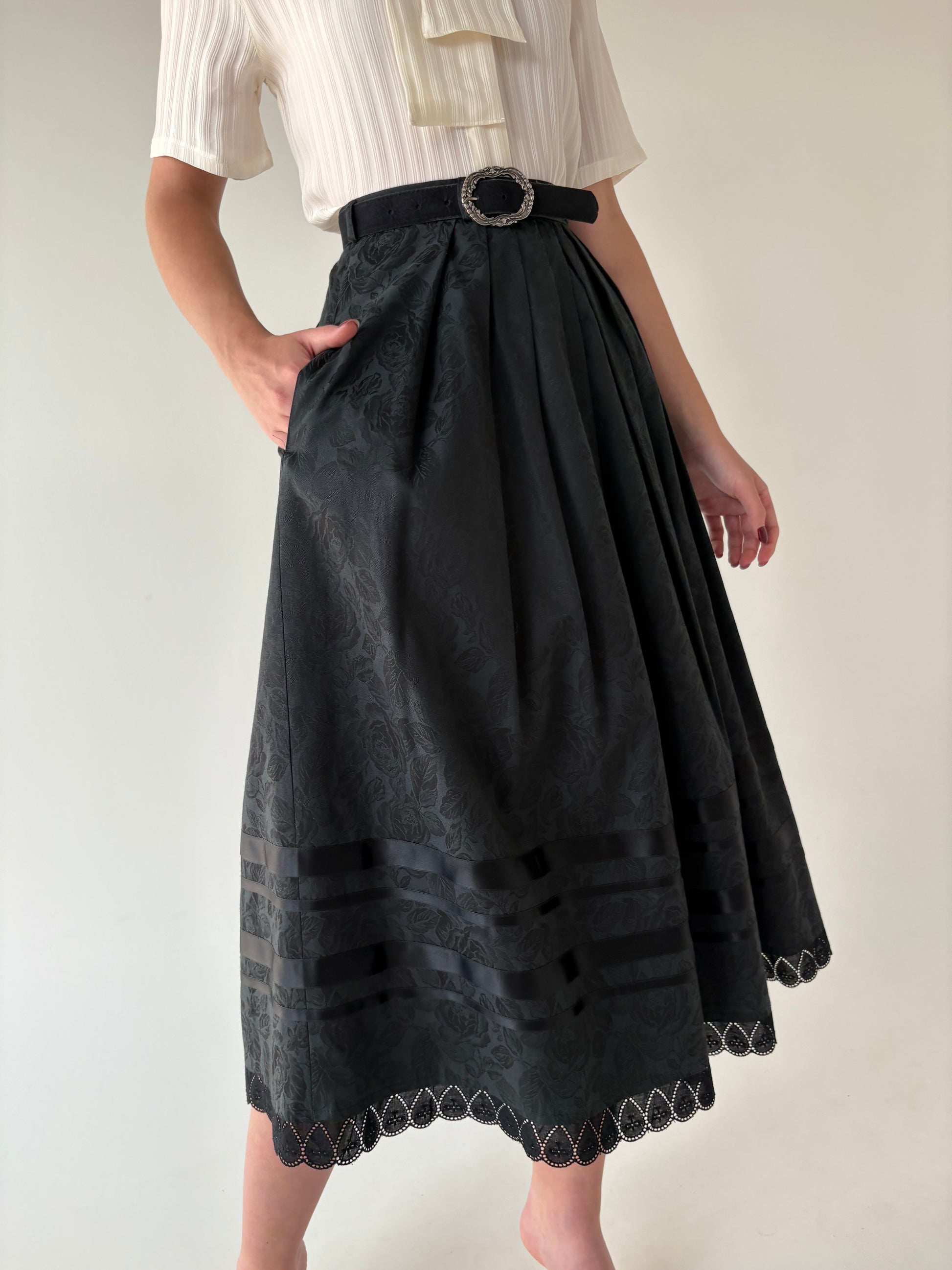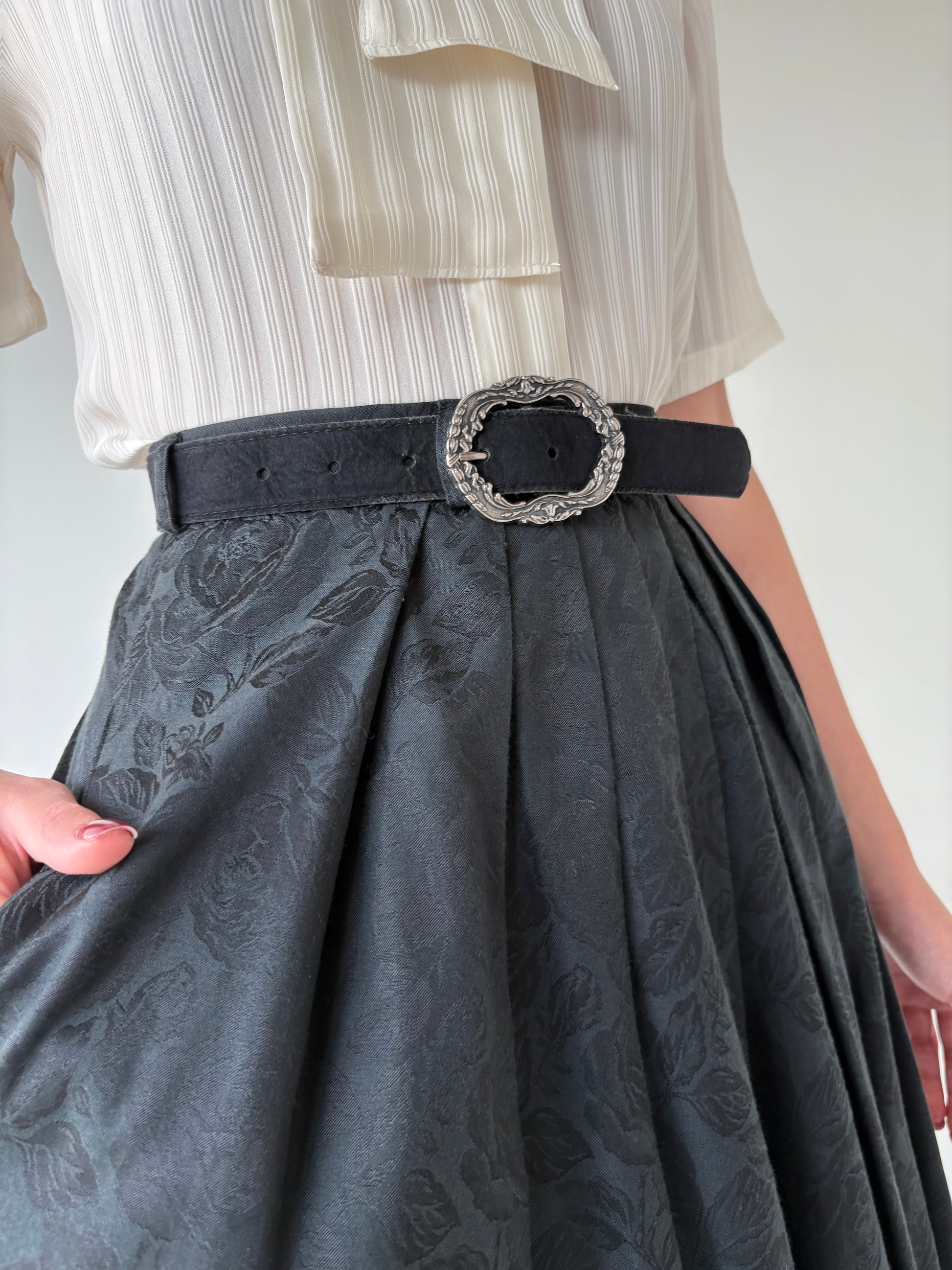 Fustă vintage neagră din brocart moale de bumbac cu centura proprie