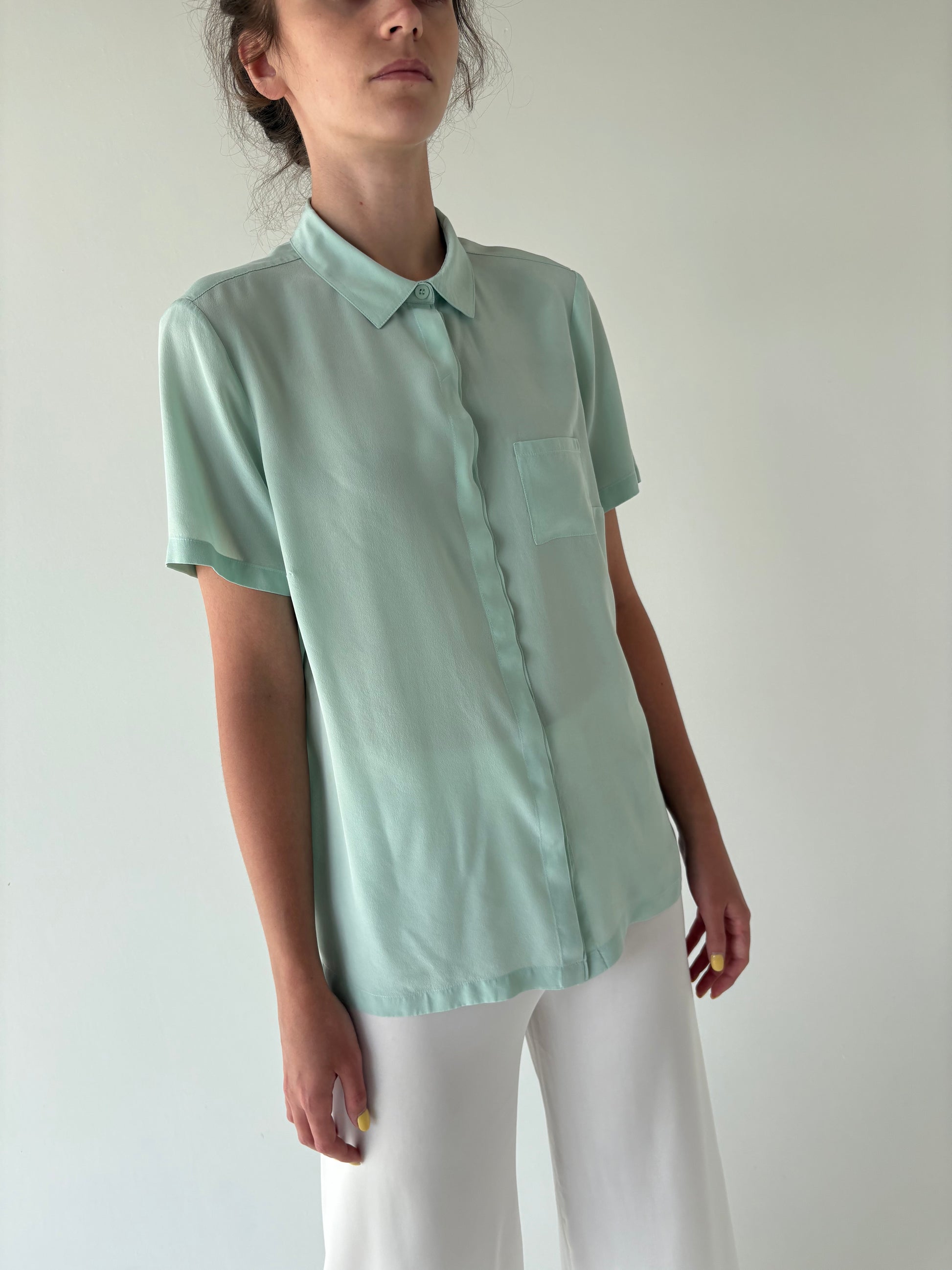 Cămașa de brand Madeleine light mint green din mătase naturală