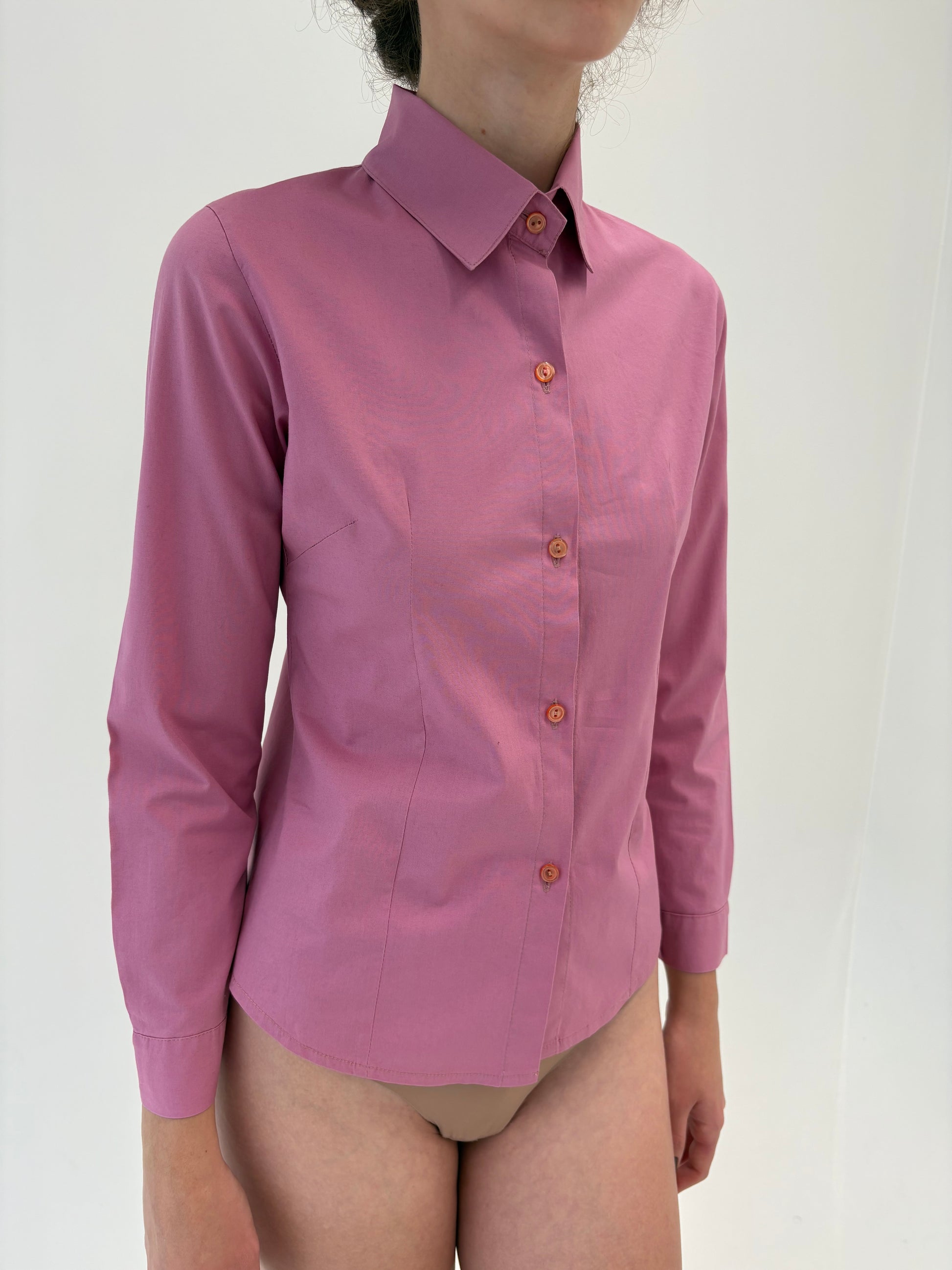 Cămașa dusty pink din poplin plin de bumbac în croi ușor cambrat