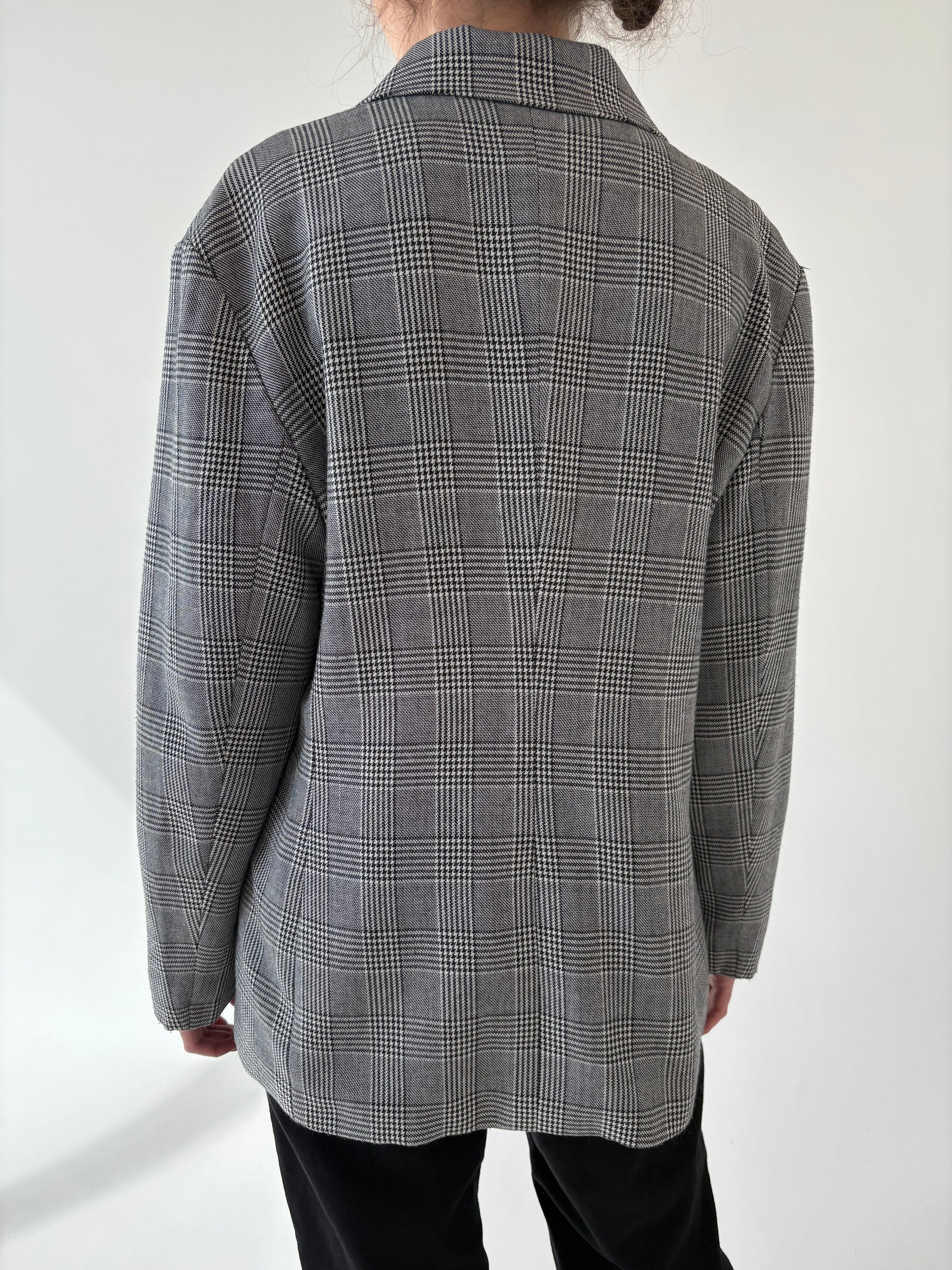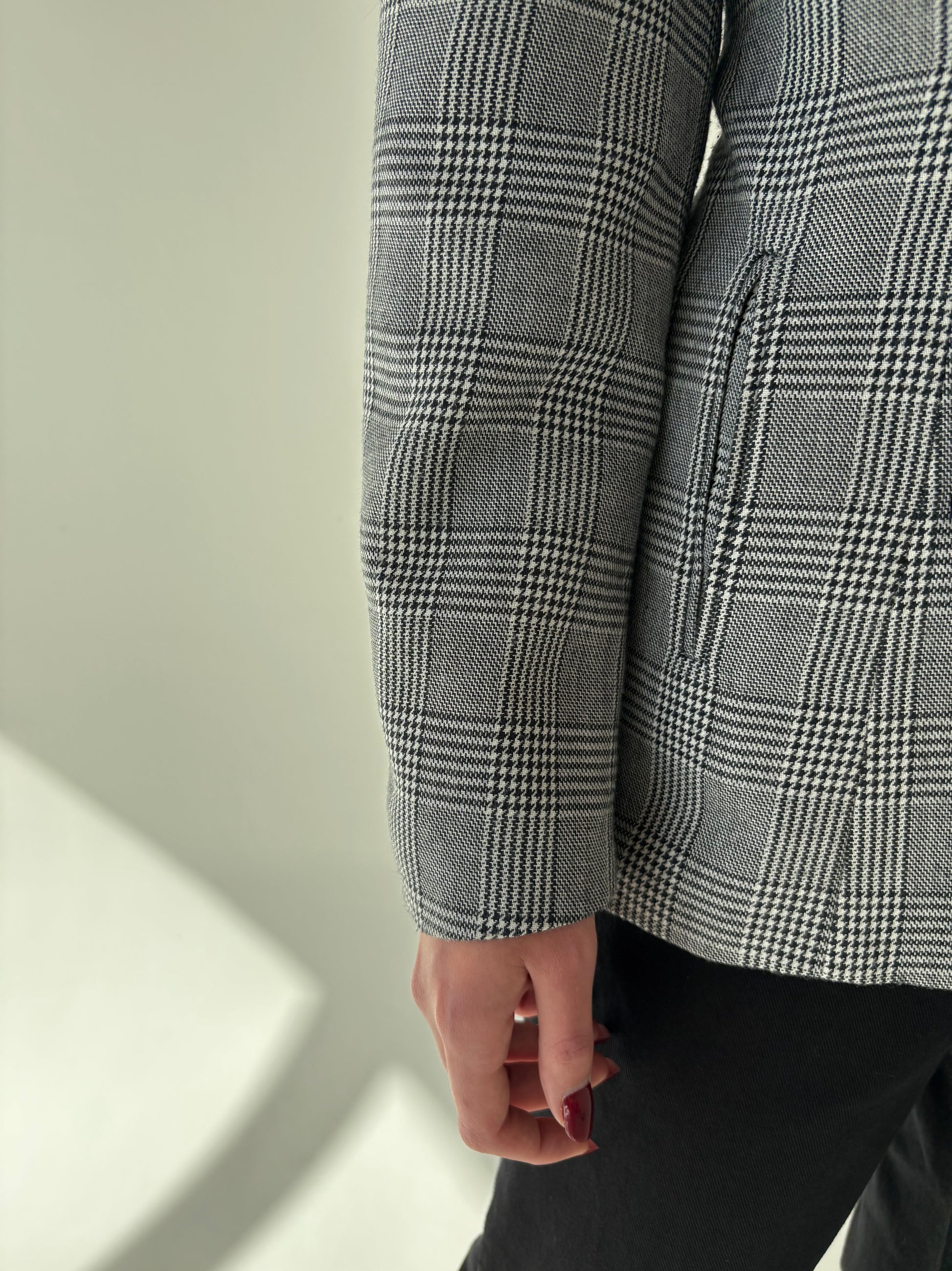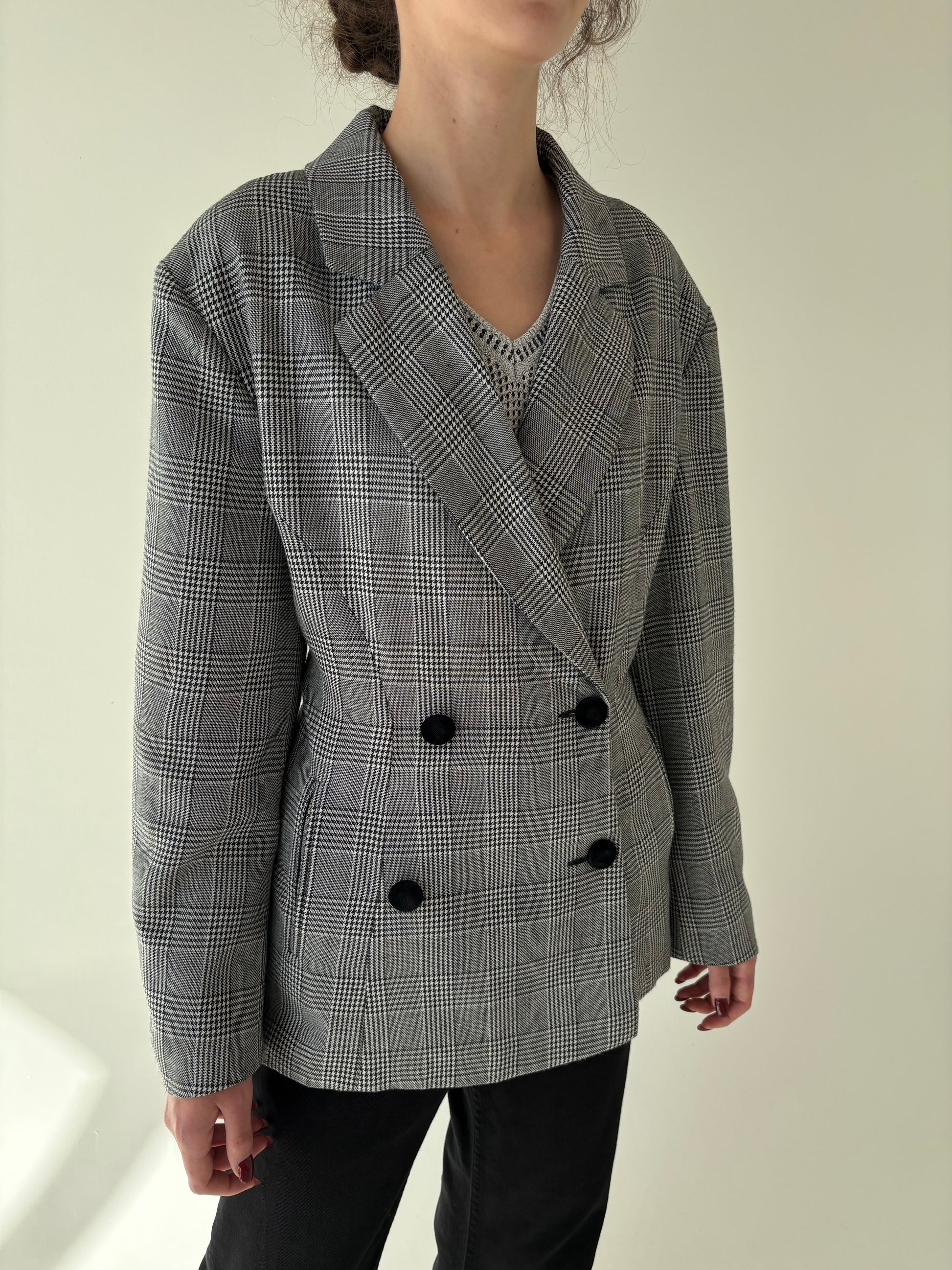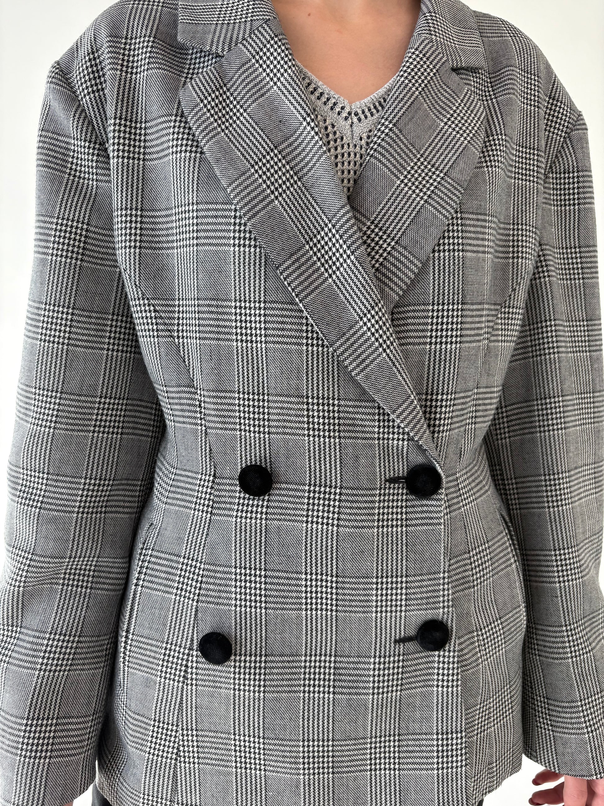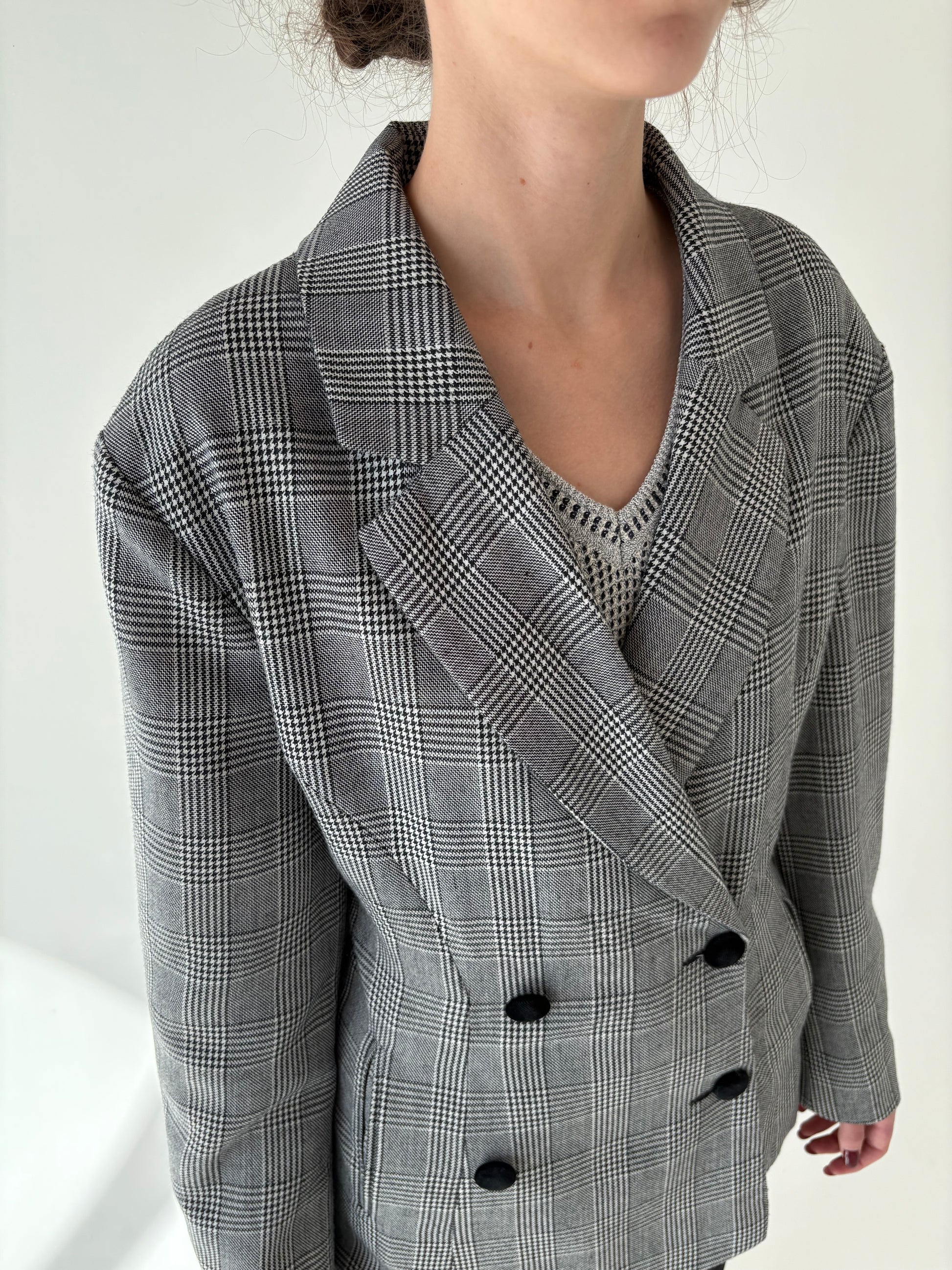 Sacou vintage pied du coq cu închidere dublă din lana extrafina și revere ușor rotunjite