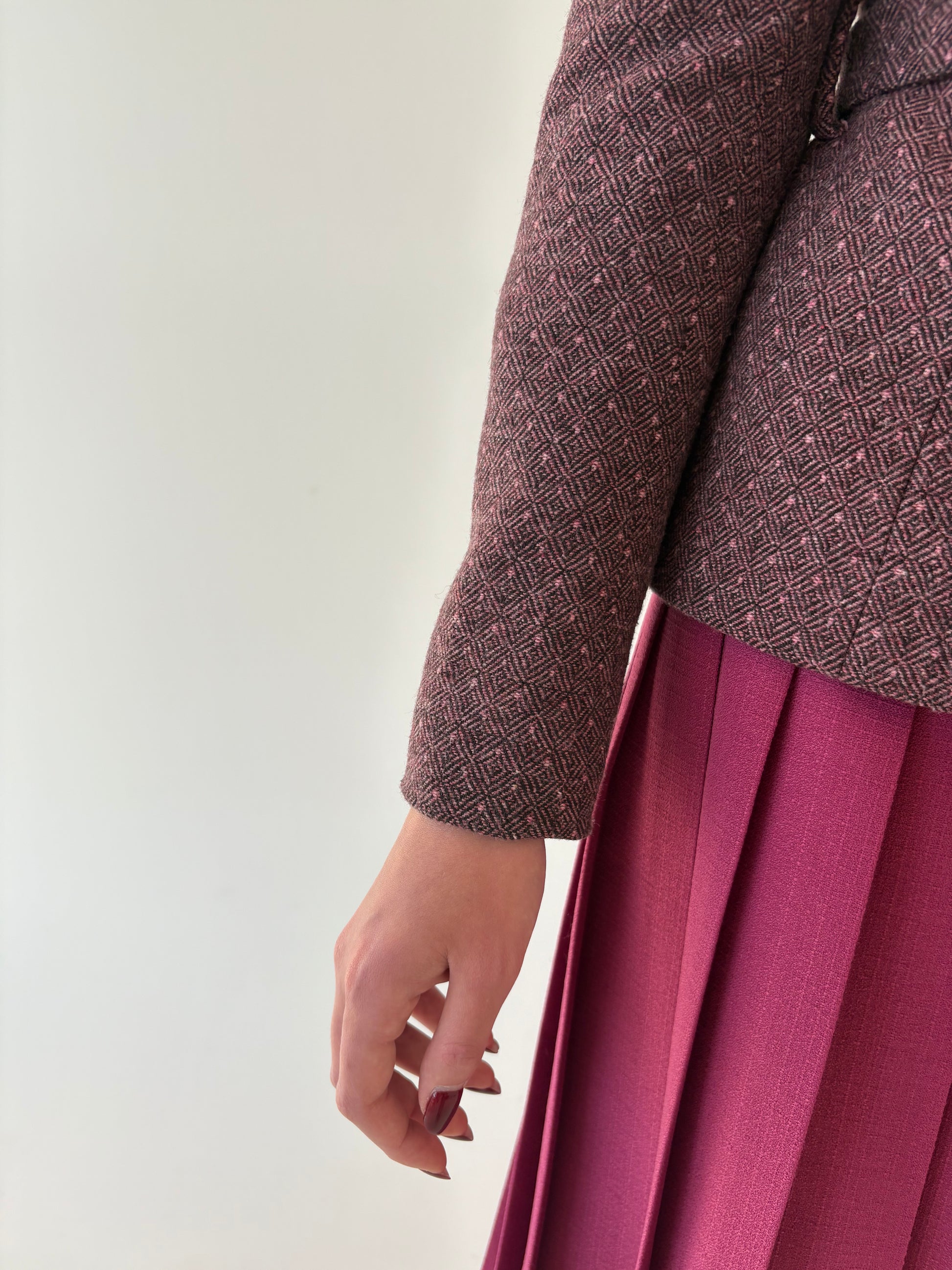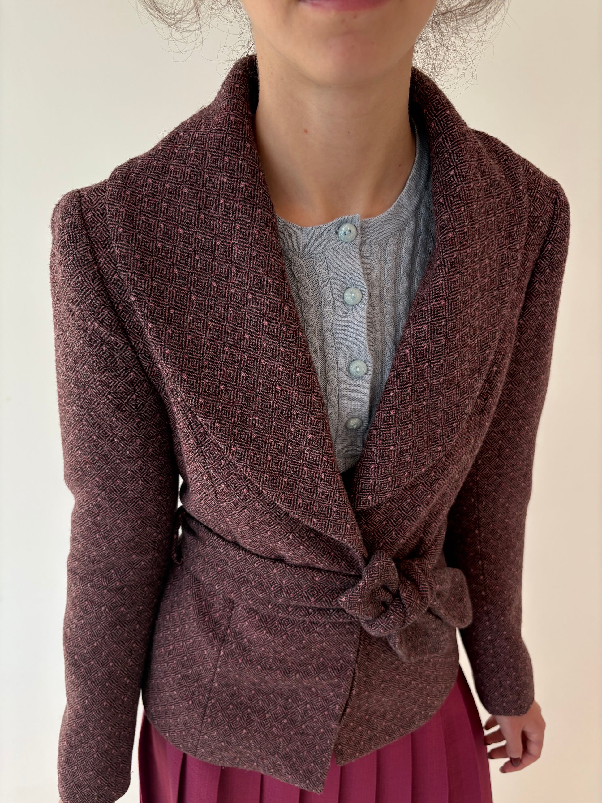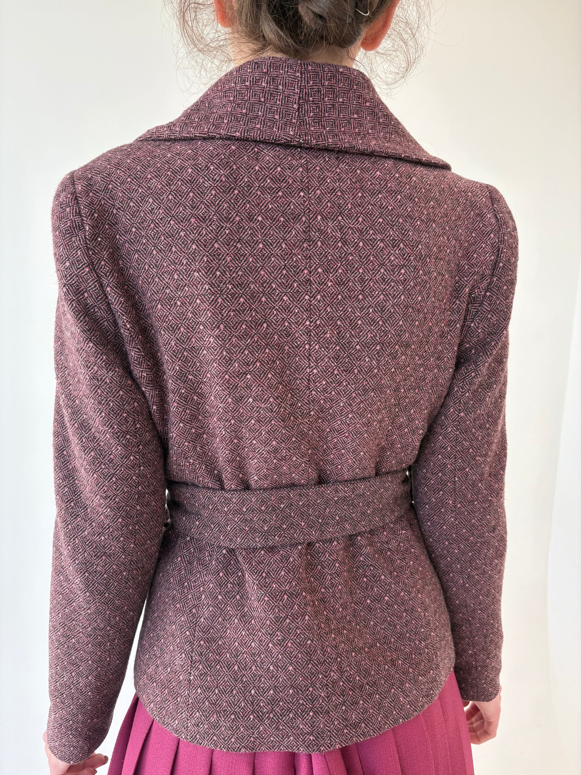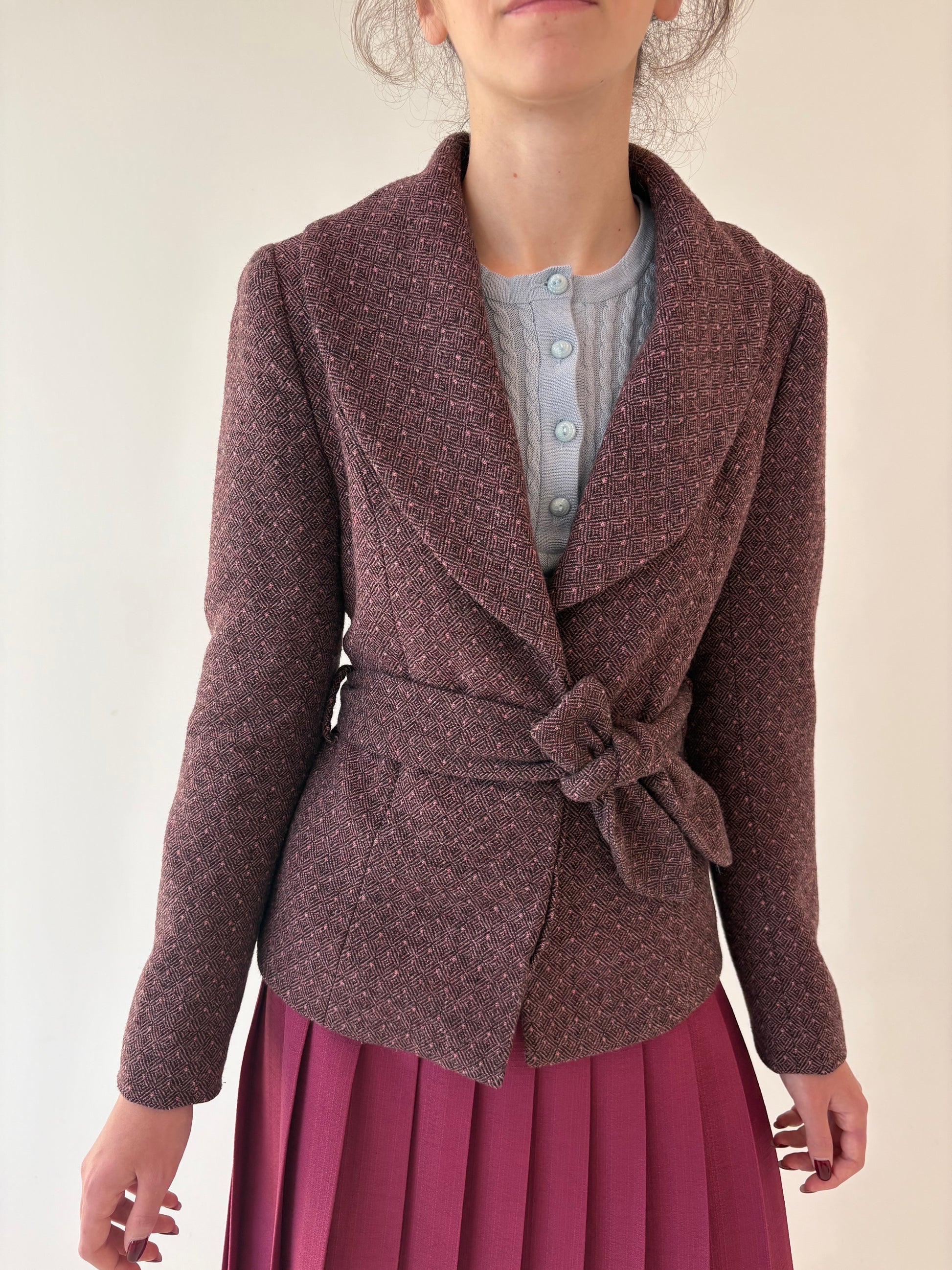 Sacou usor cambrat cu cordon din stofă de lana extafina si revere rotunjite