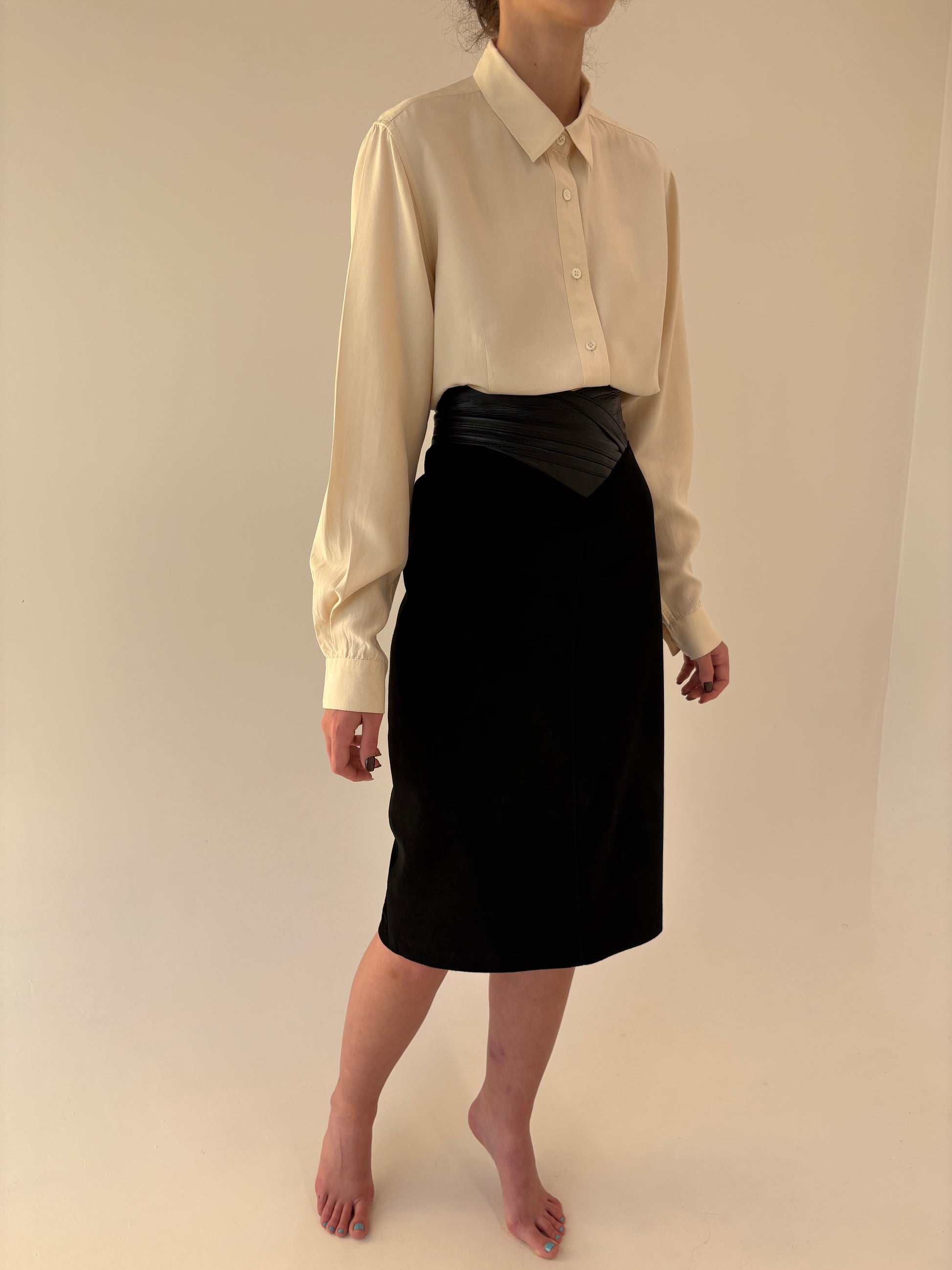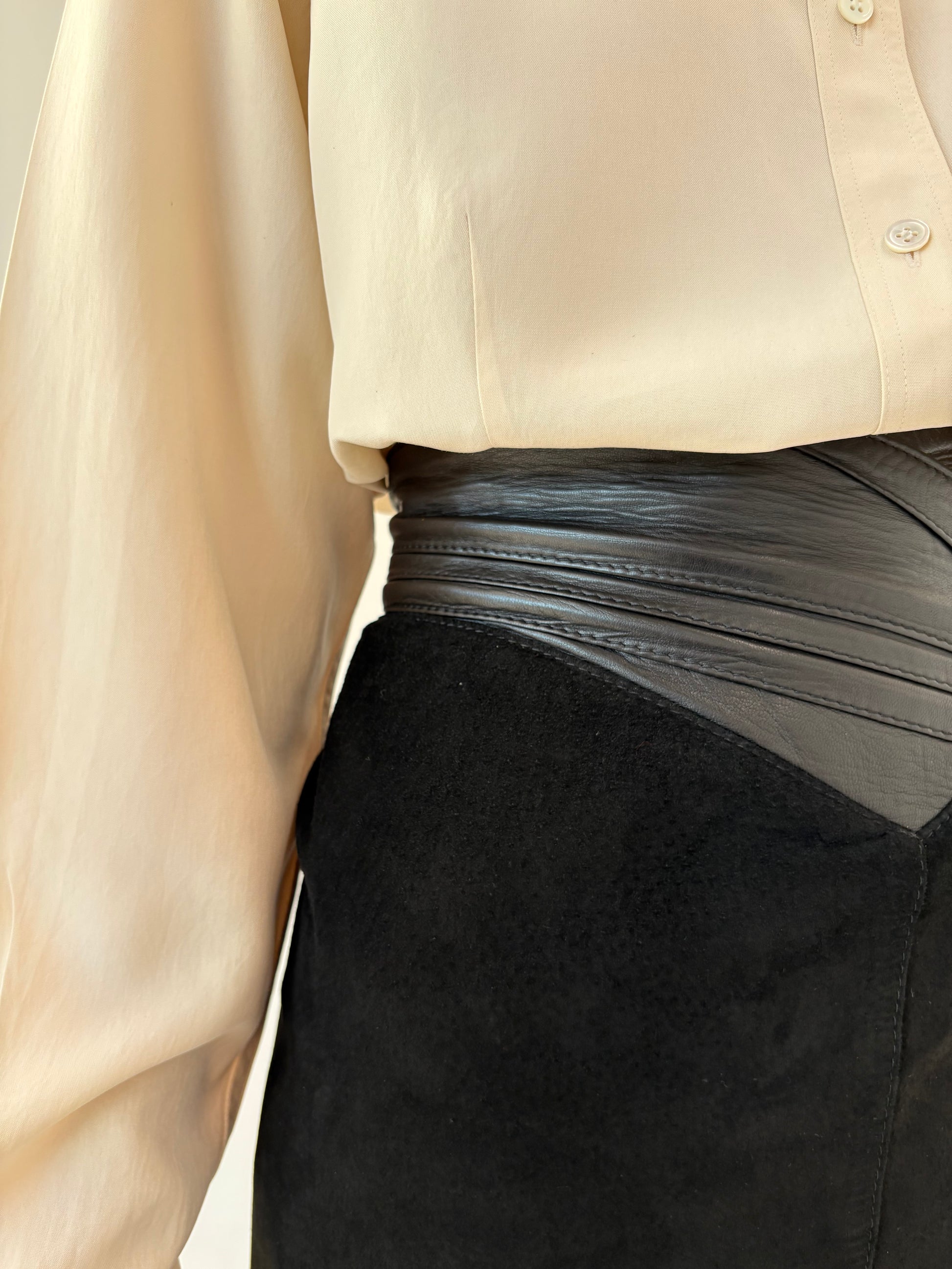 Fustă din piele naturală cu talie ultra ultra marcată superbă
