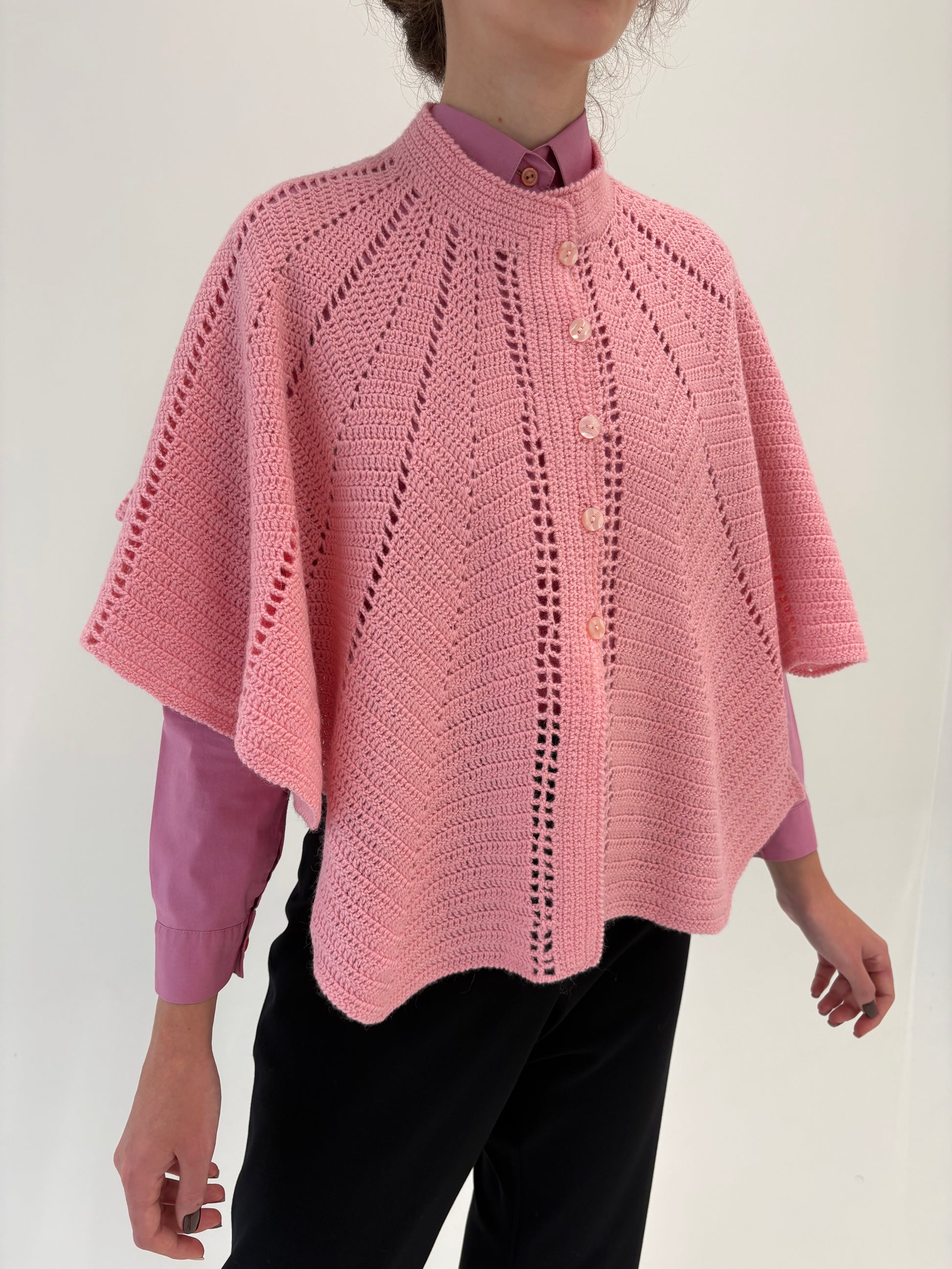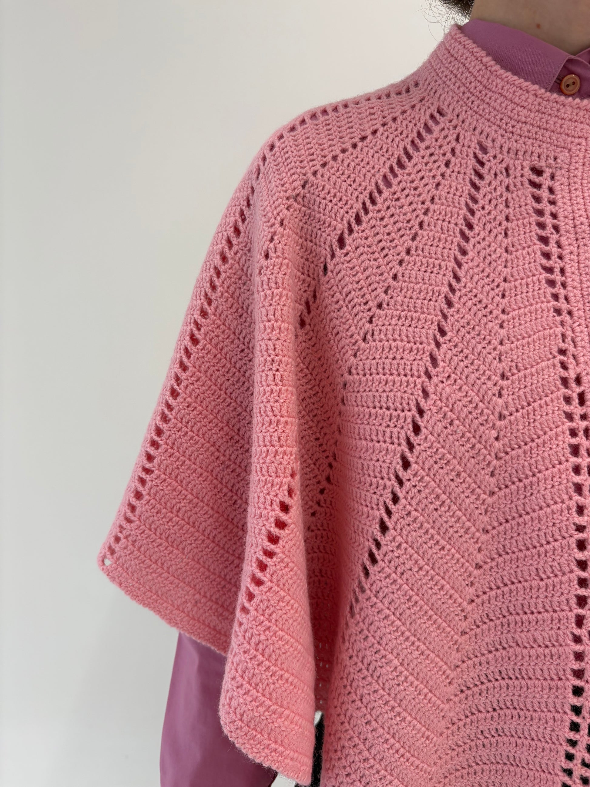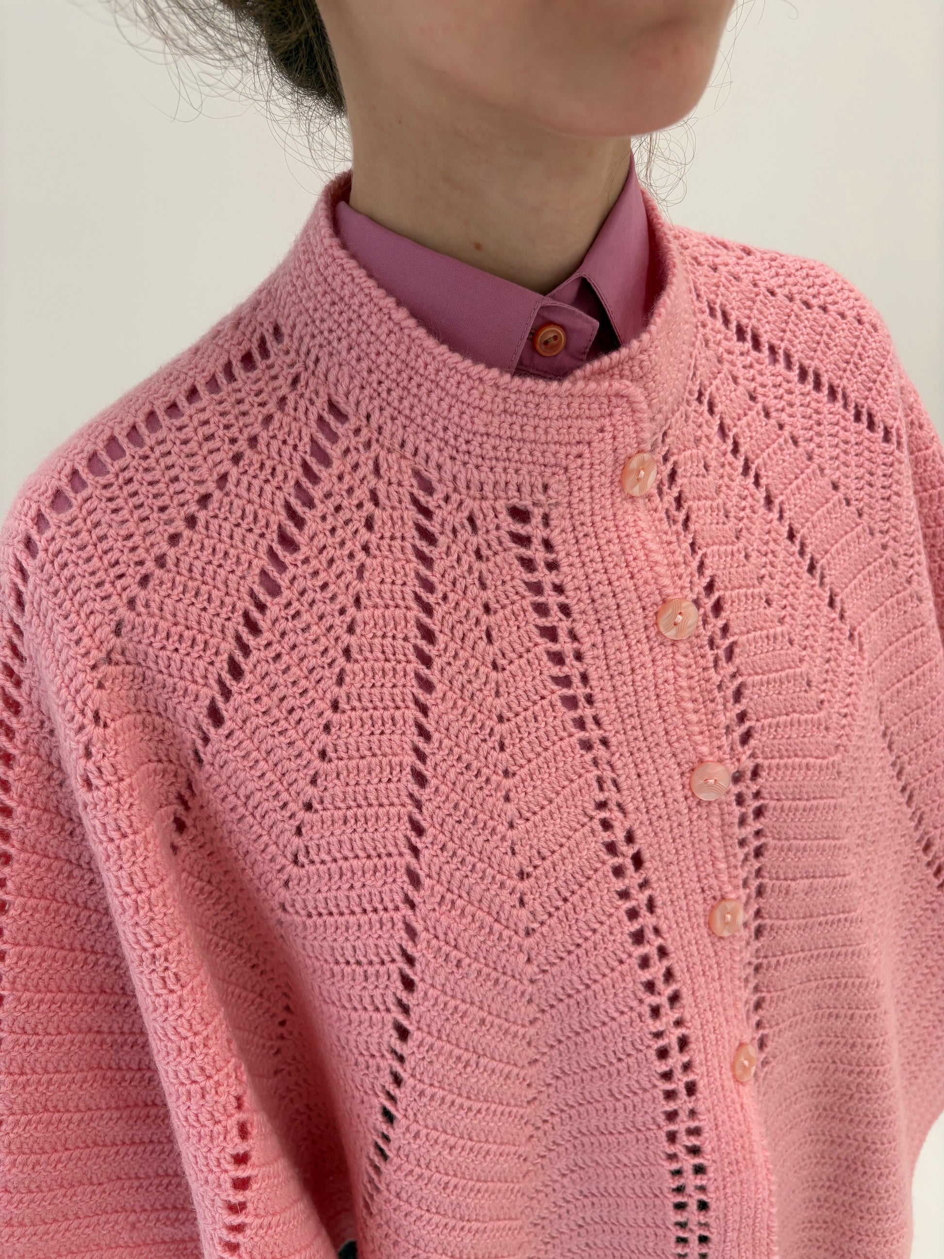 Capa vintage roz pudrat lucrată manual în stil macrame din lana extrafina