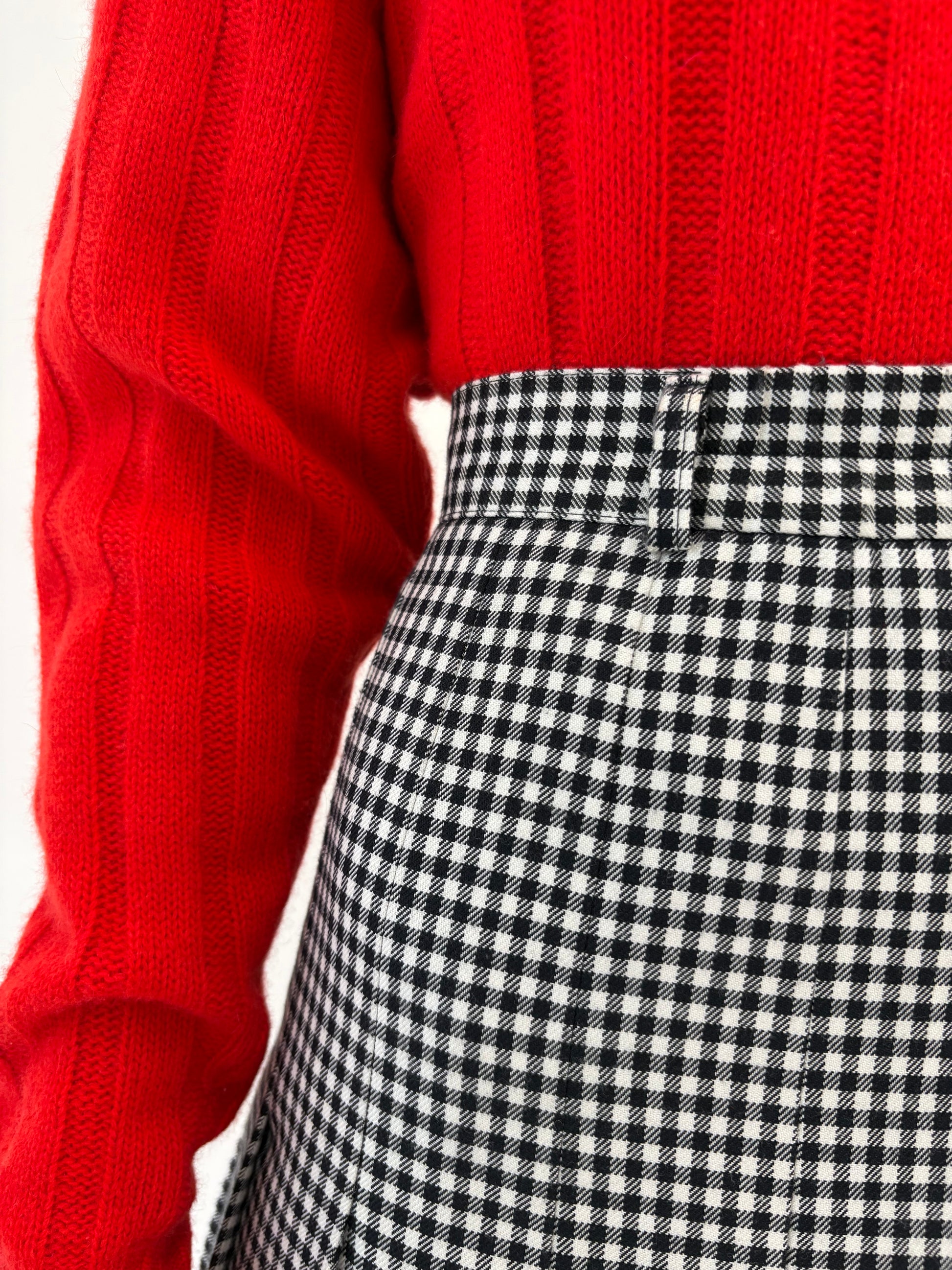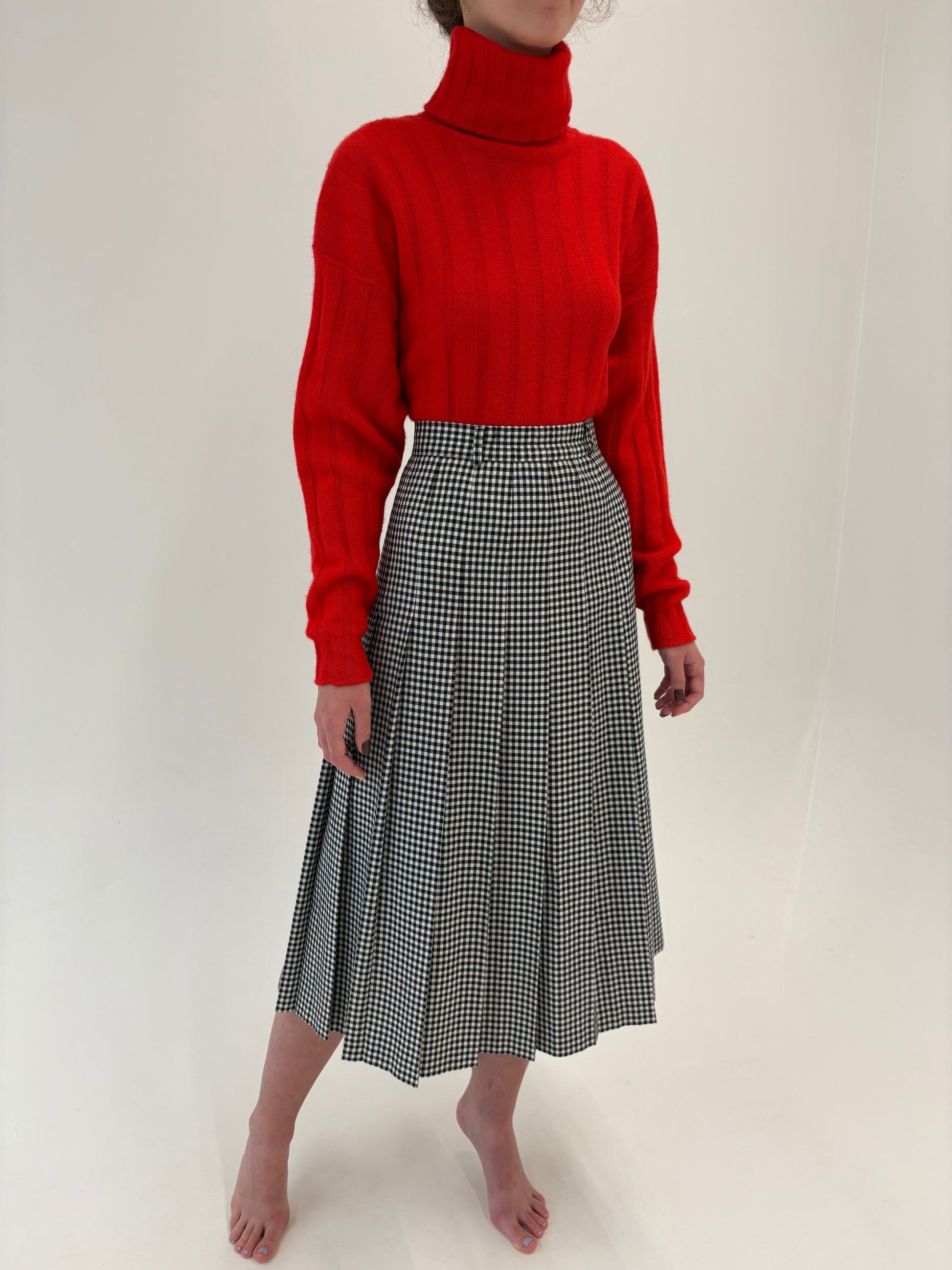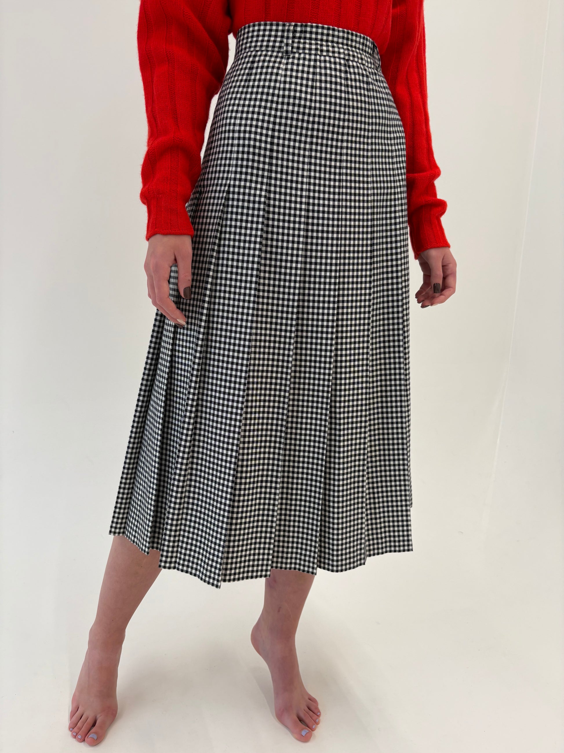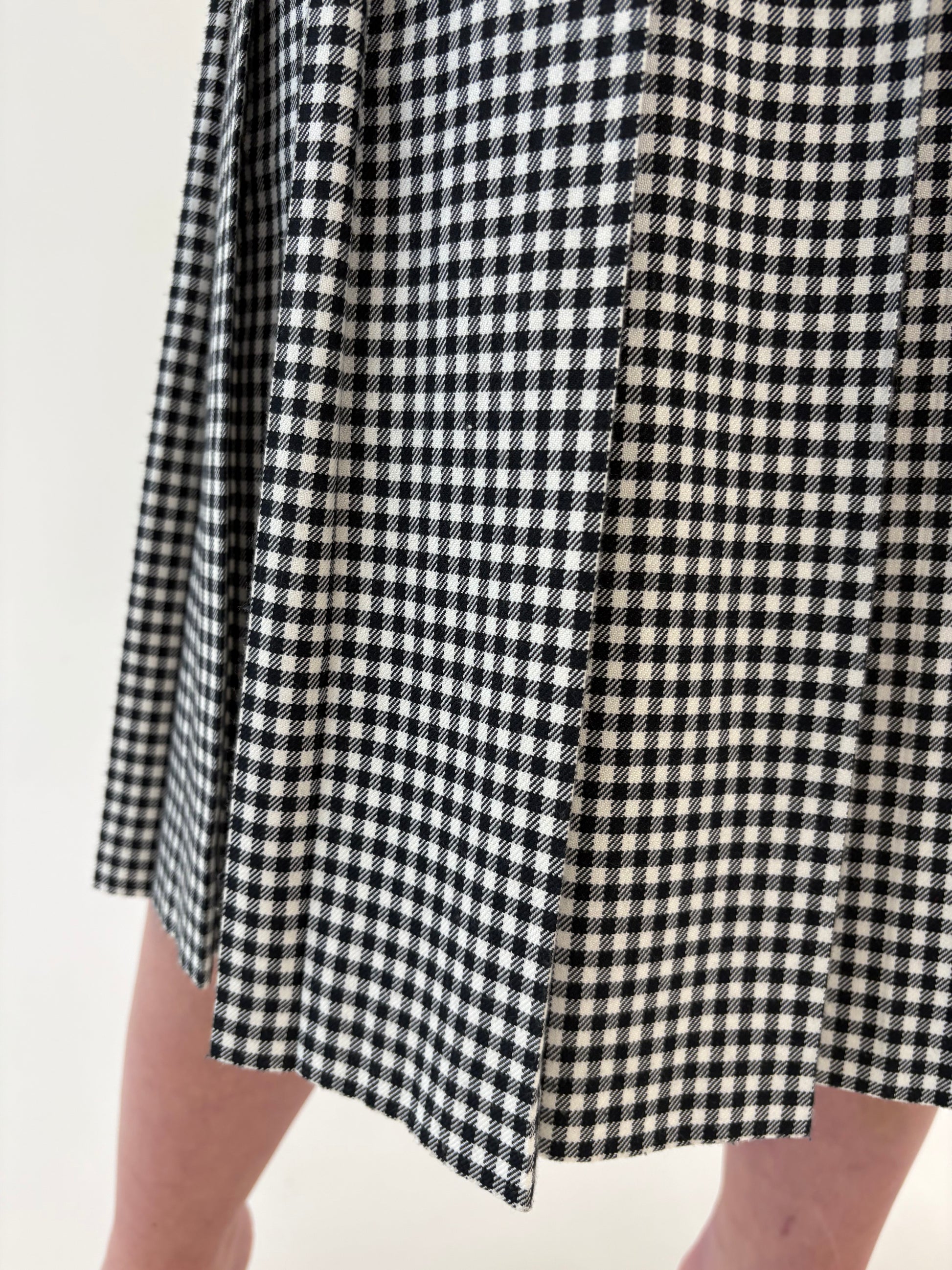 Fustă vintage plisata midi spre maxi în carouri alb negru din mix de lana