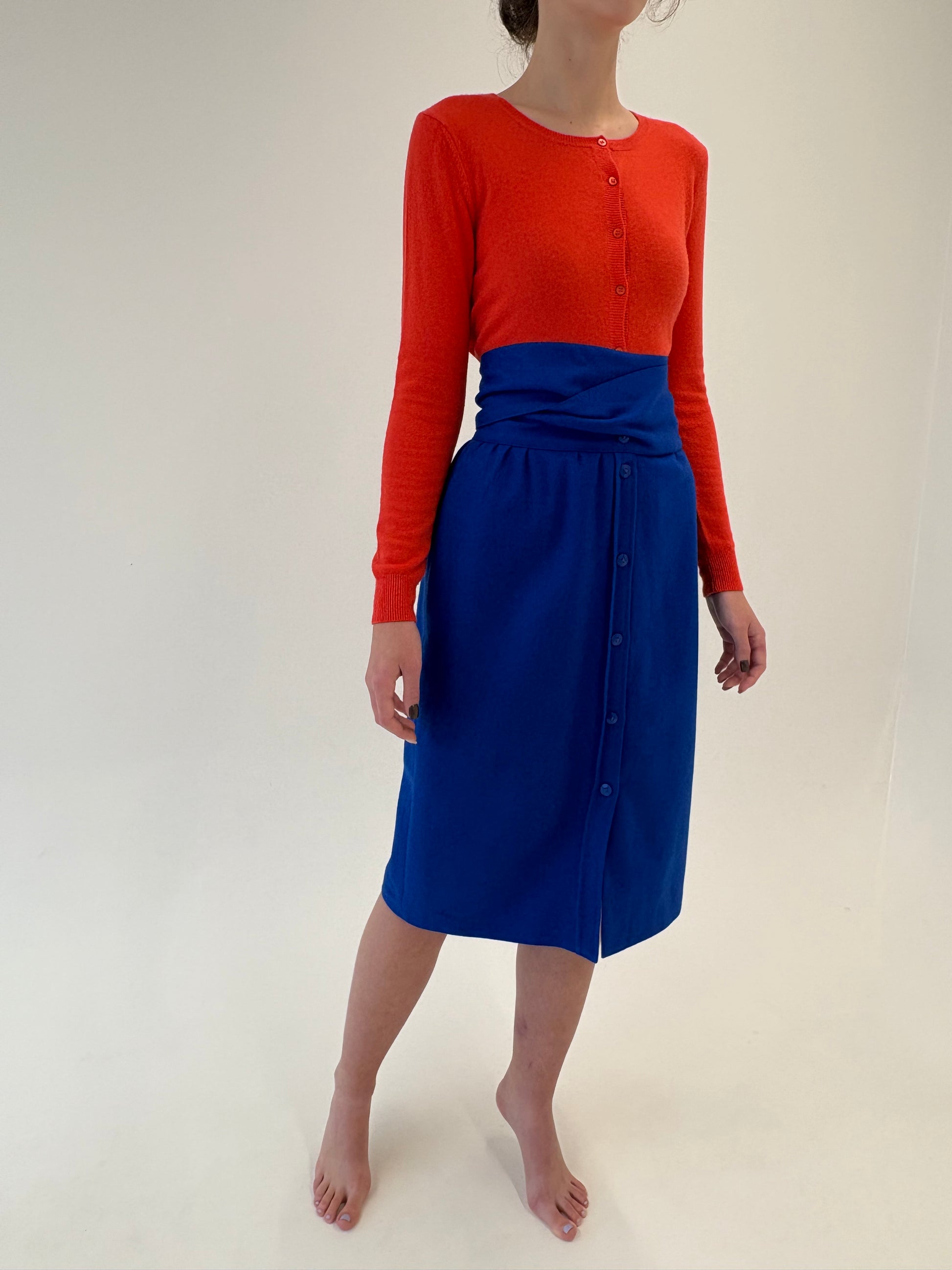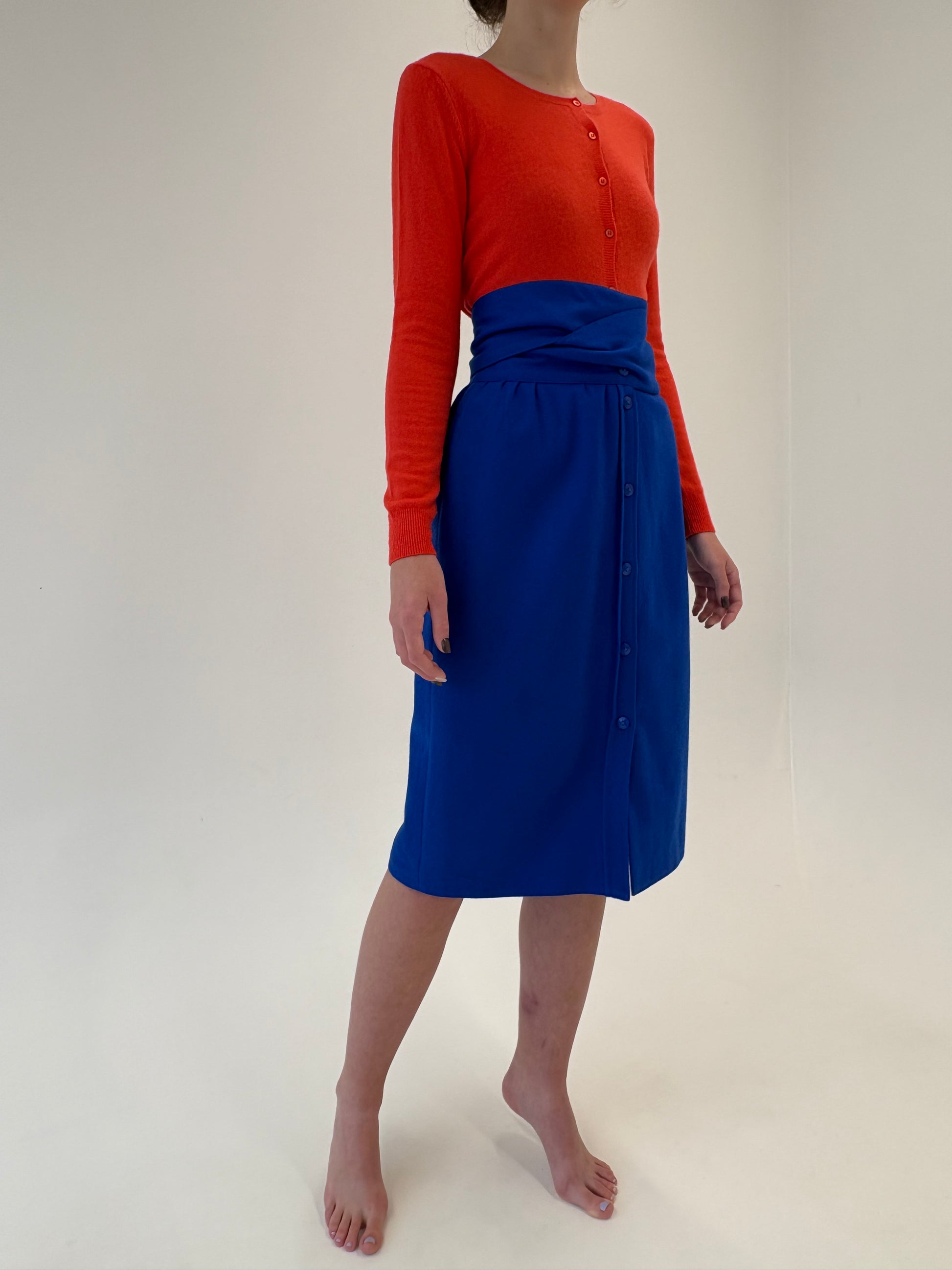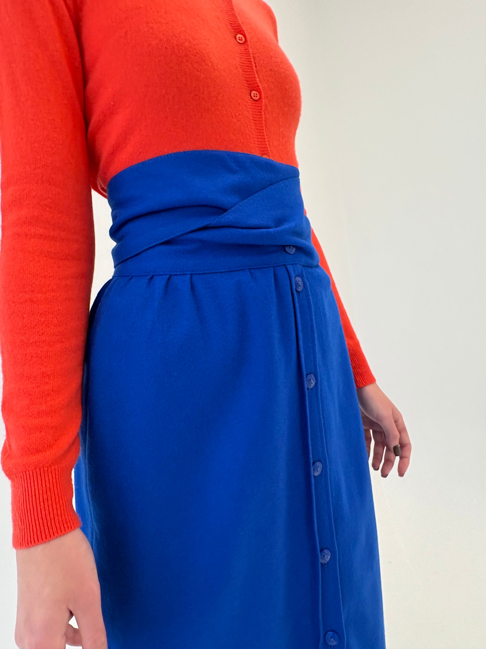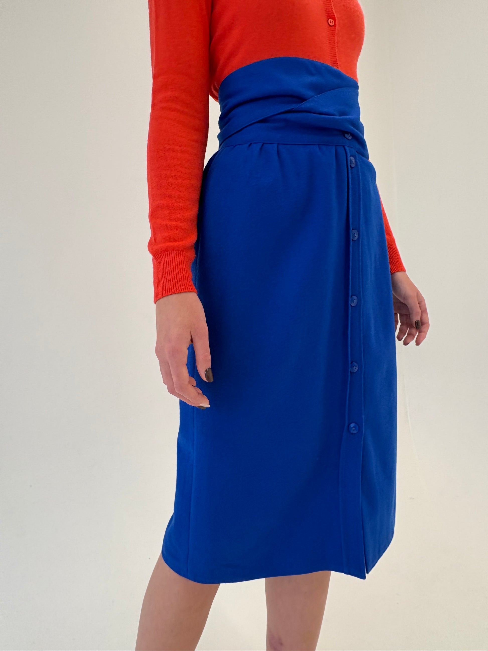 Fustă albastru regal spectaculoasă cu talie ultra înaltă în croi elaborat