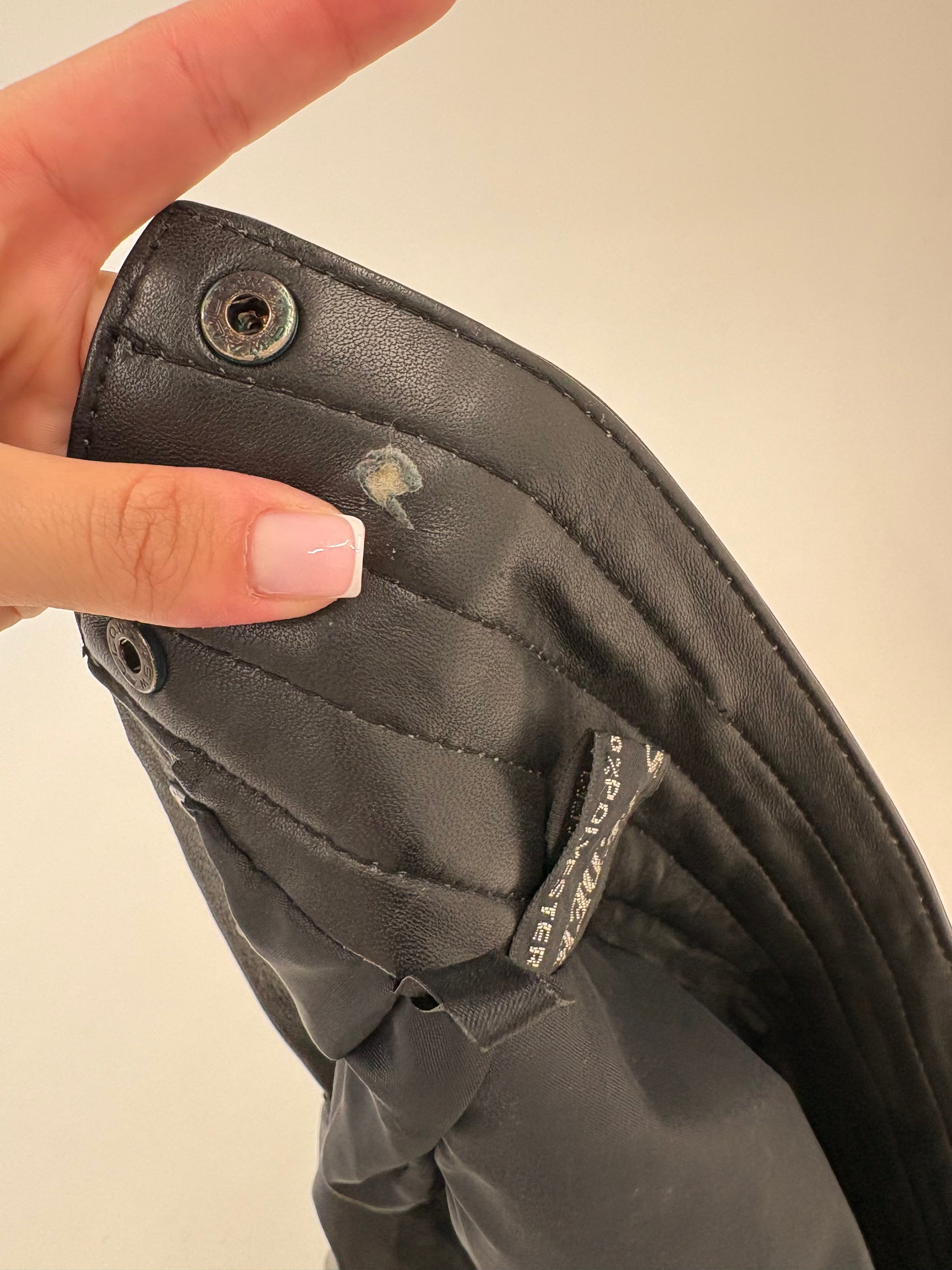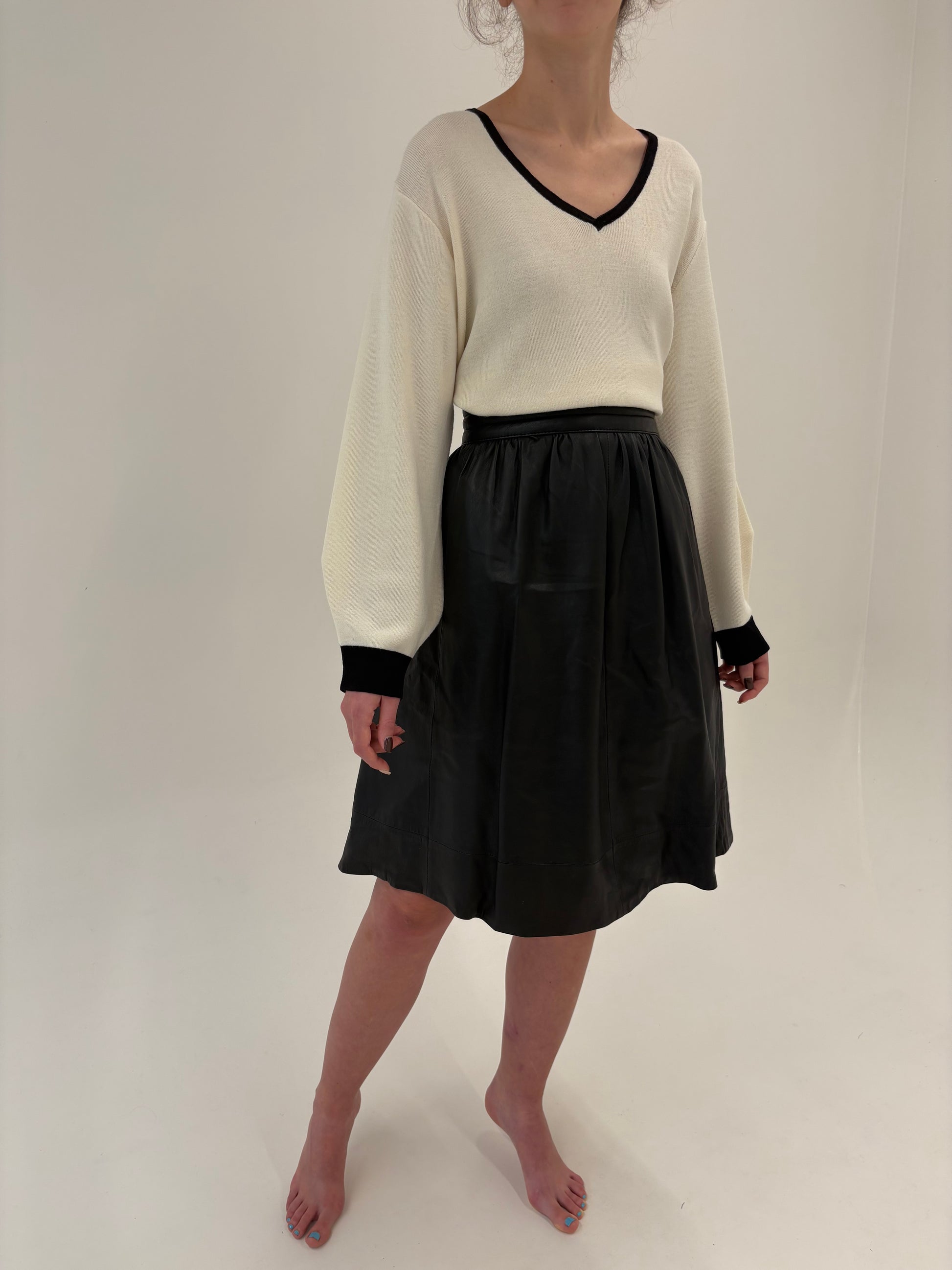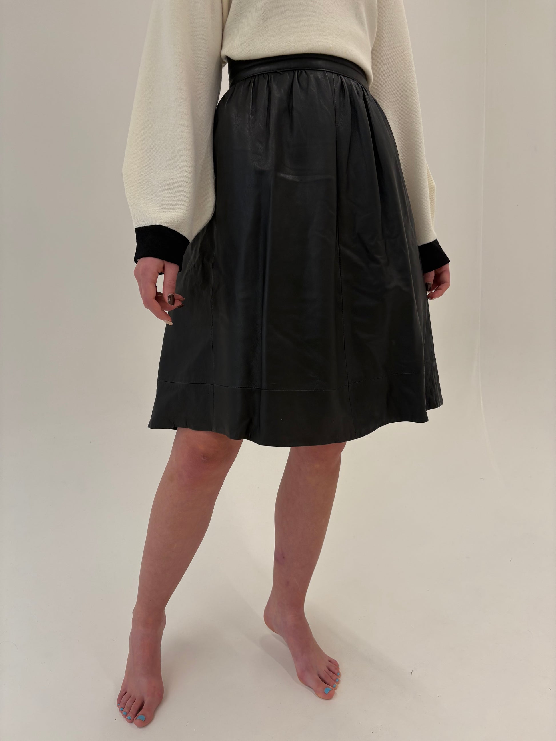 Fustă din piele naturală super amplă cu talie ultra înaltă marcată