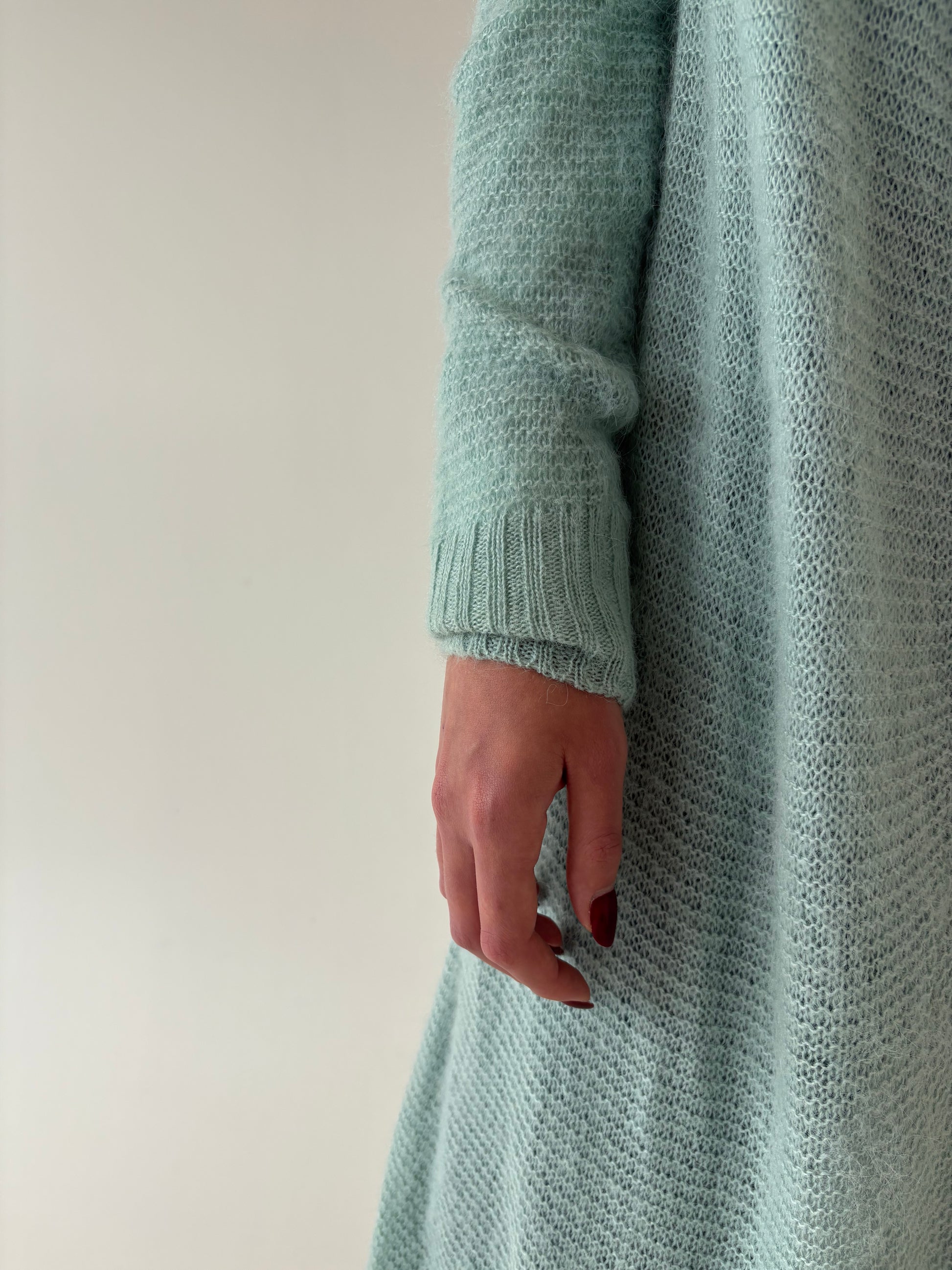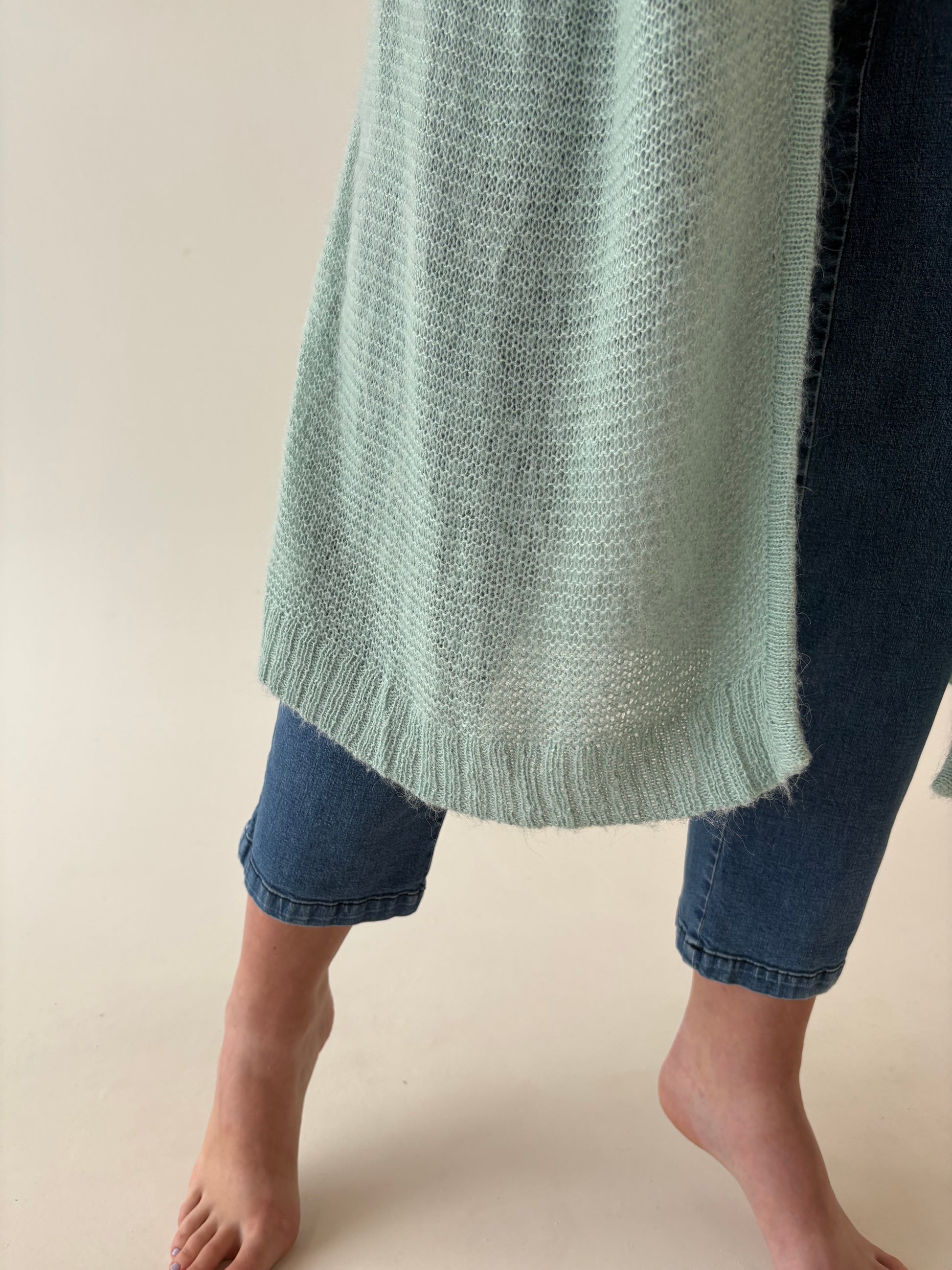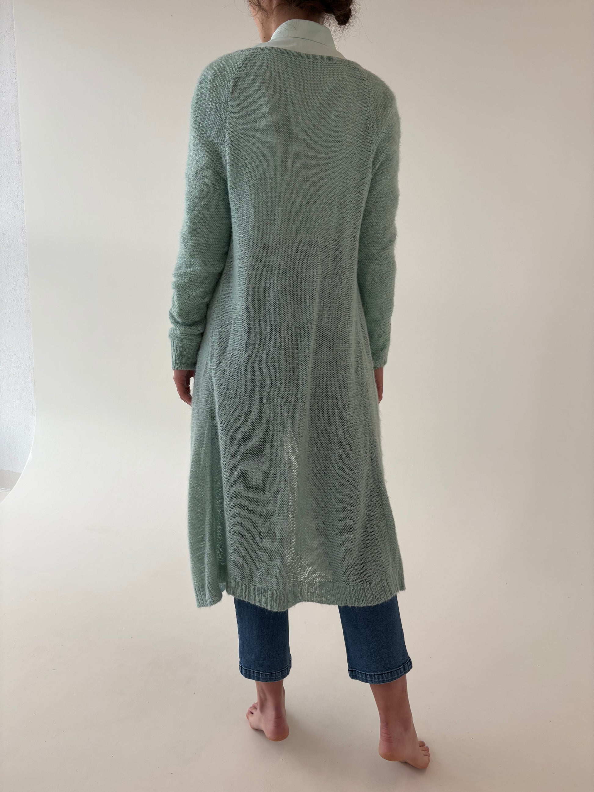 Cardigan lung mint green din baby mohair
