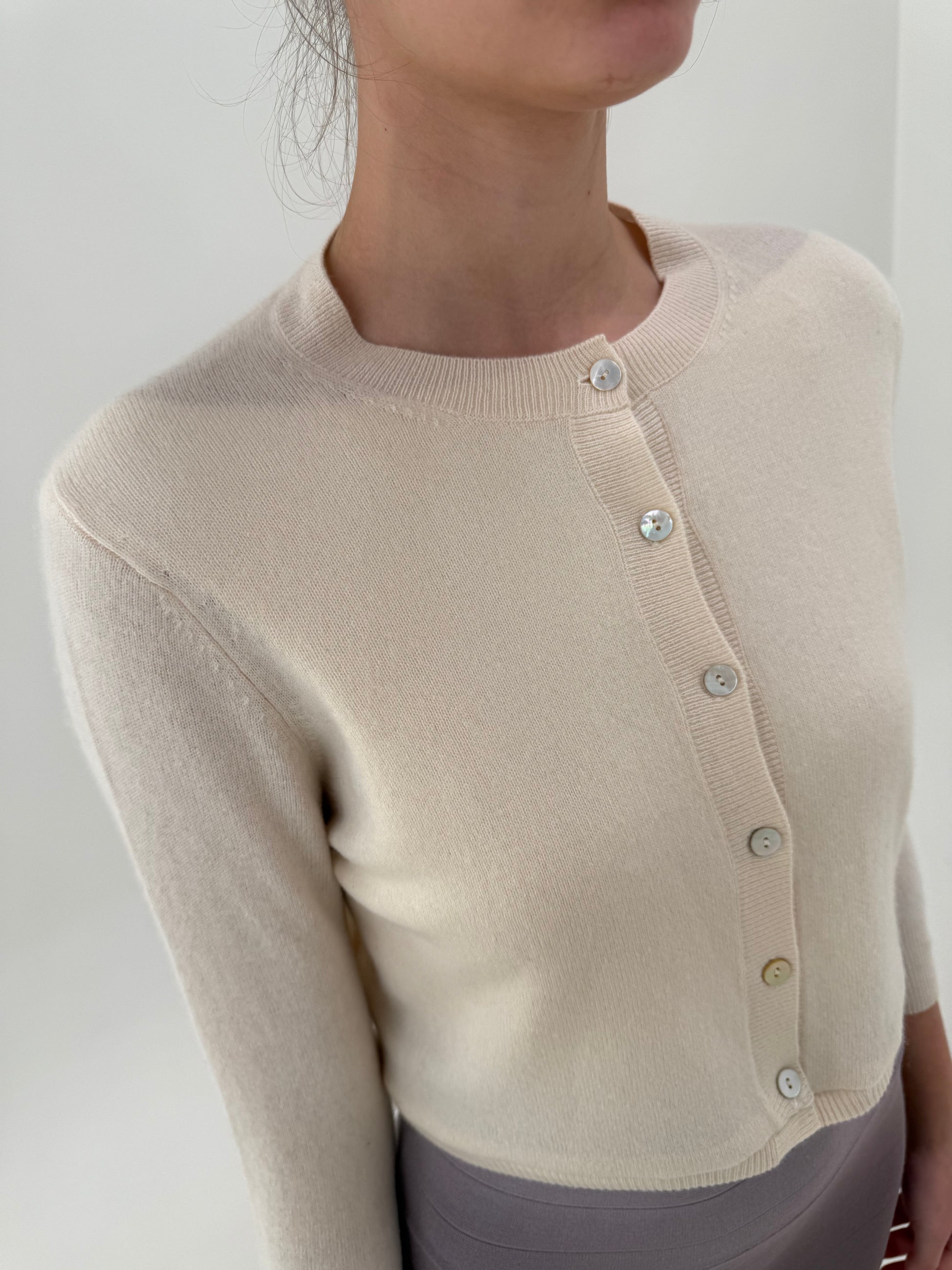 Cardigan ivoire din cașmir cu nasturi mother of pearl
