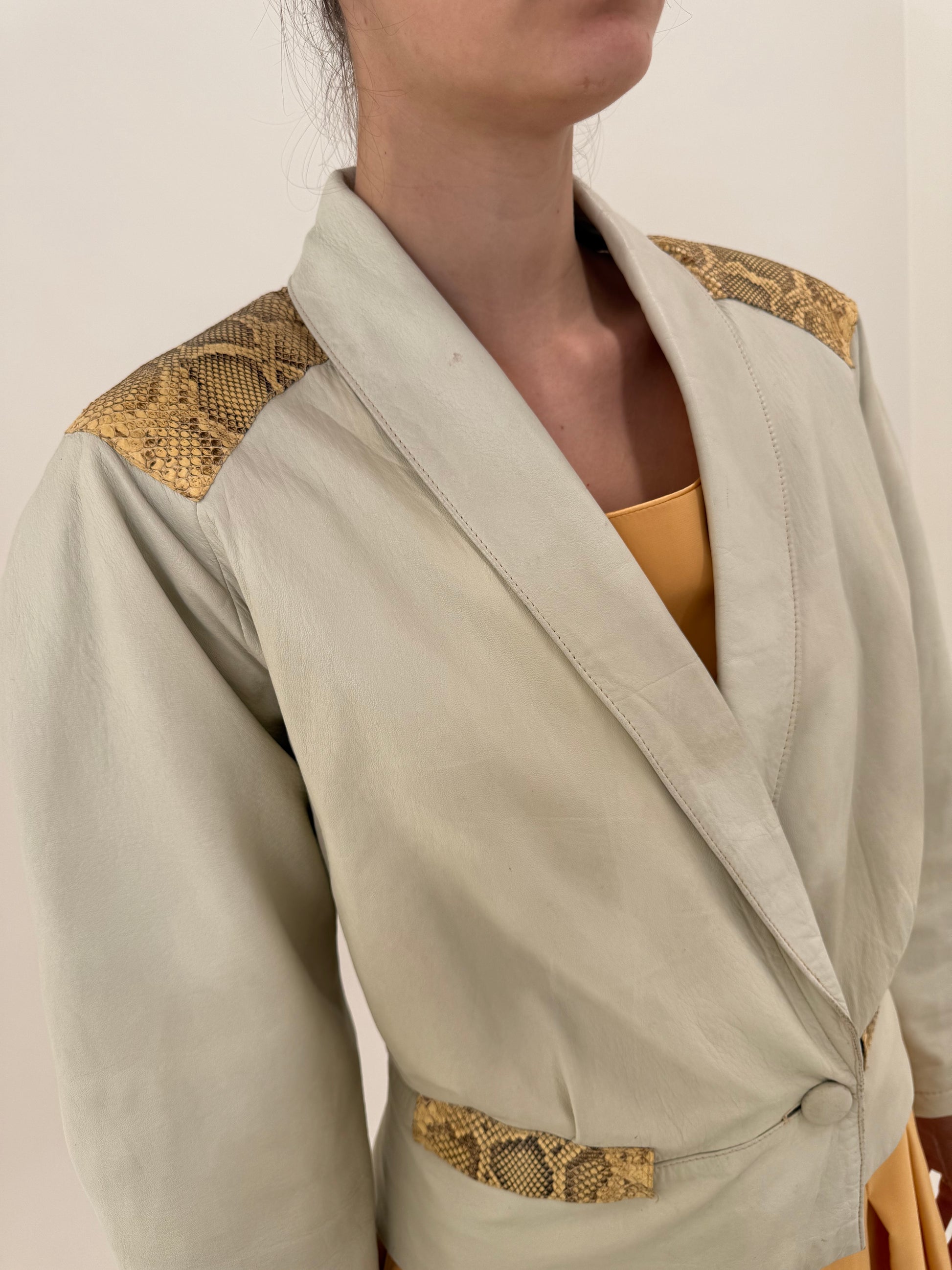 Geacă vintage din piele naturală cu inserții din piele veritabilă de șarpe