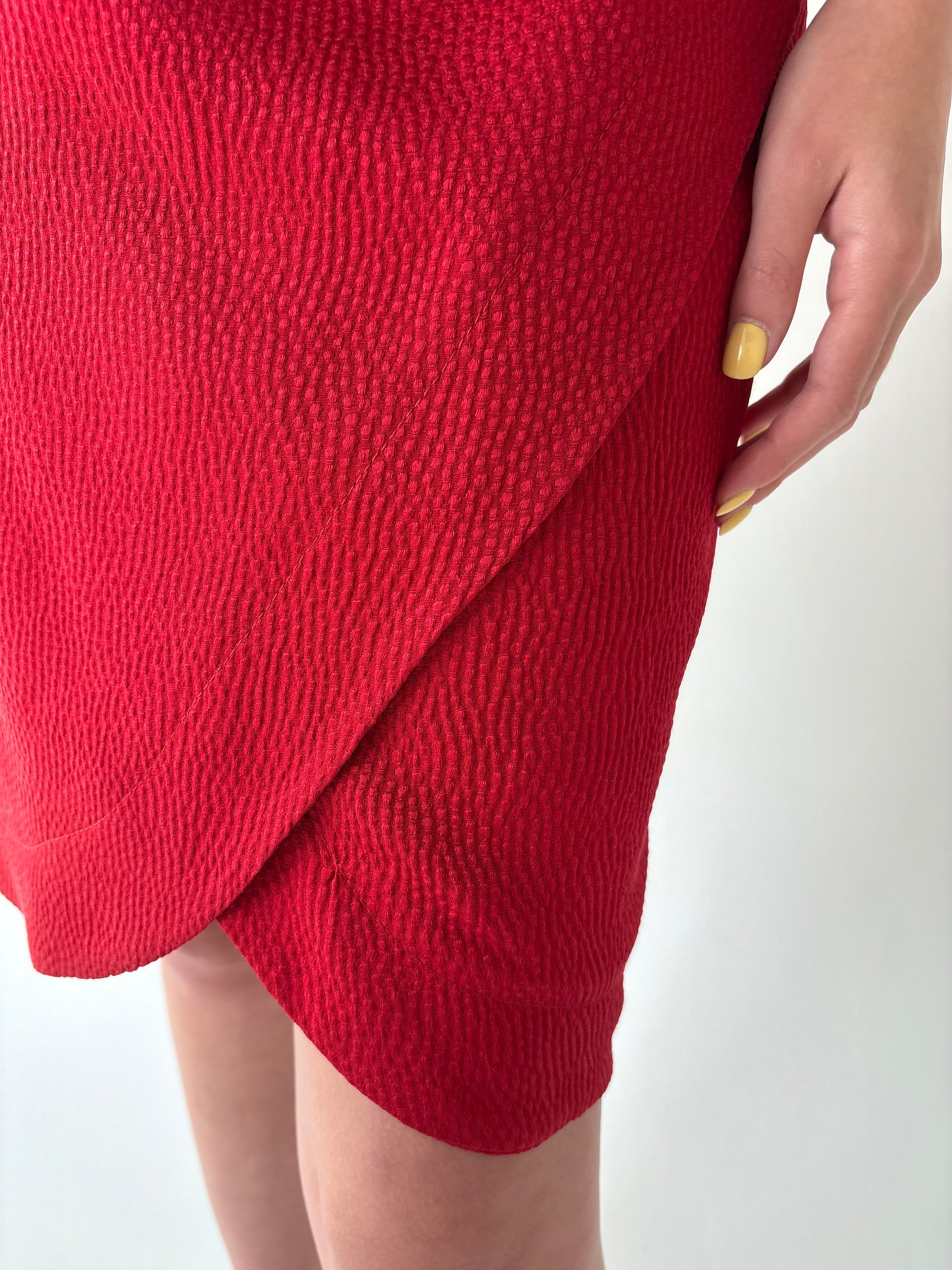 Fustă tulip din mătase naturală cherry red texturată