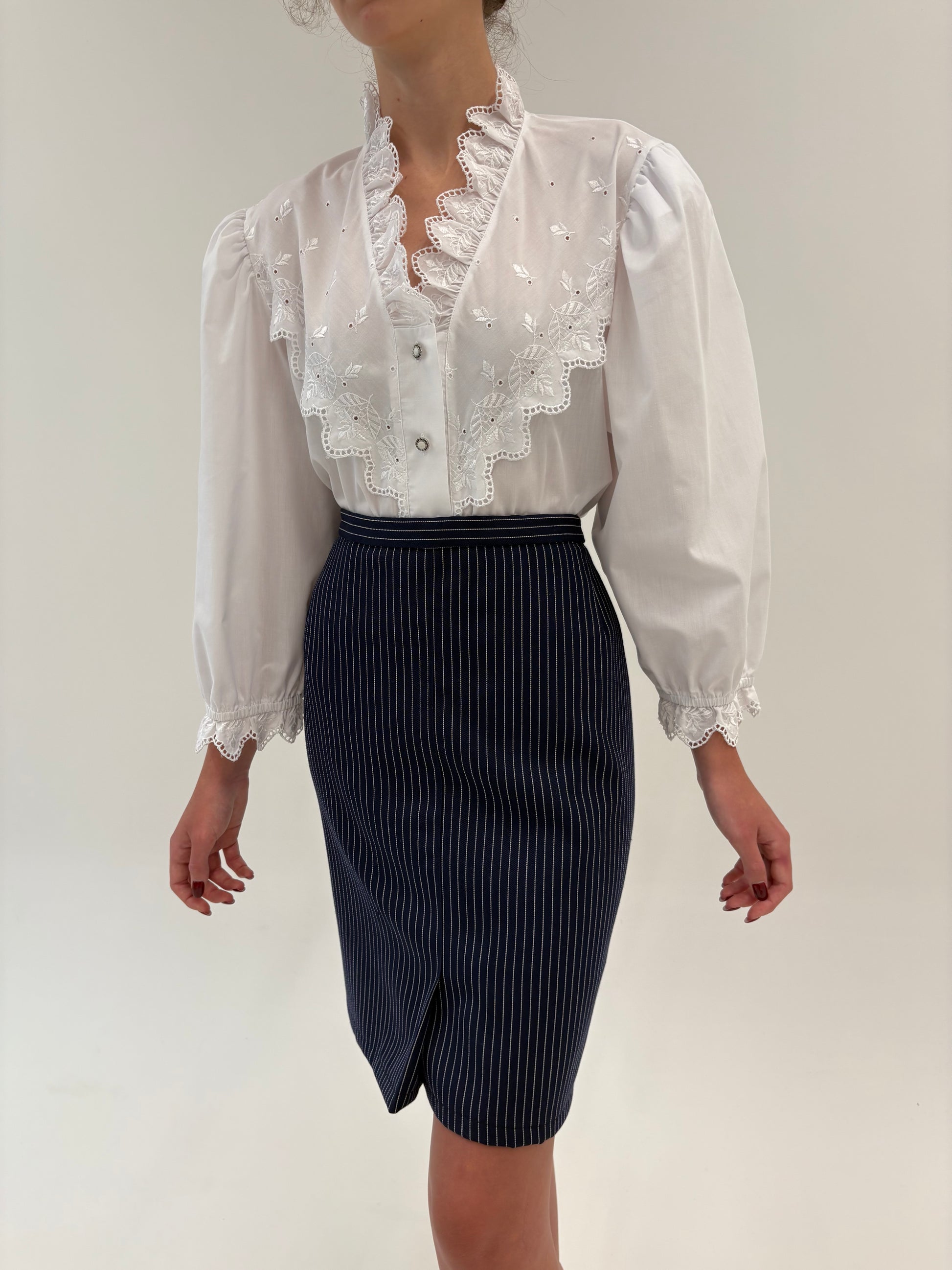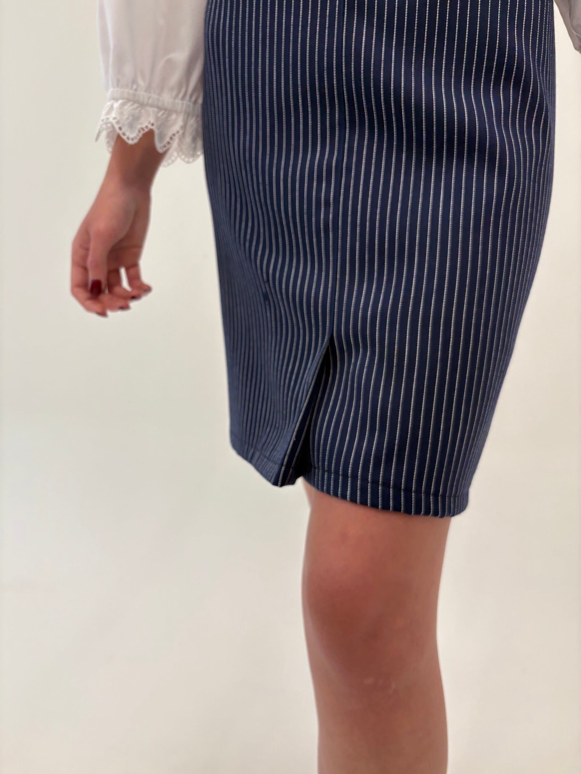 Fustă Navy din lana extrafina cu dungi fine verticale ivorie