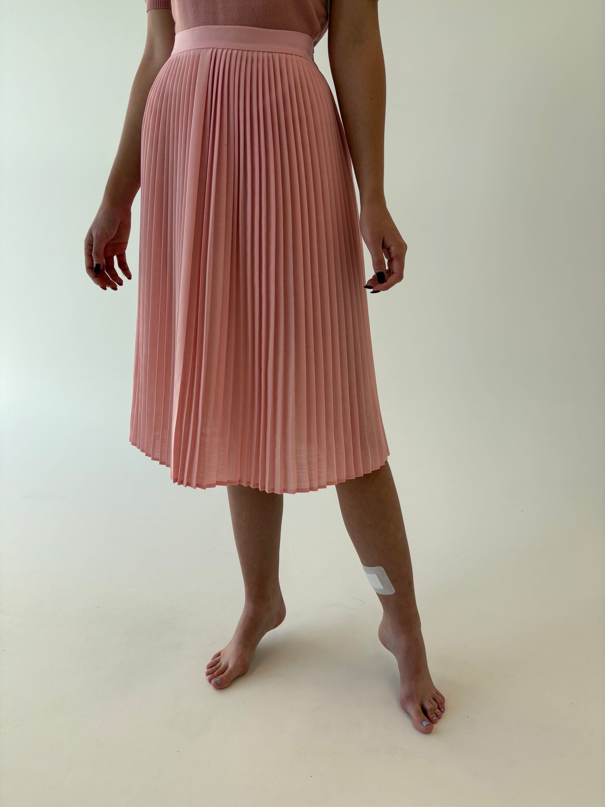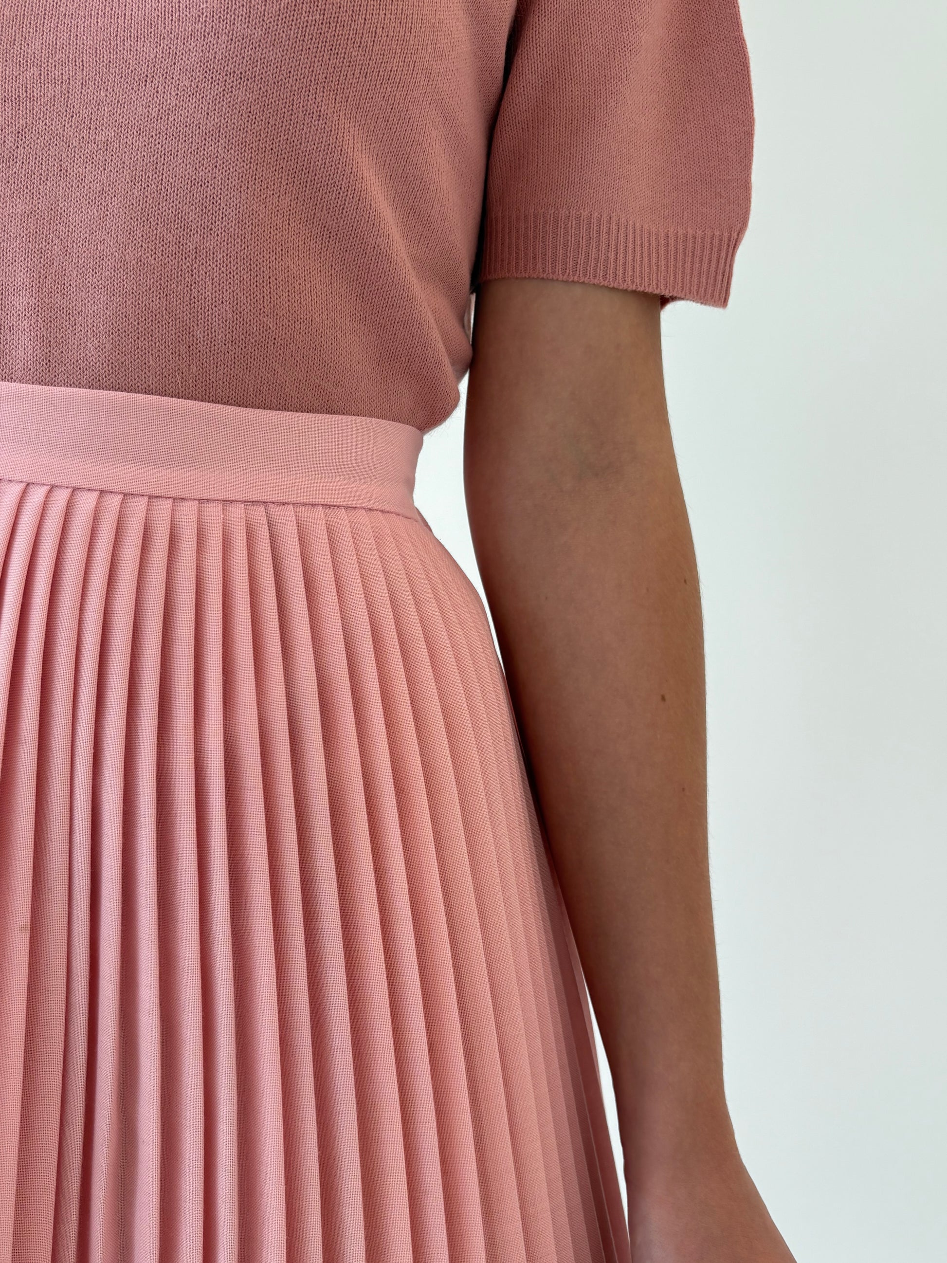 Fustă plisată din lana extrafina powder pink cu talie ultra înaltă