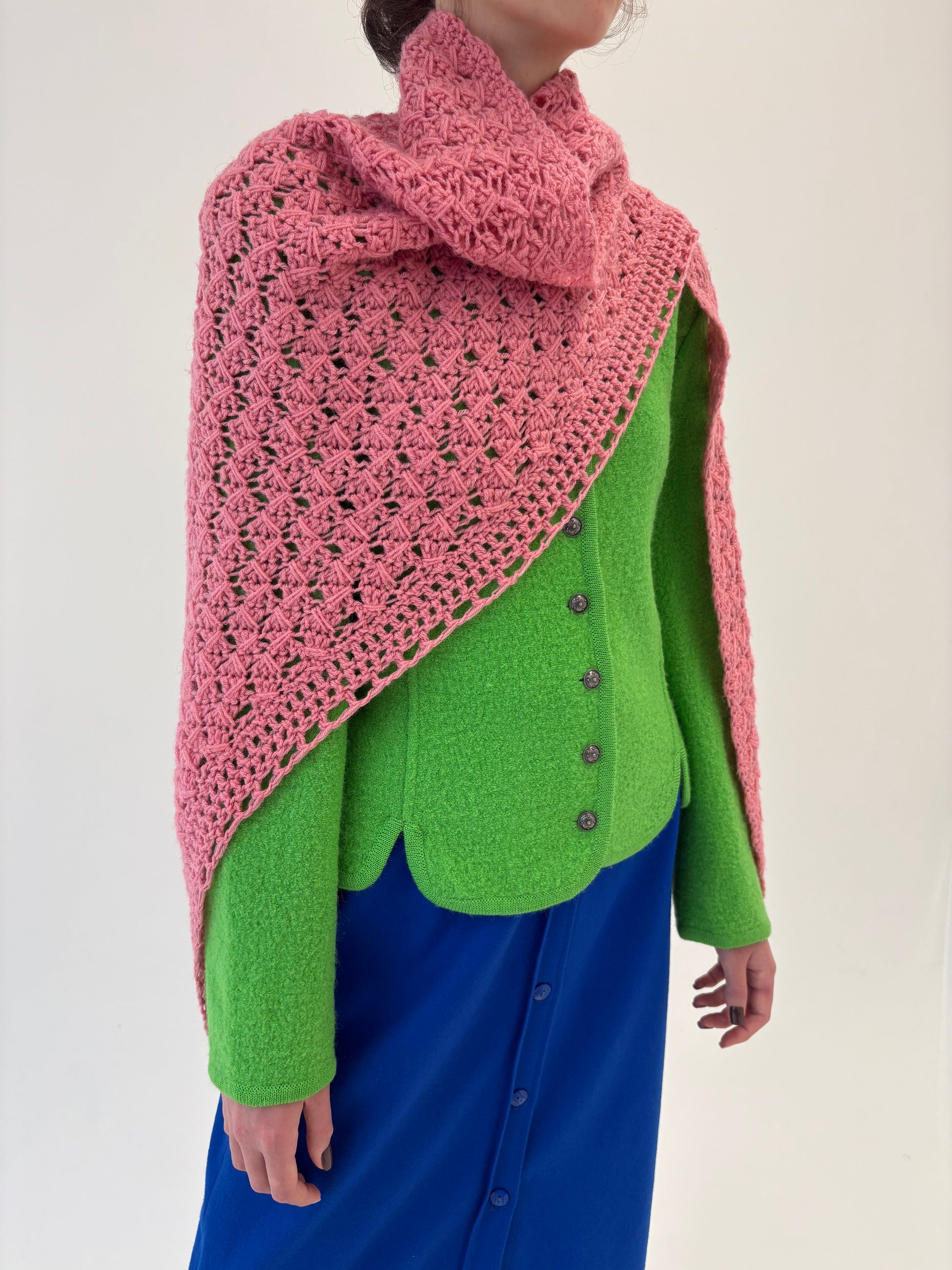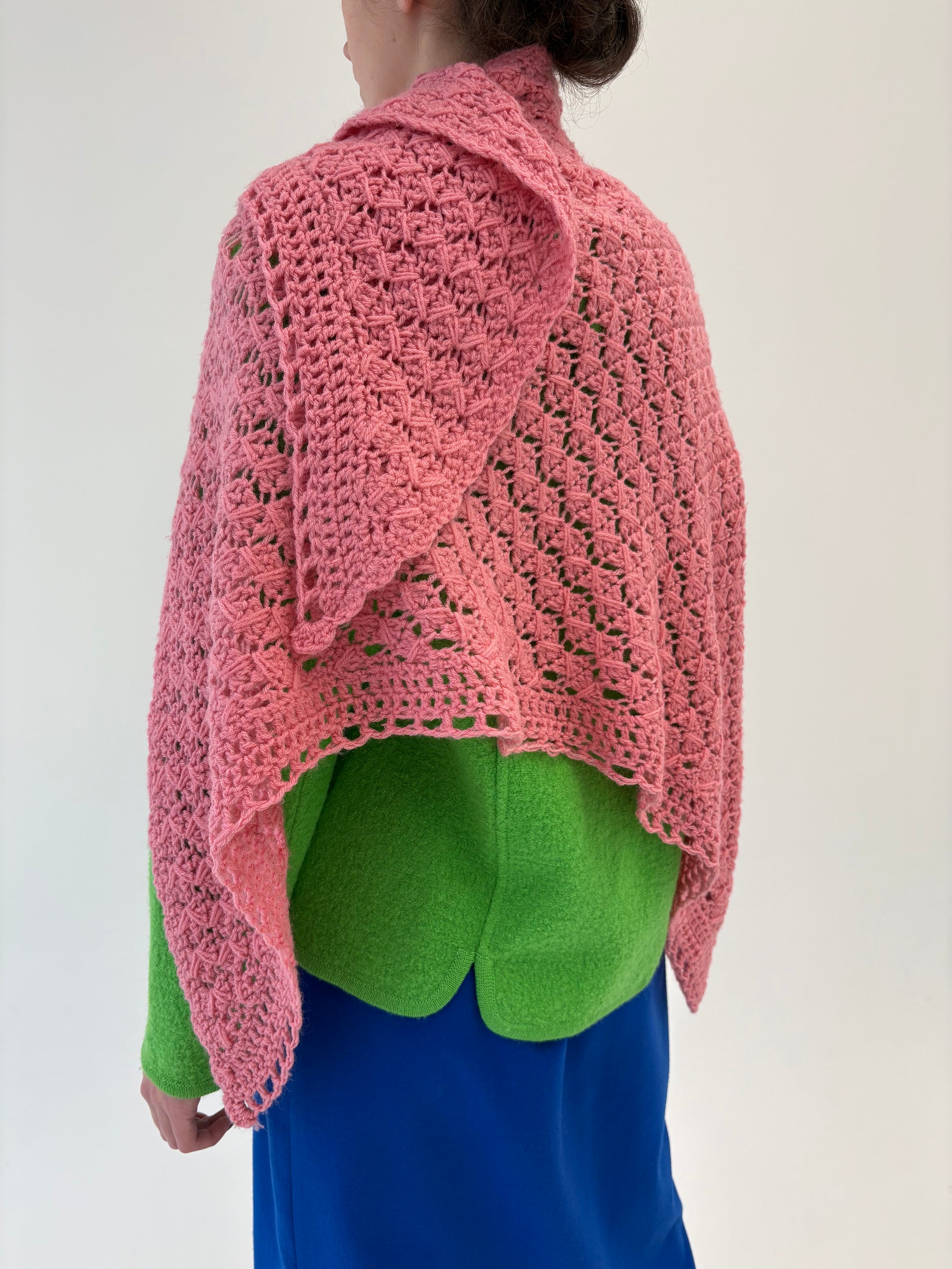 Eșarfă groasă XL powder pink lucrată manual din lana extrafina