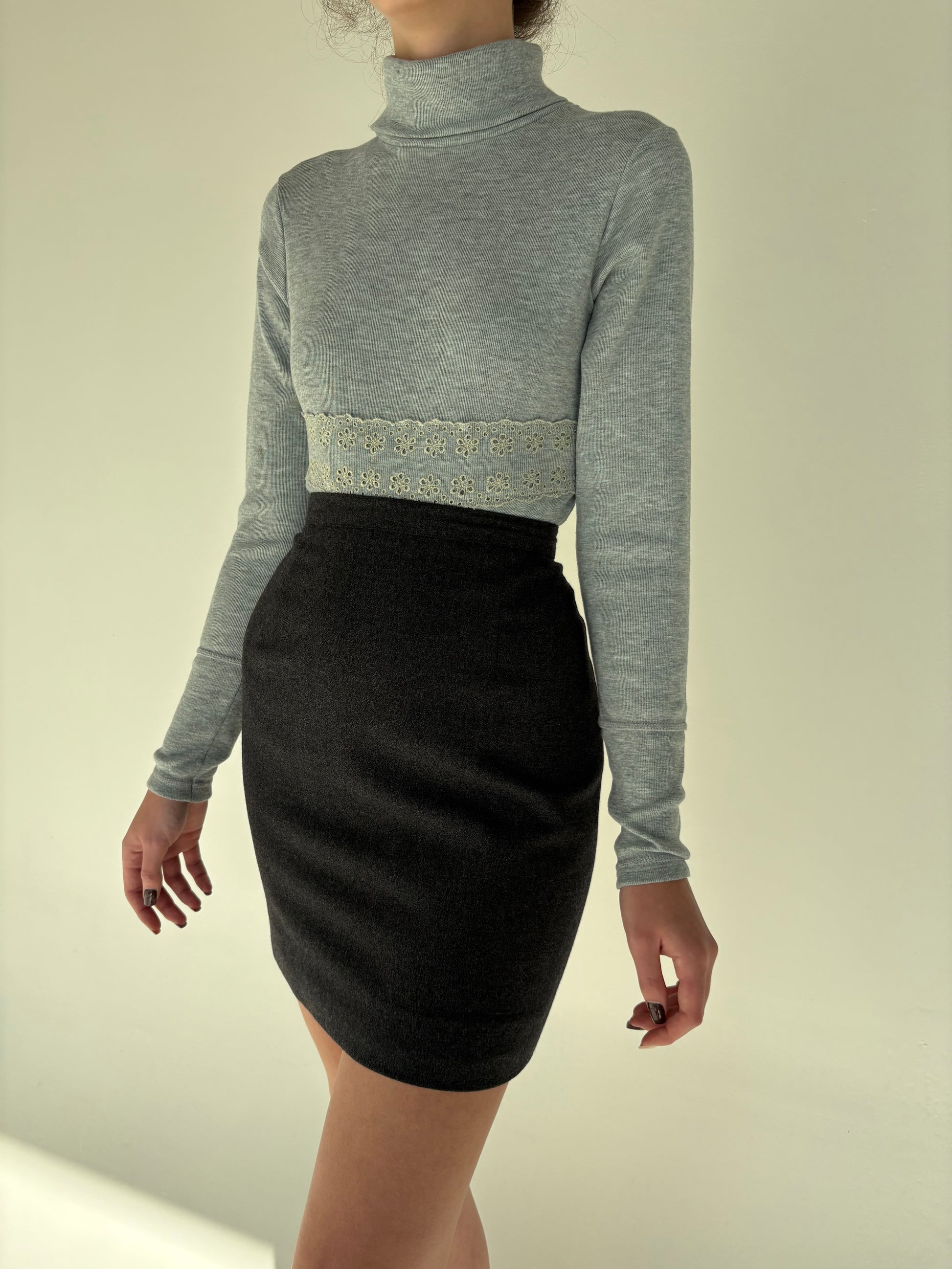 Fustă conică cu talie ultra înaltă din lana extrafina