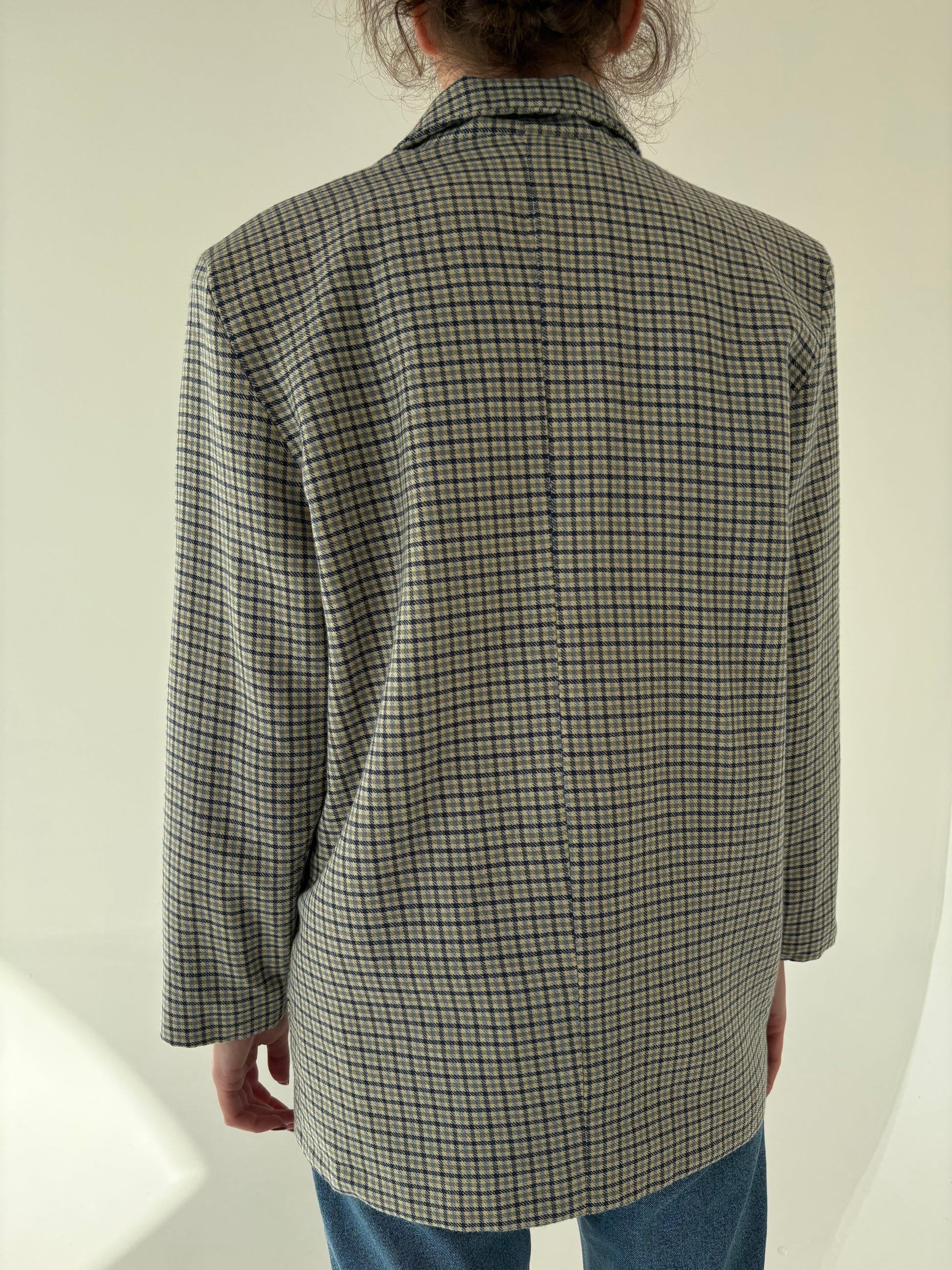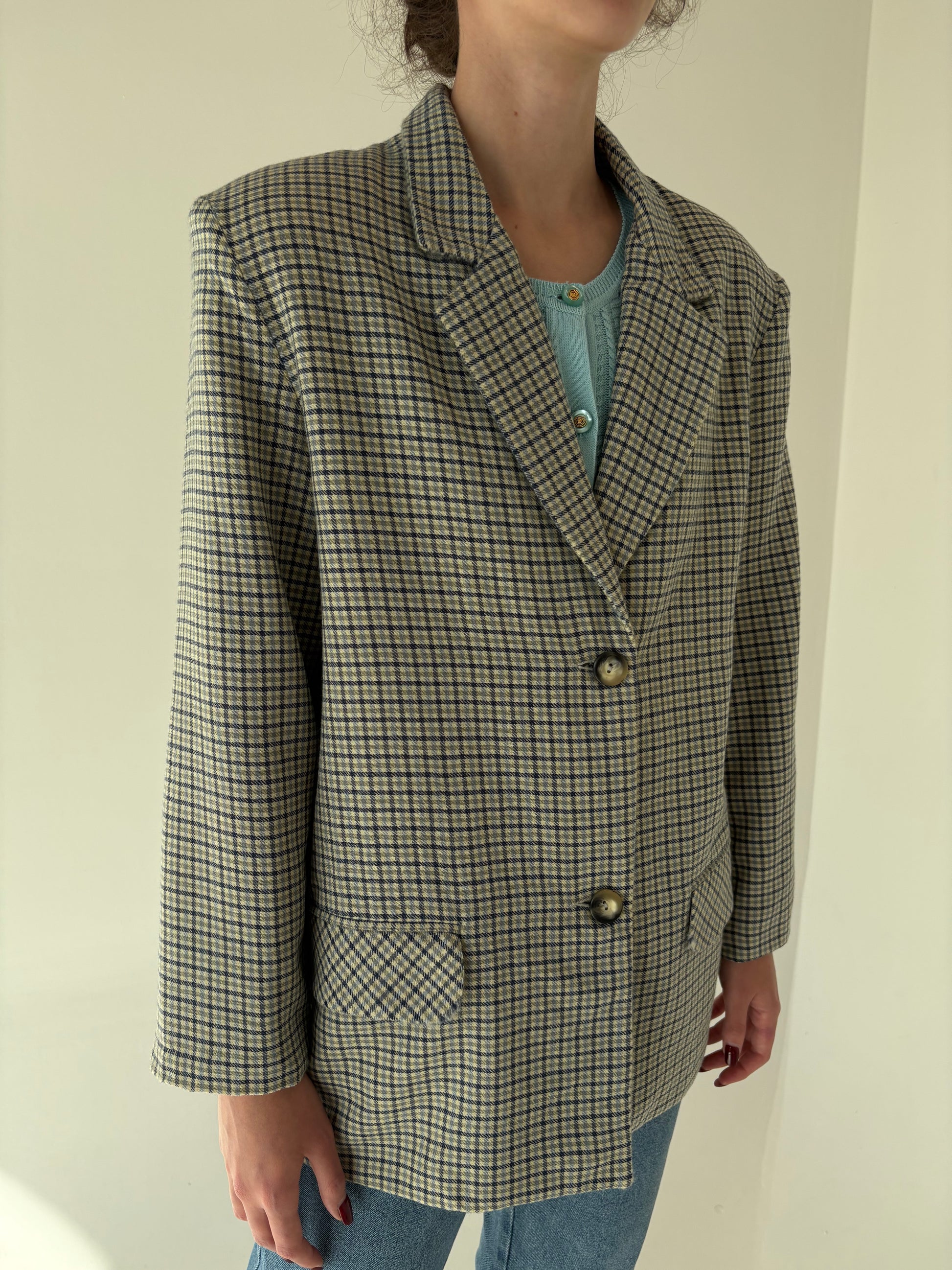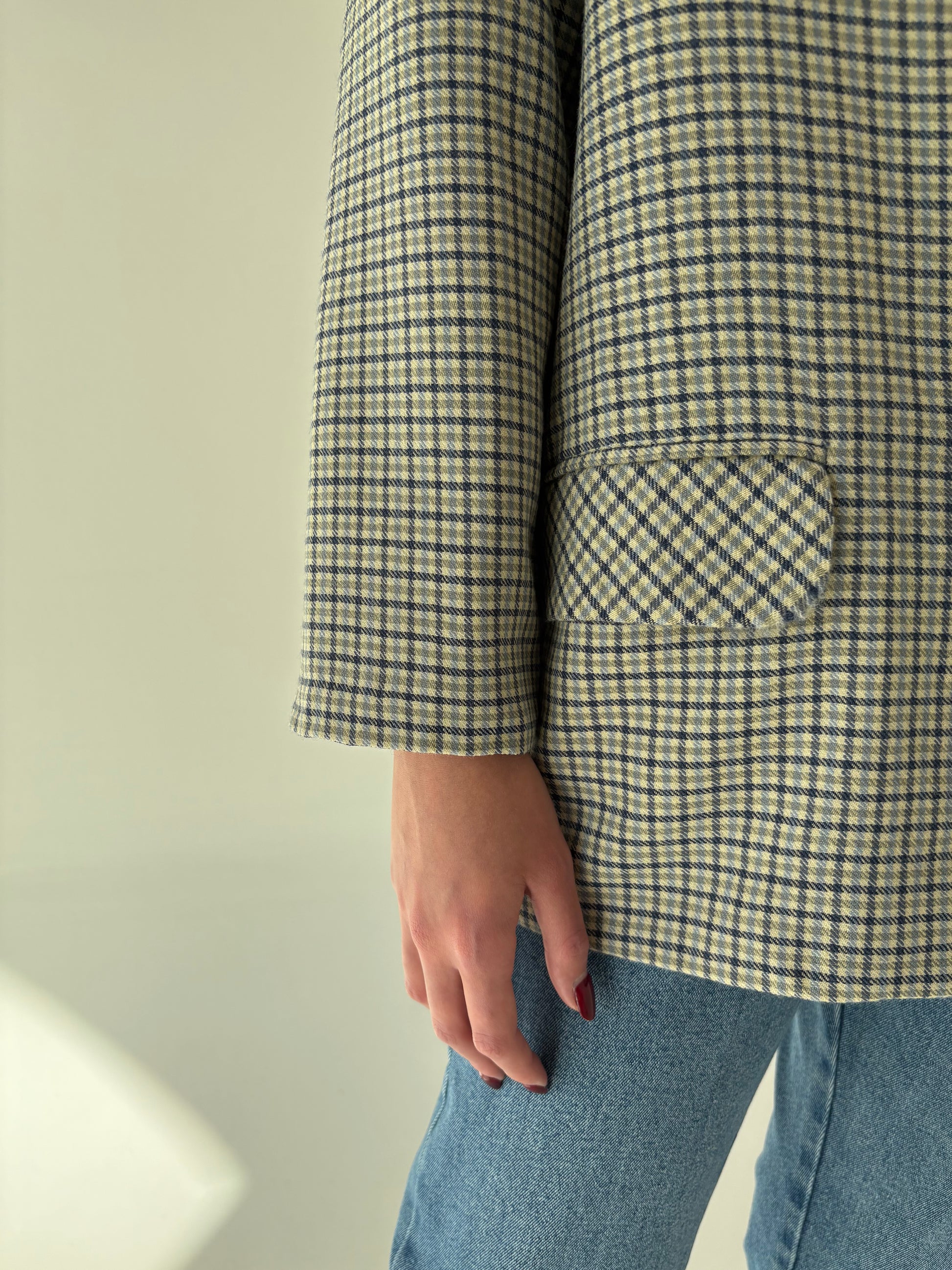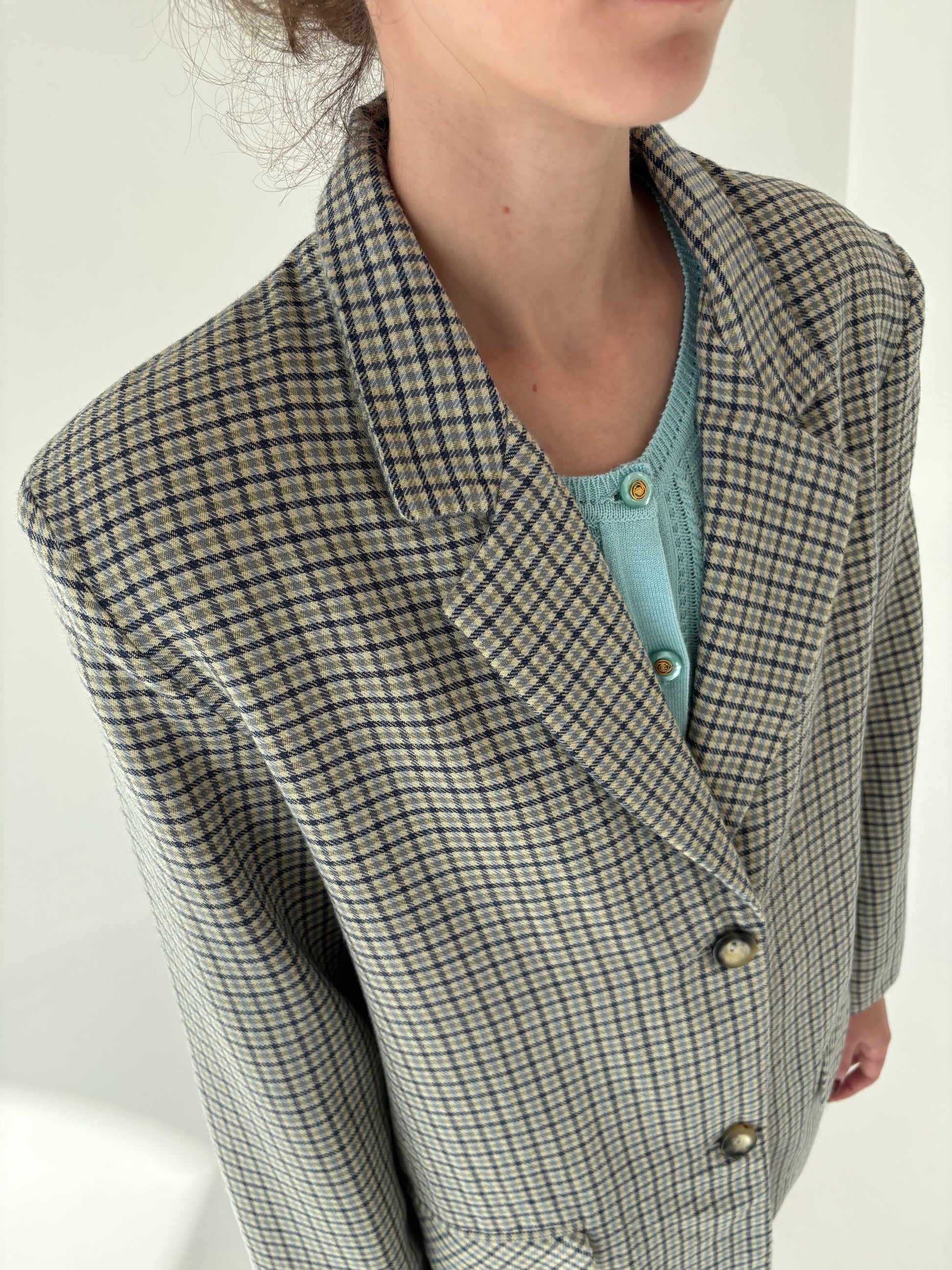 Sacou camel italian în carouri baby Blue și Navy din lana extrafina