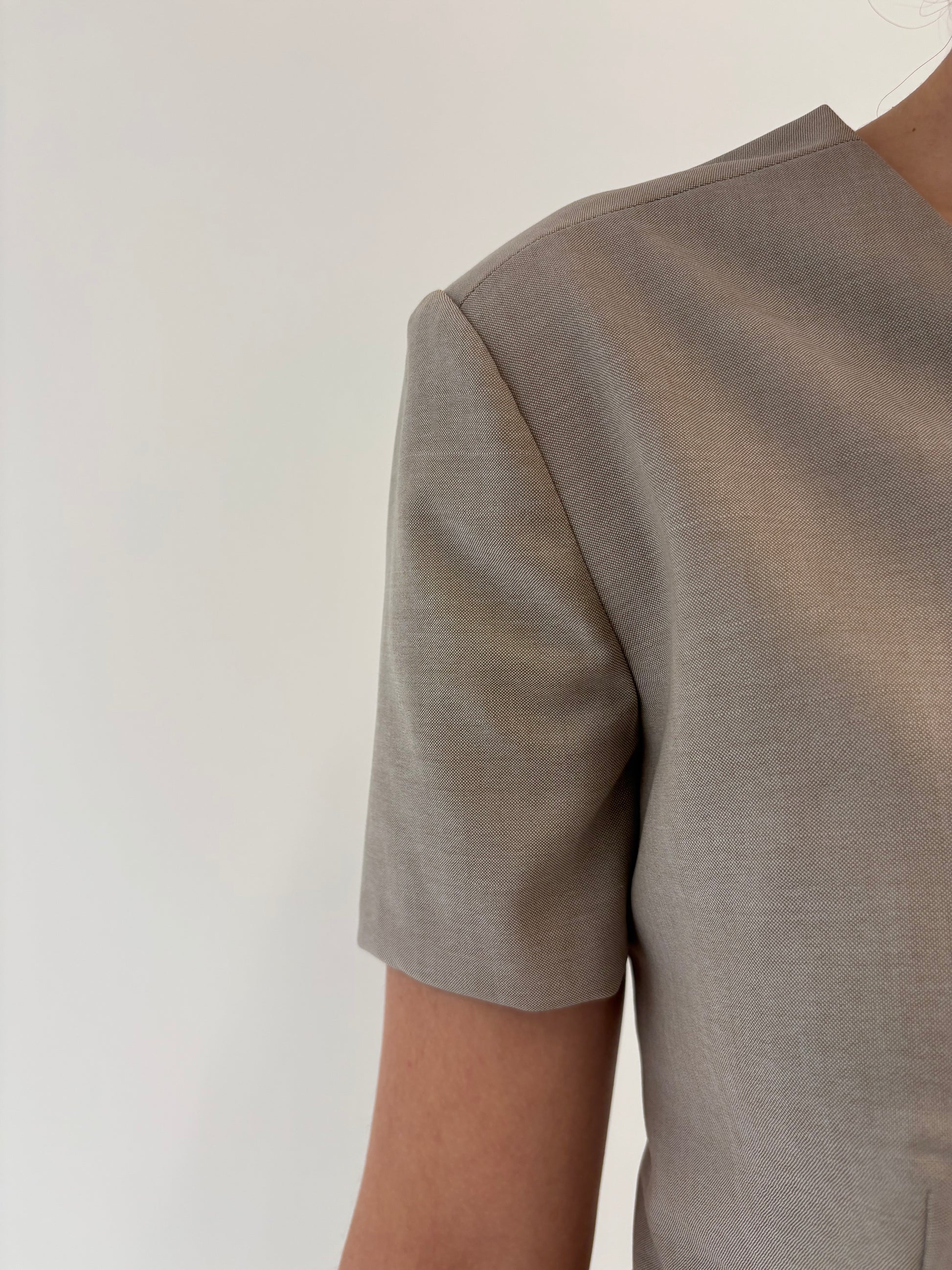 Rochie beige business Hugo Boss din lana extrafina cu fronseuri