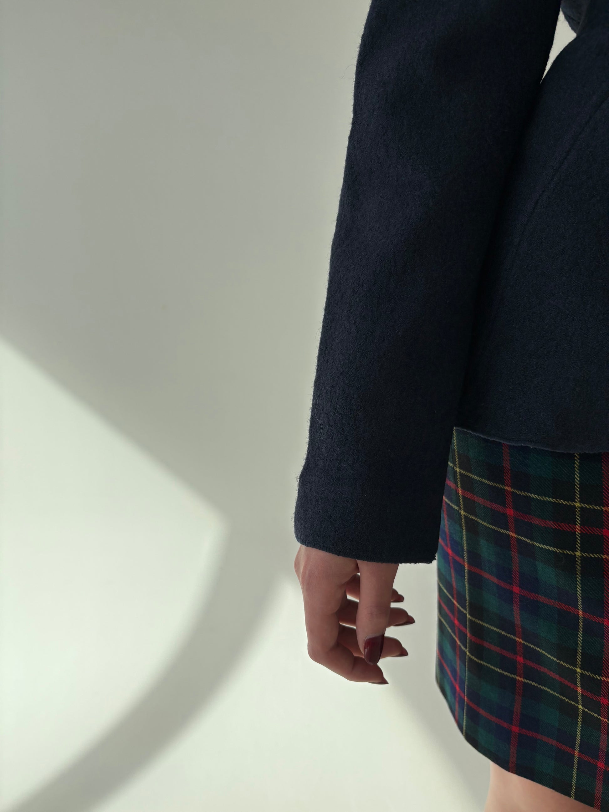 Sacou italian dark blue gray cu guler supradimensionat din lana de toamnă