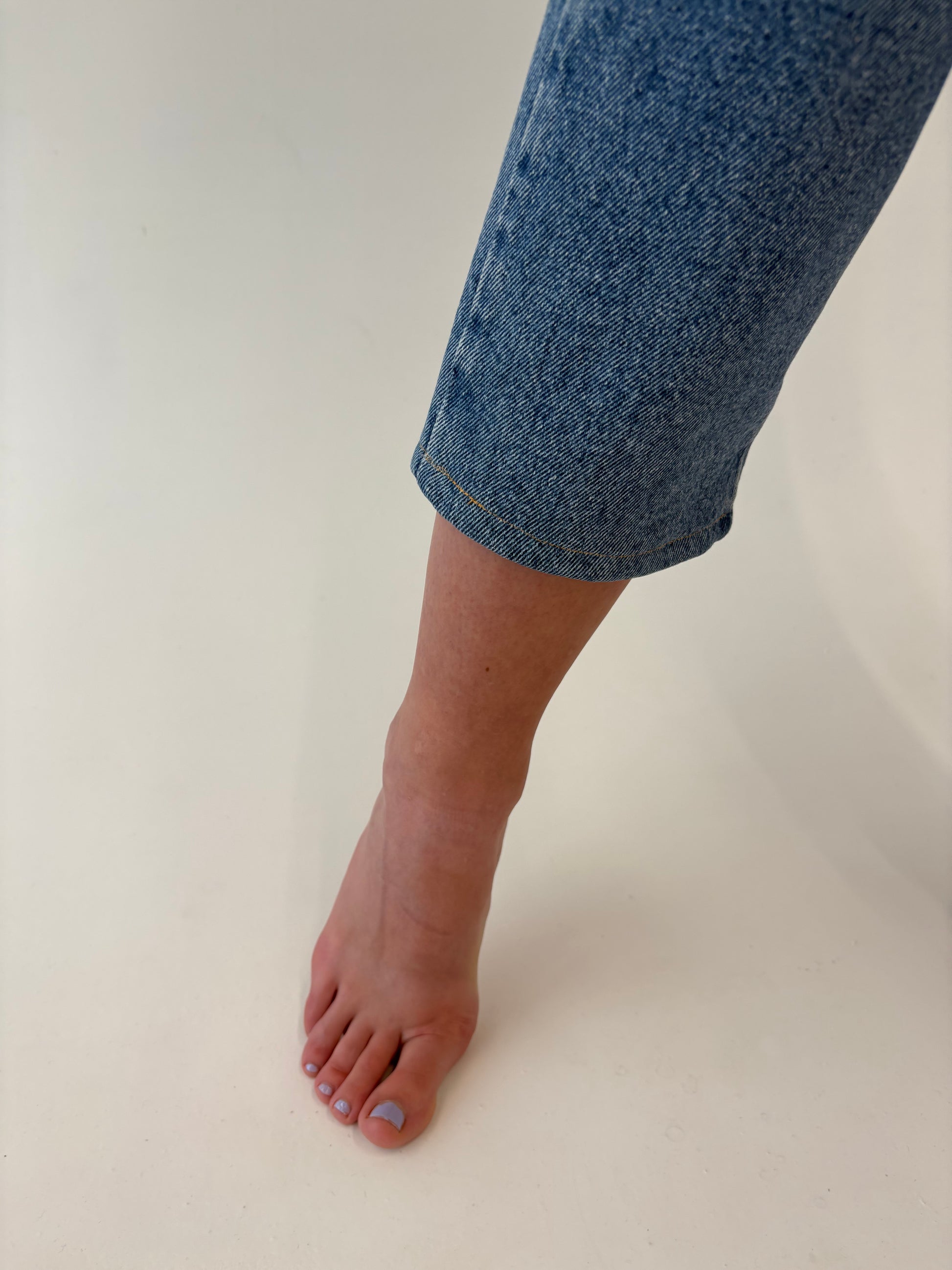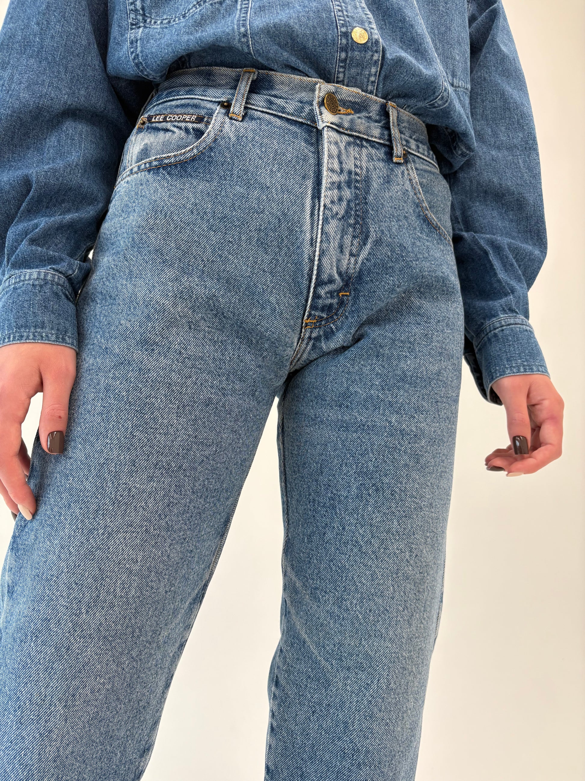 Jeans vintage premium petite clasic wash cu ținuta mom fit