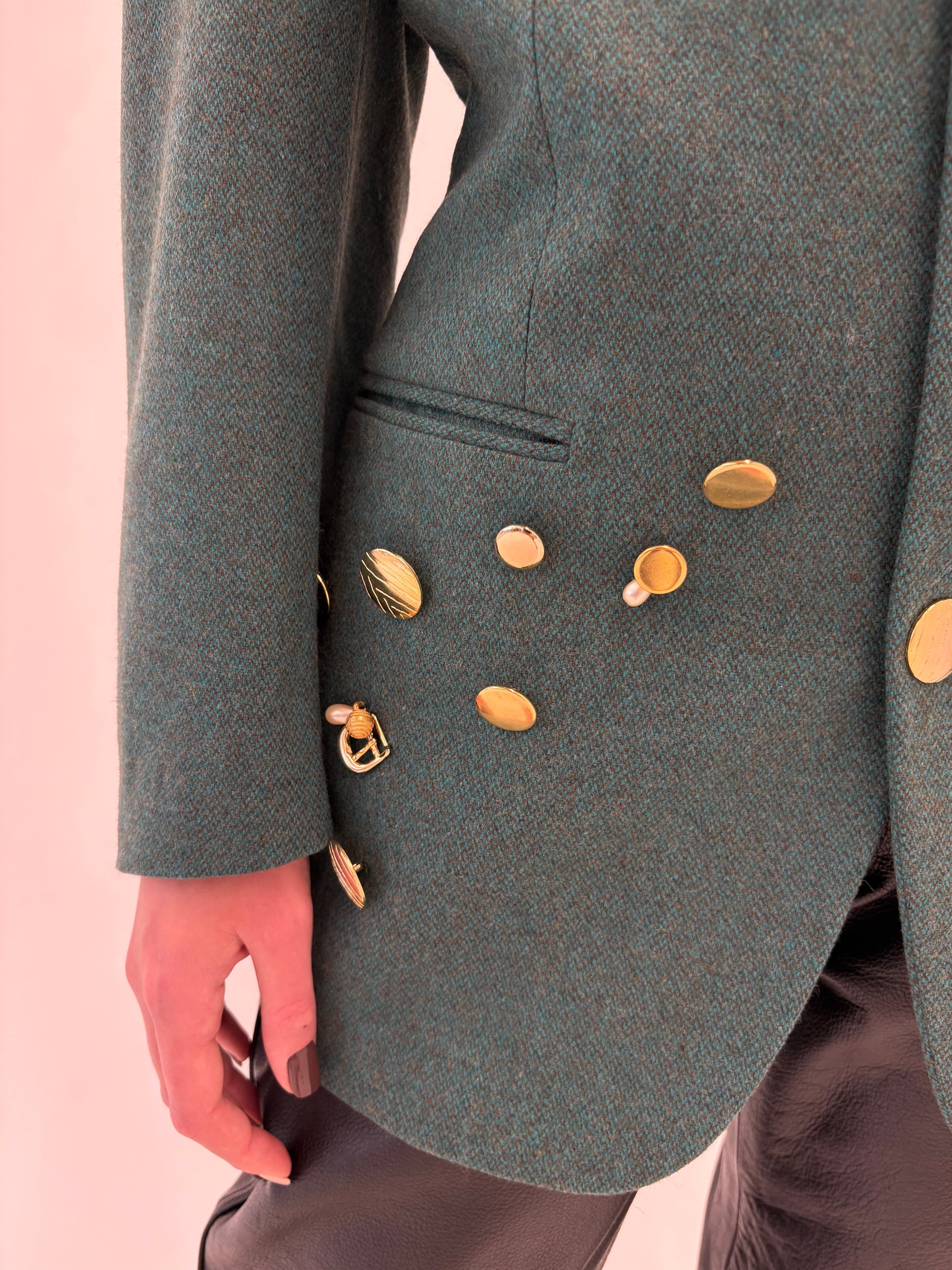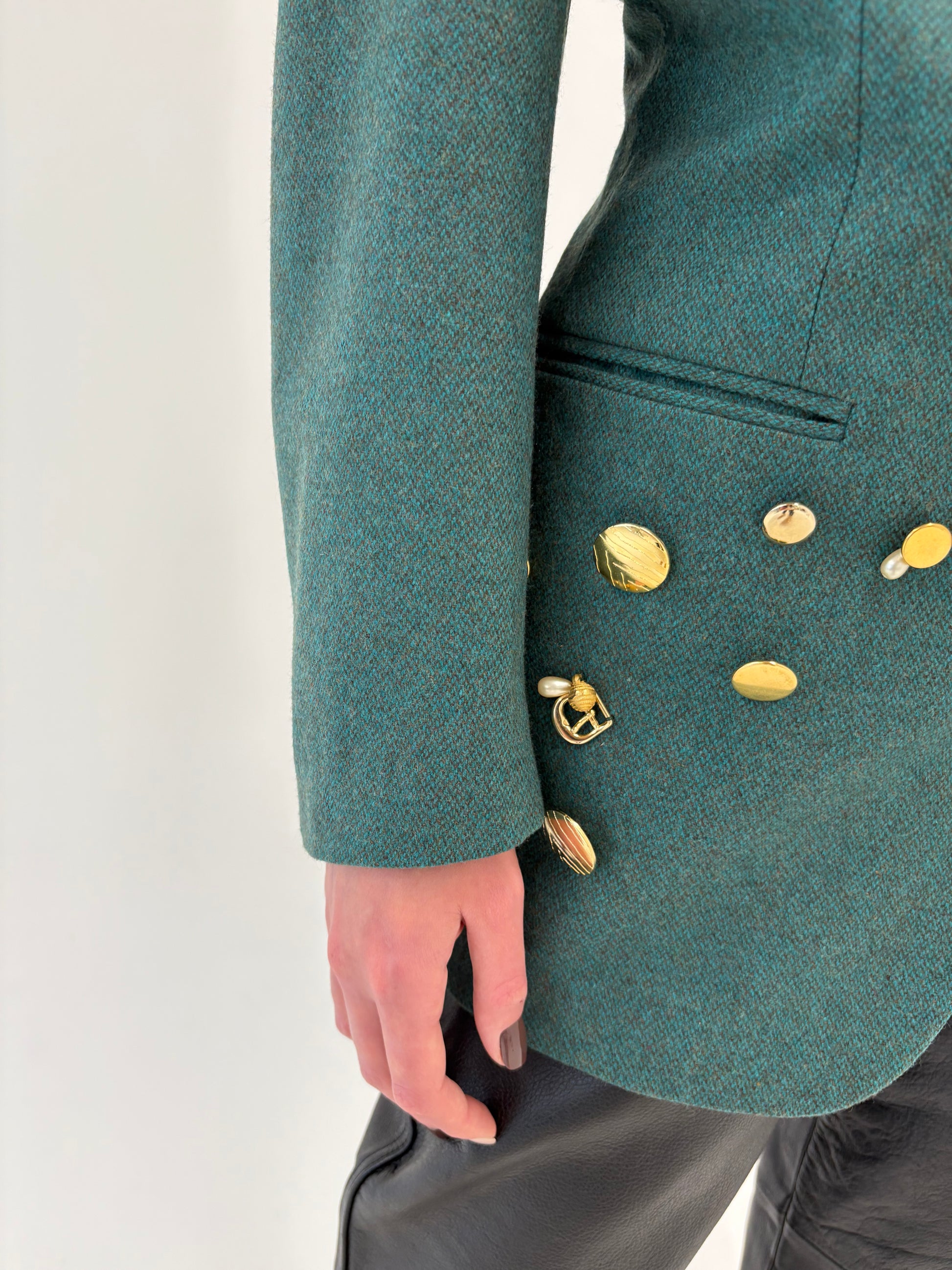 Sacou italian vintage din tweed de lana cu aplicații manuale aurii