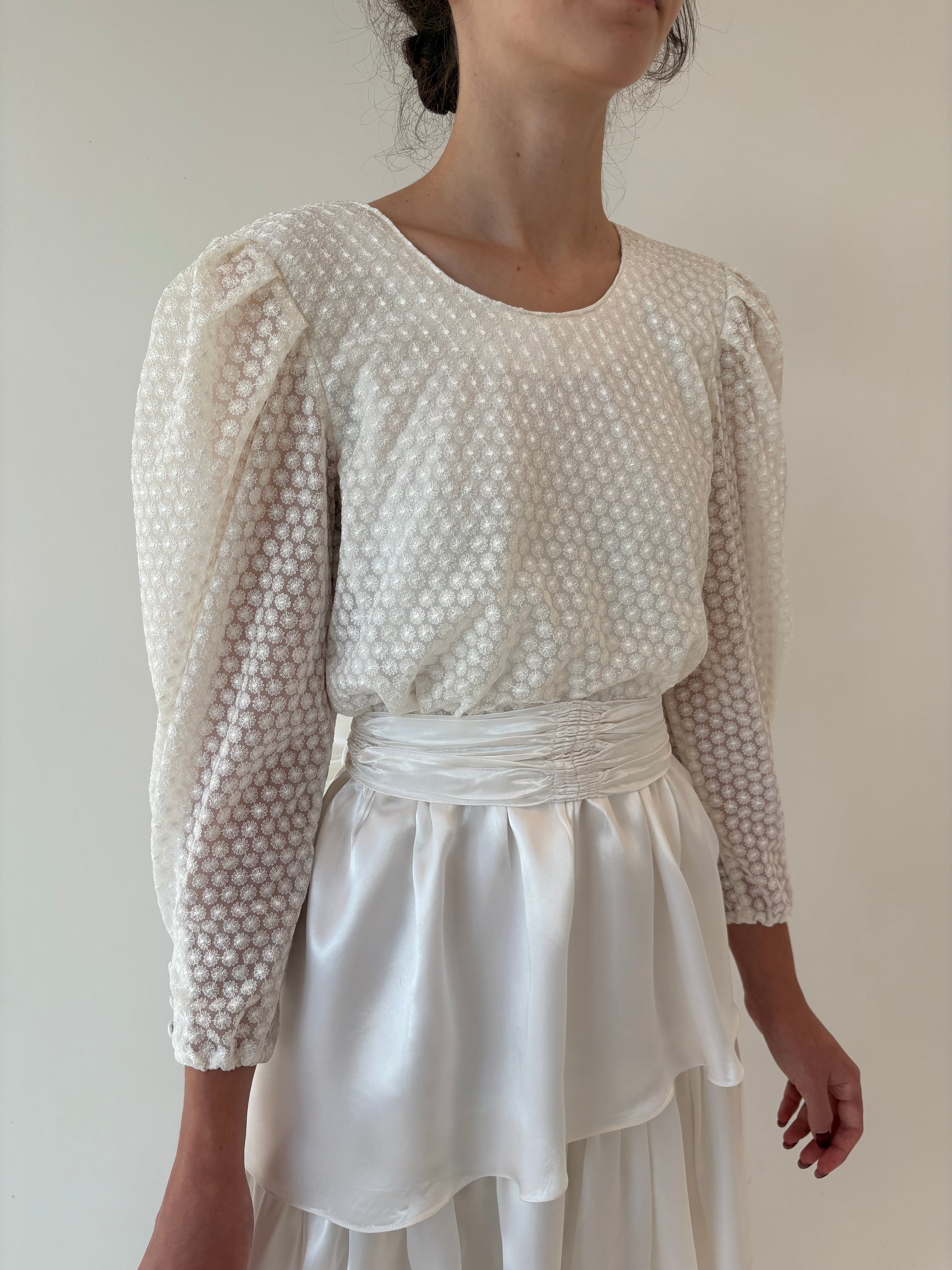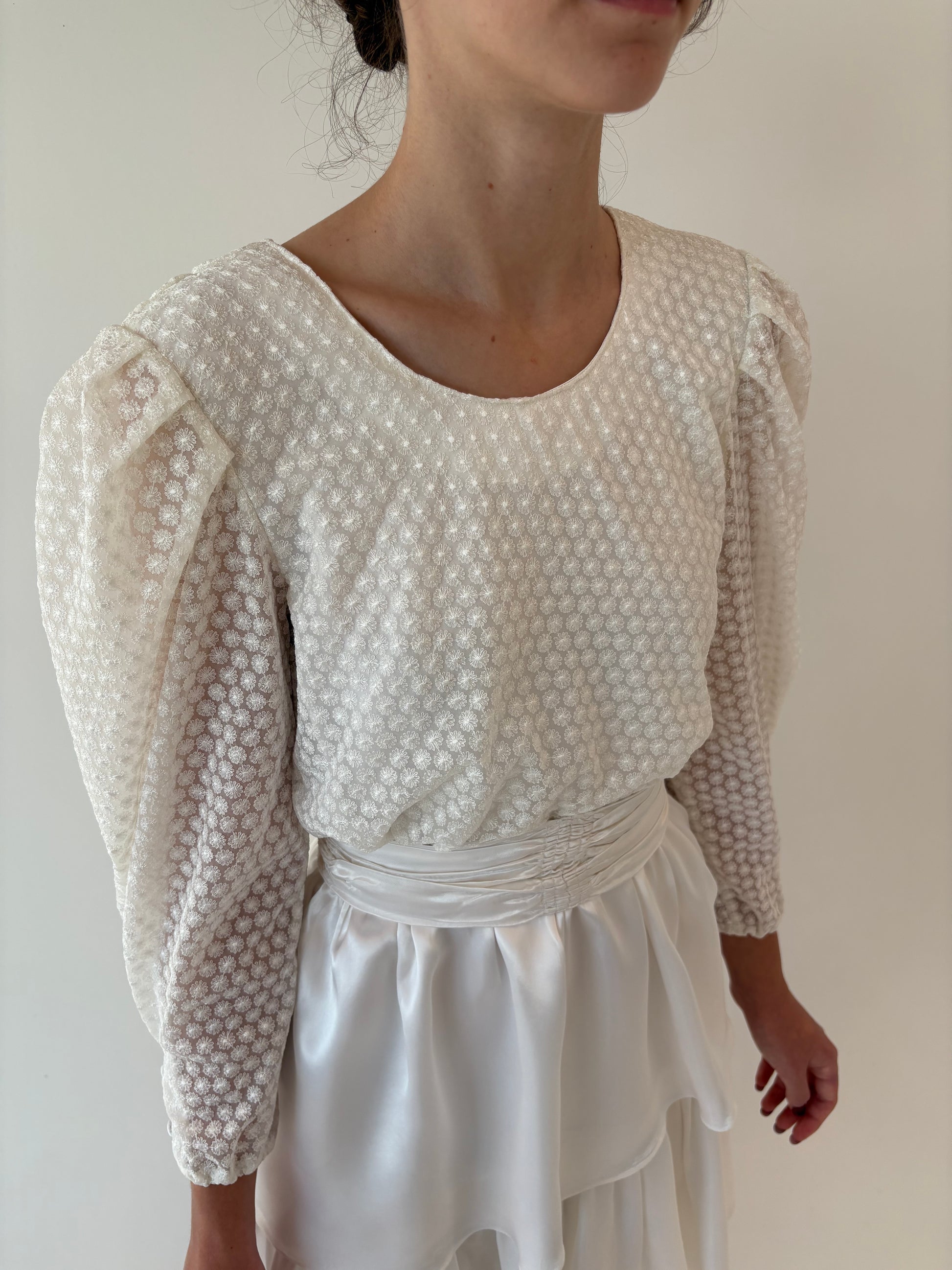 – mânecile bufante cu umeri accentuați și încrețire sunt tipice pentru anii 1980