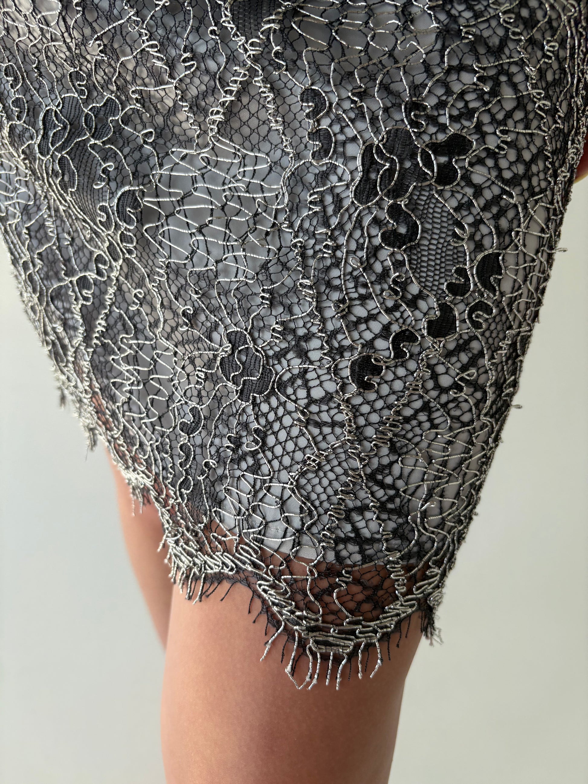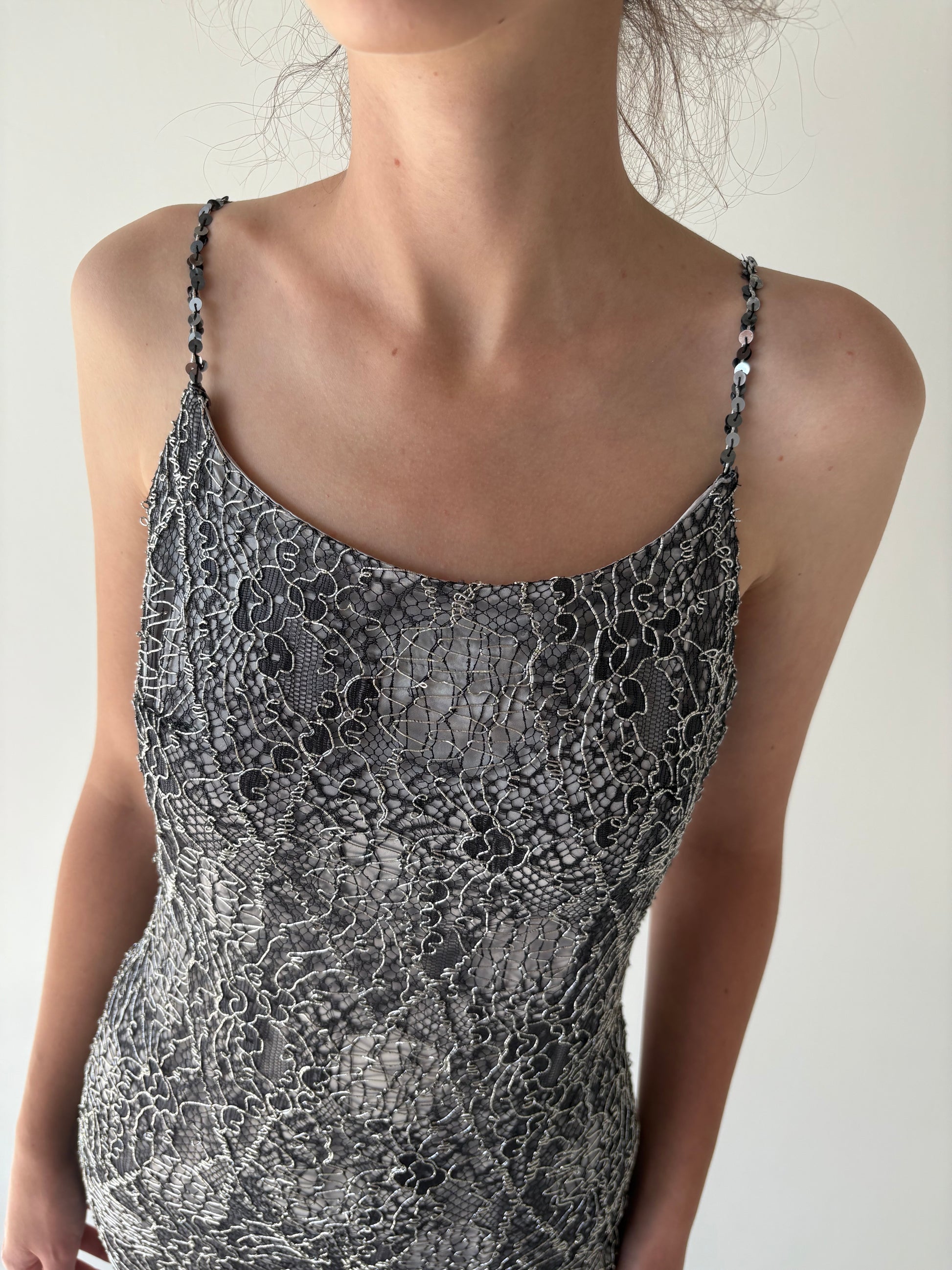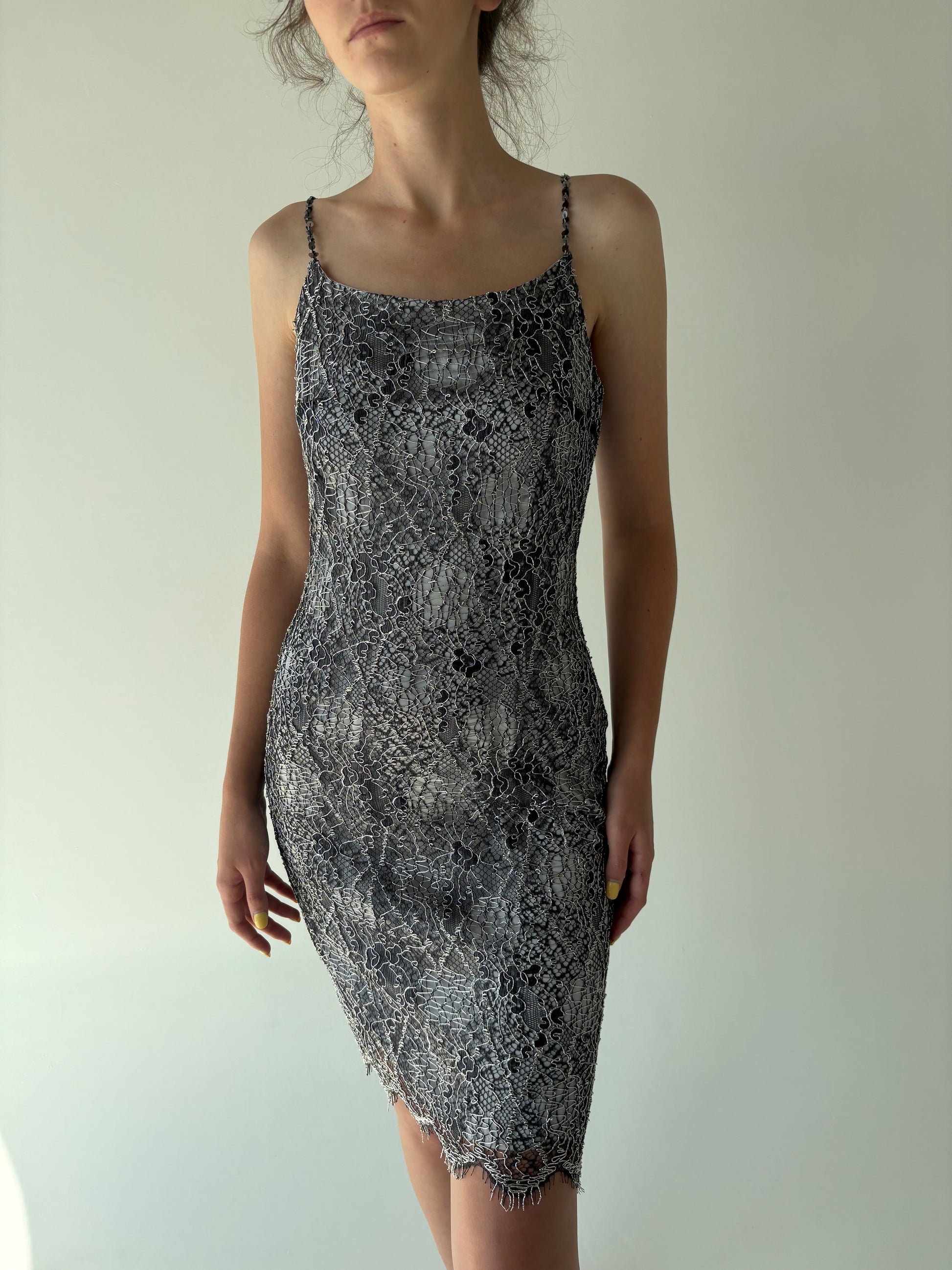 Rochie vintage din dantelă silver spectaculoasă anii 90 de cocktail