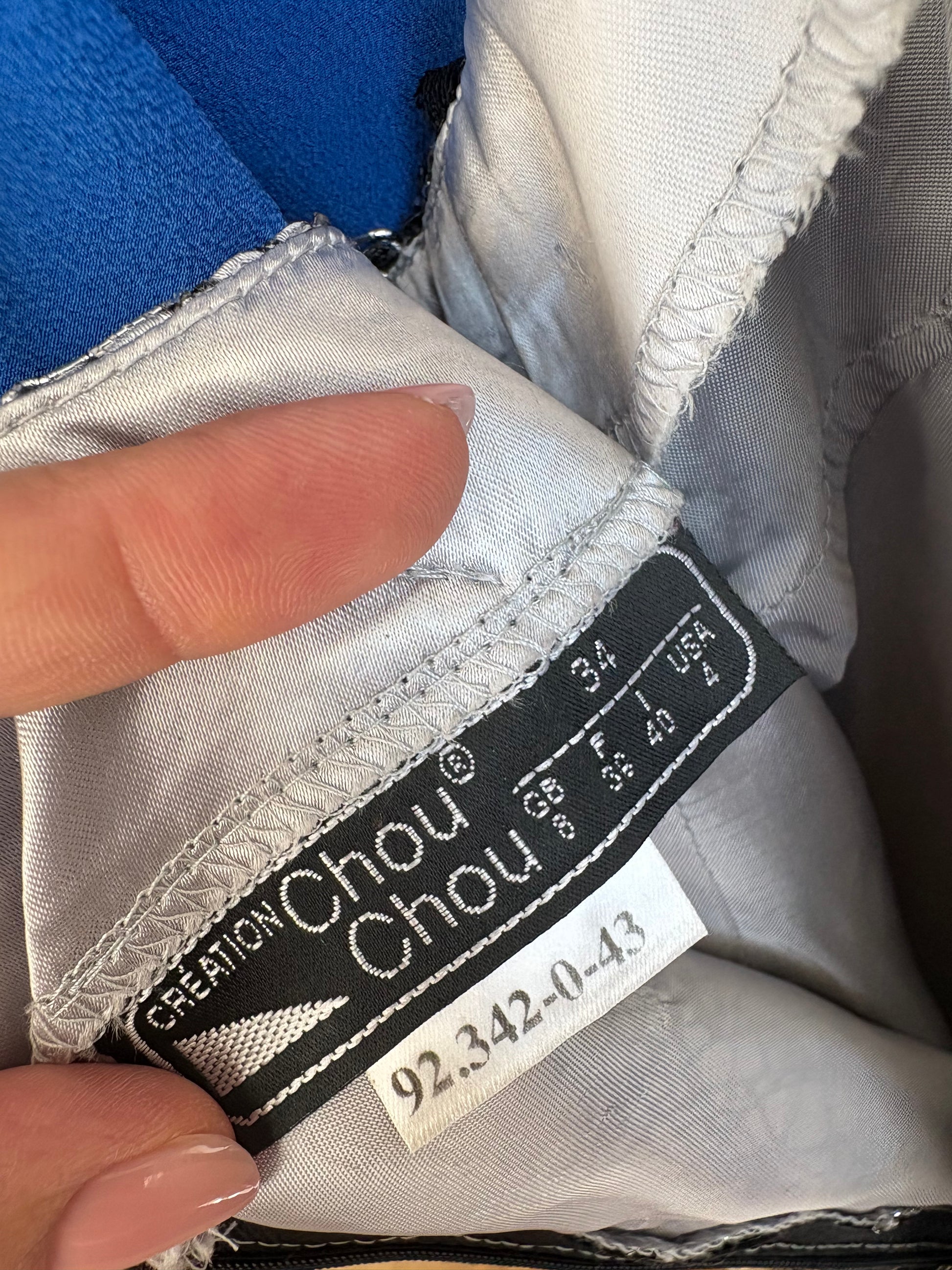 Création Chou Chou e specifică acelei perioade și apare frecvent pe rochiile de ocazie sau cocktail. Croiul slip dress, scurt, pe corp, cu bretele subțiri este foarte reprezentativ pentru moda anilor ’90.