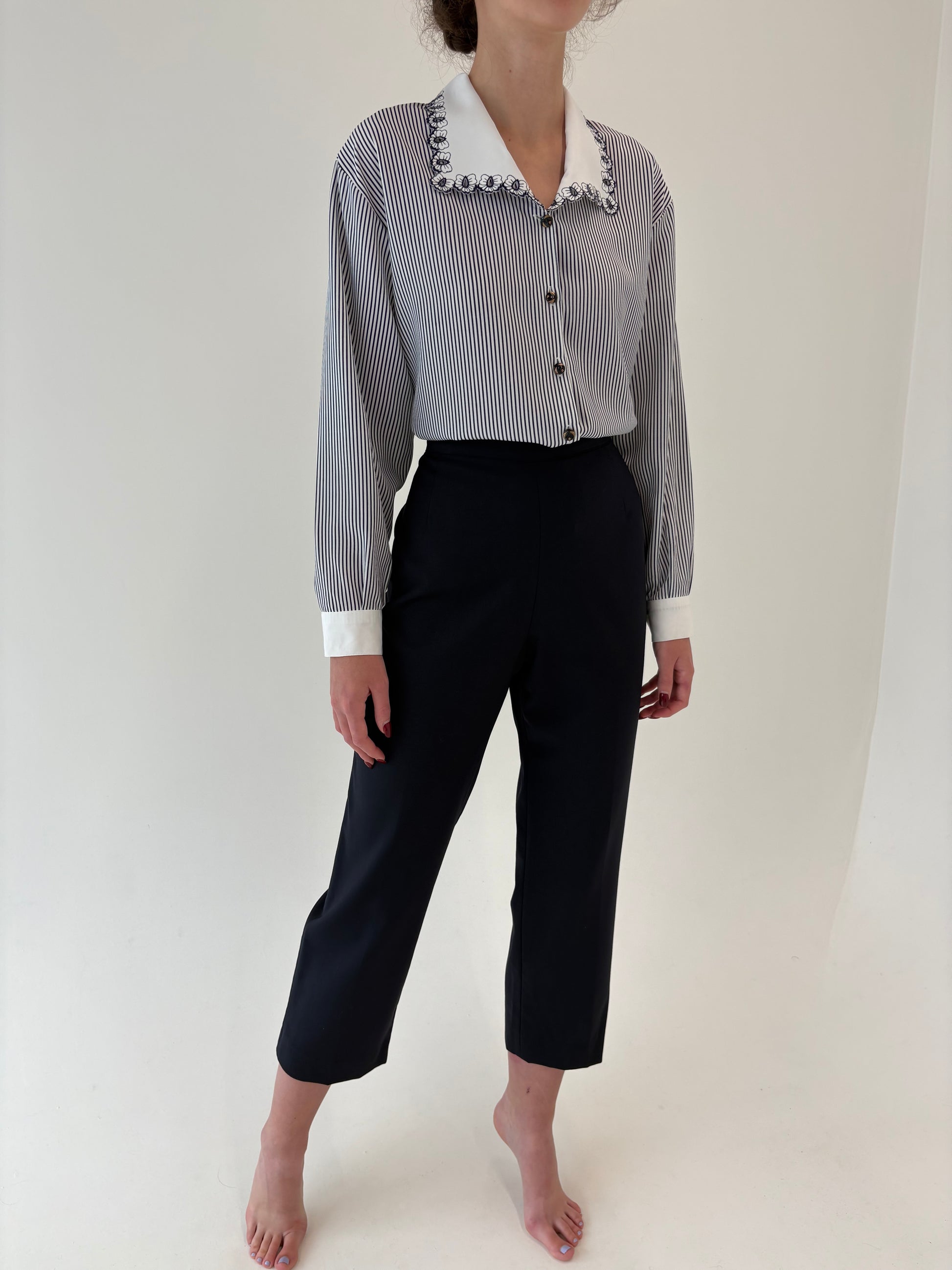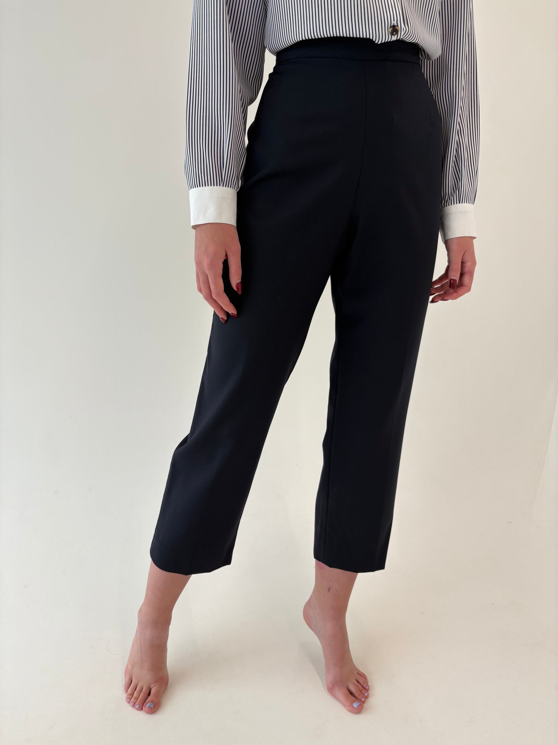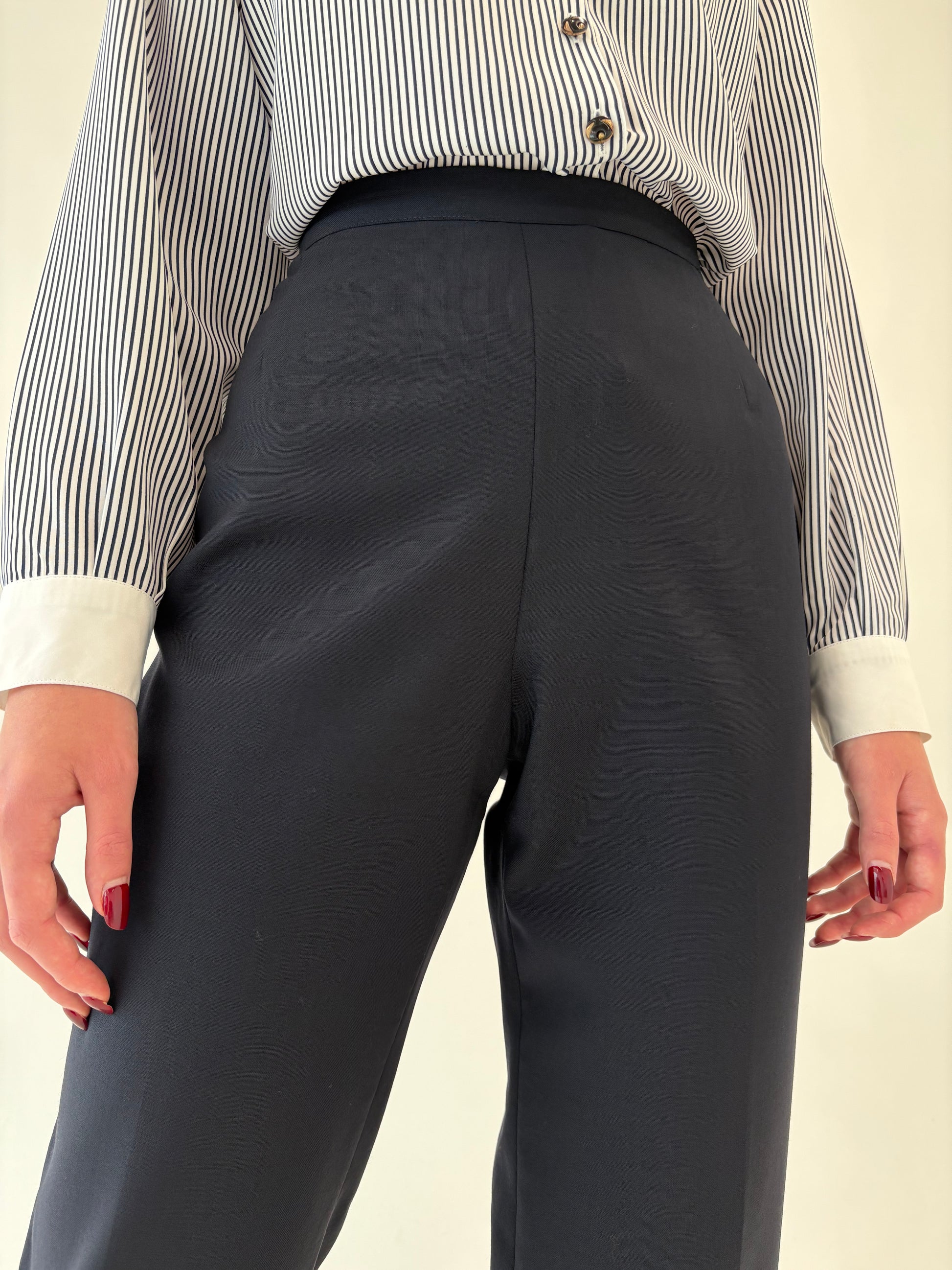 Pantaloni tigareta cu talie ultra înaltă din lana pura certificată extrafina