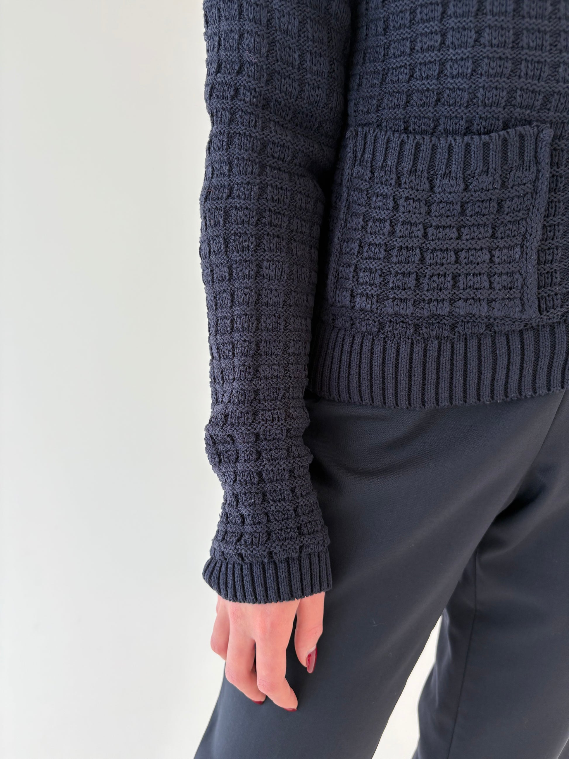 Jacheta Navy cu nasturi aurii din tricot gros de bumbac de gramaj mare