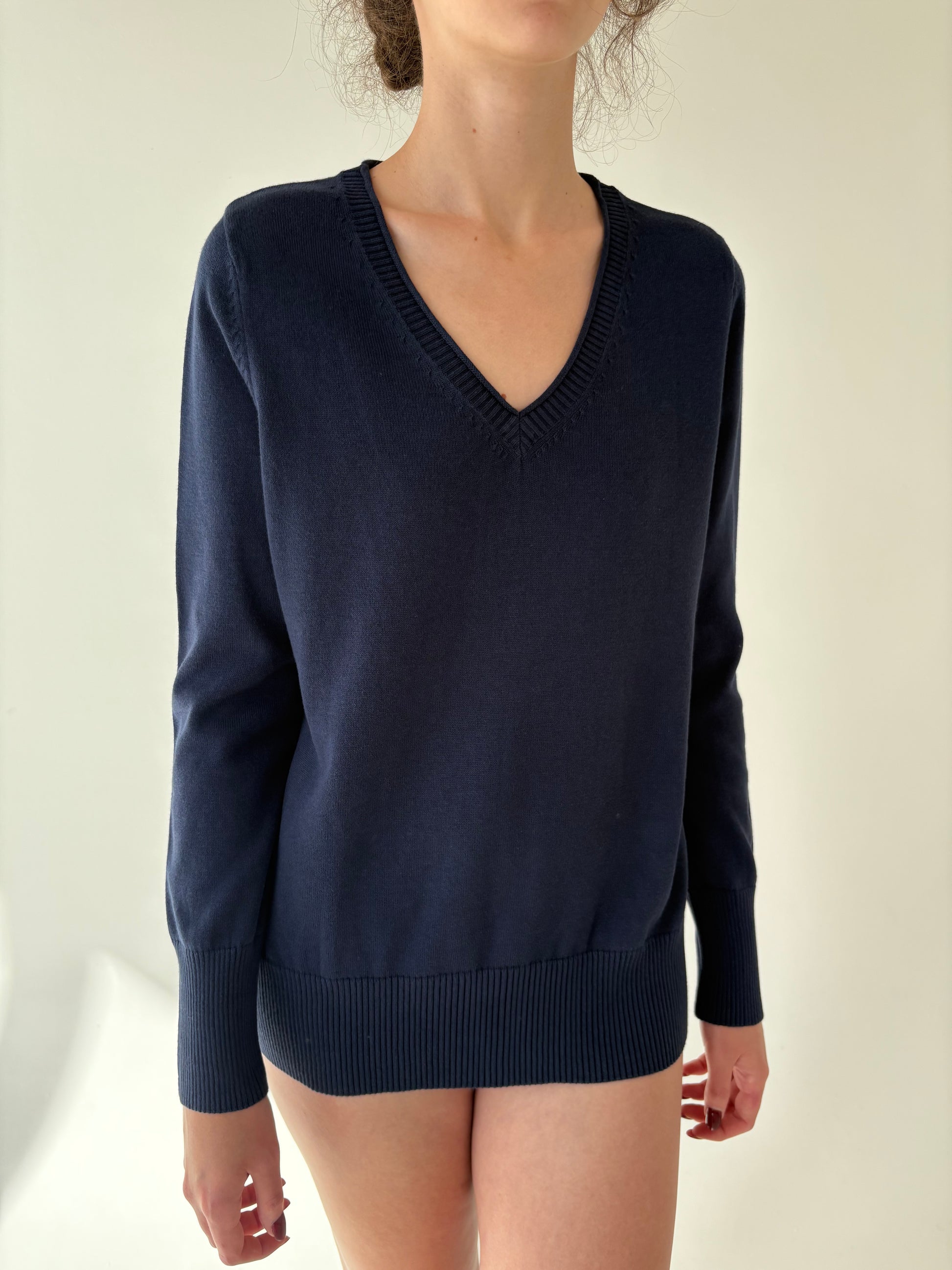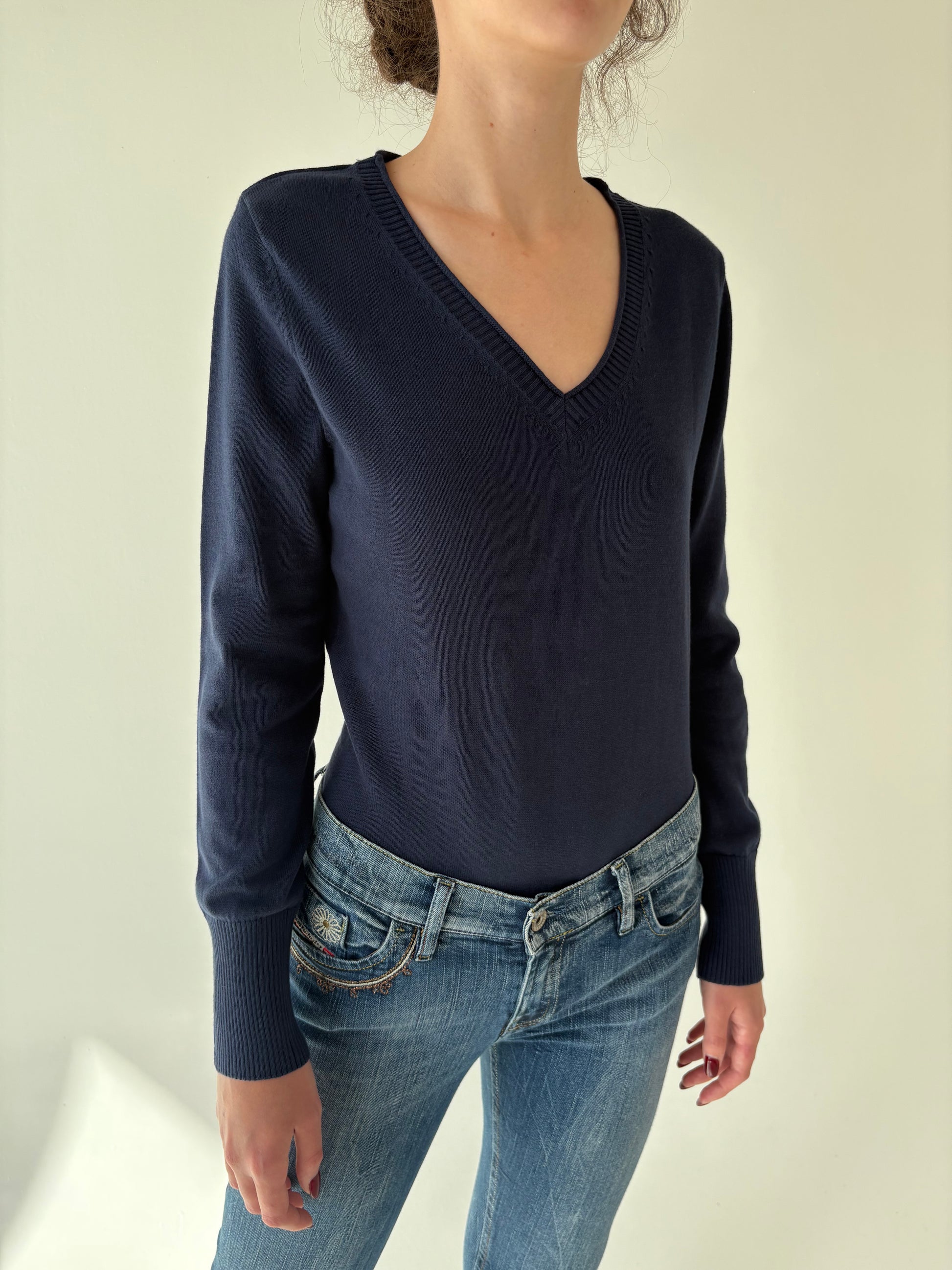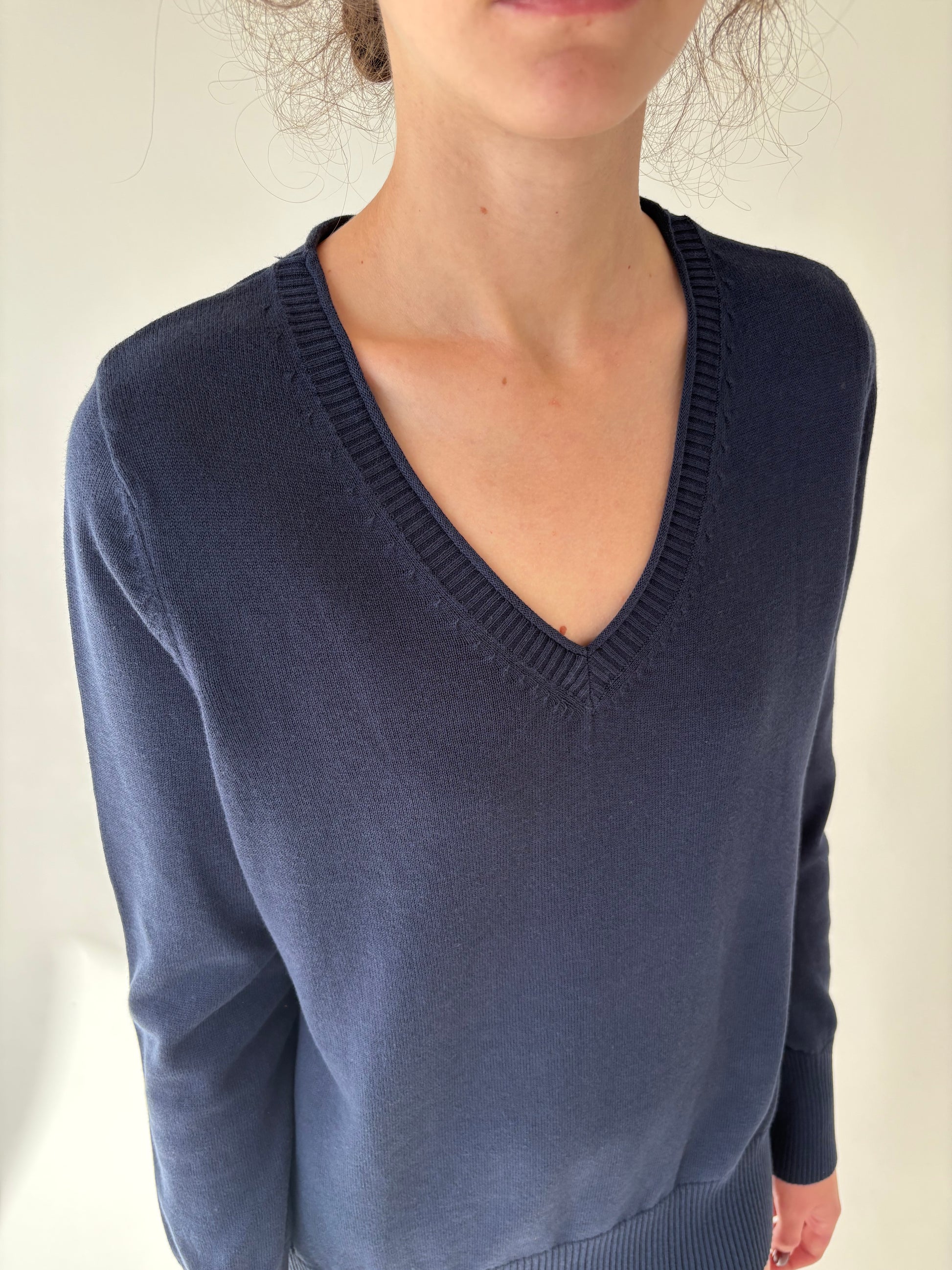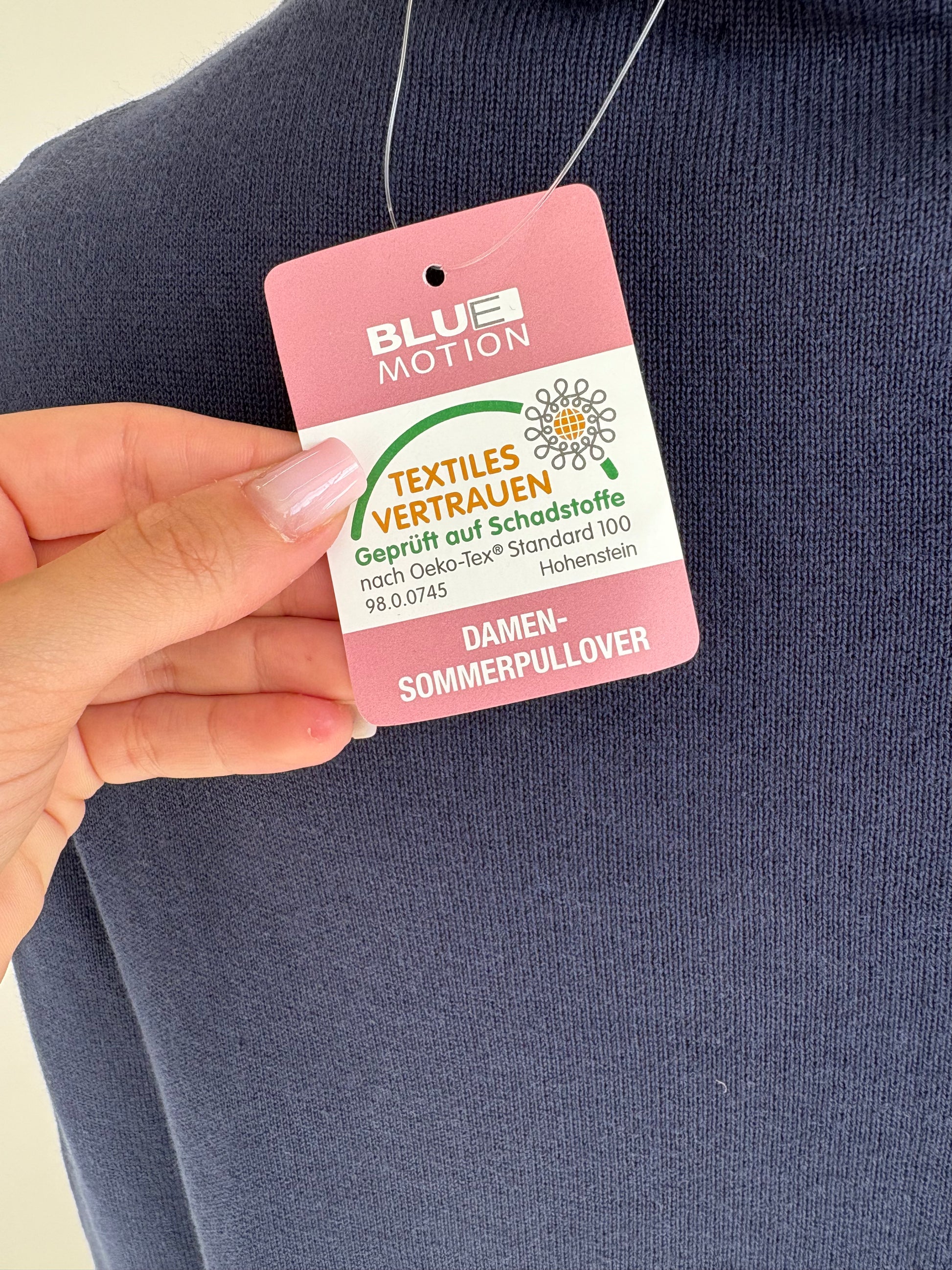 Puloveras în anchior Jeans blue din bumbac cu certificare Oeko-Tex® Standard 100