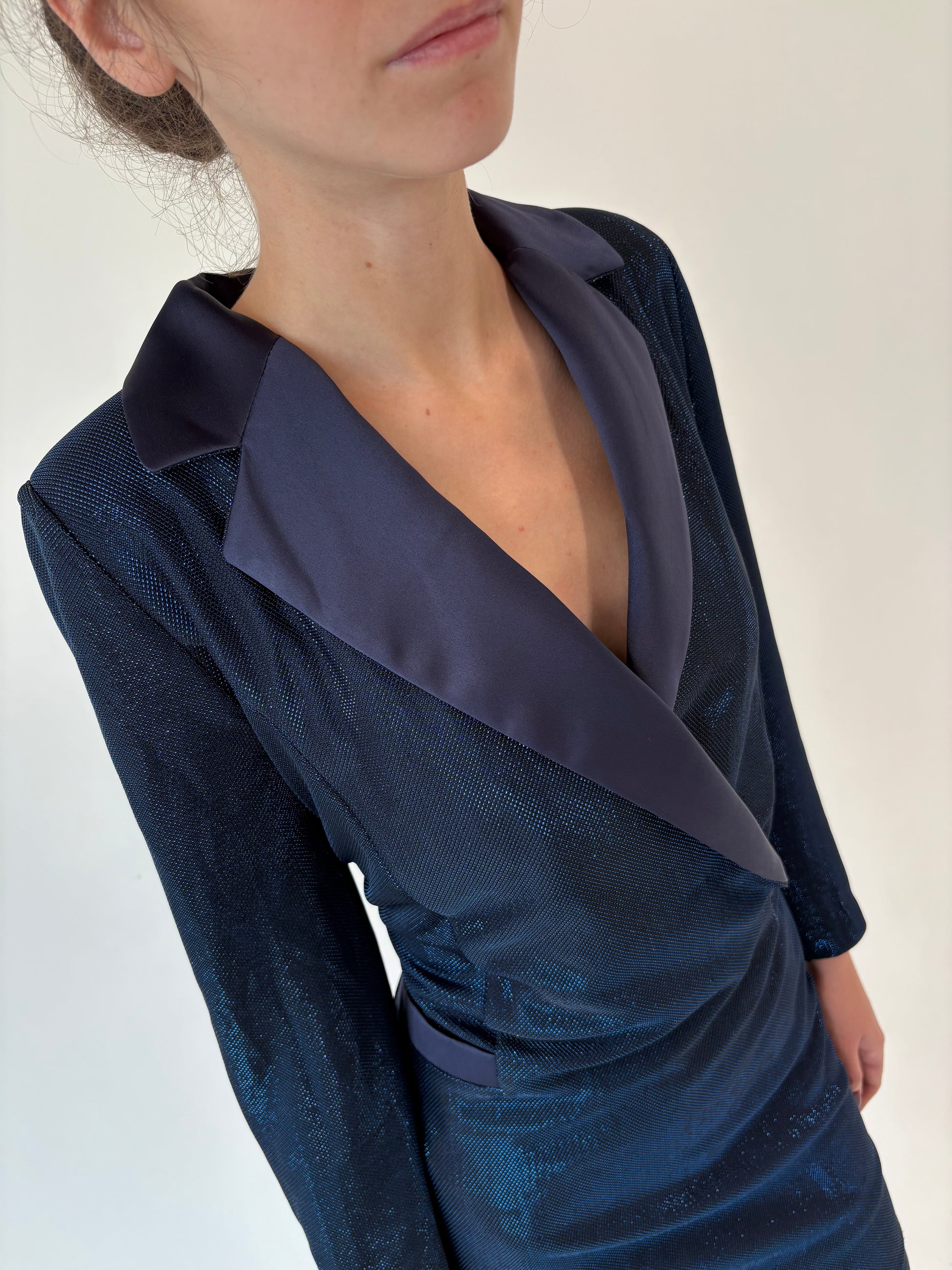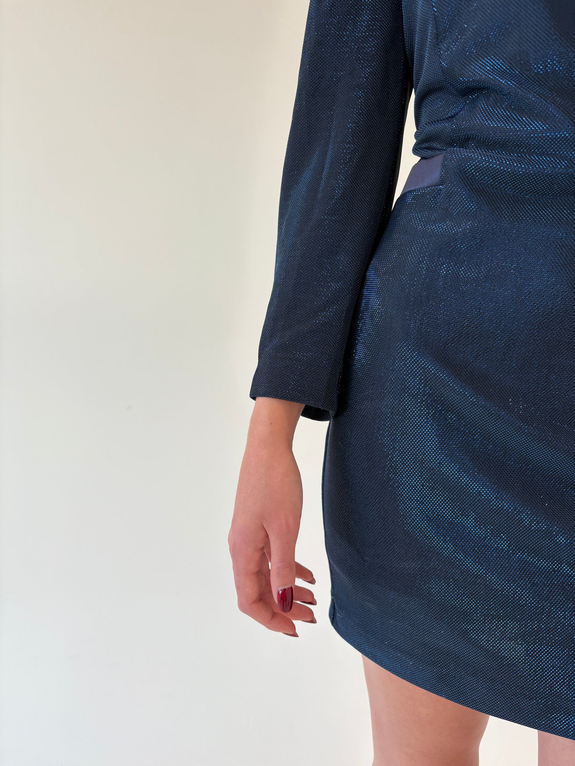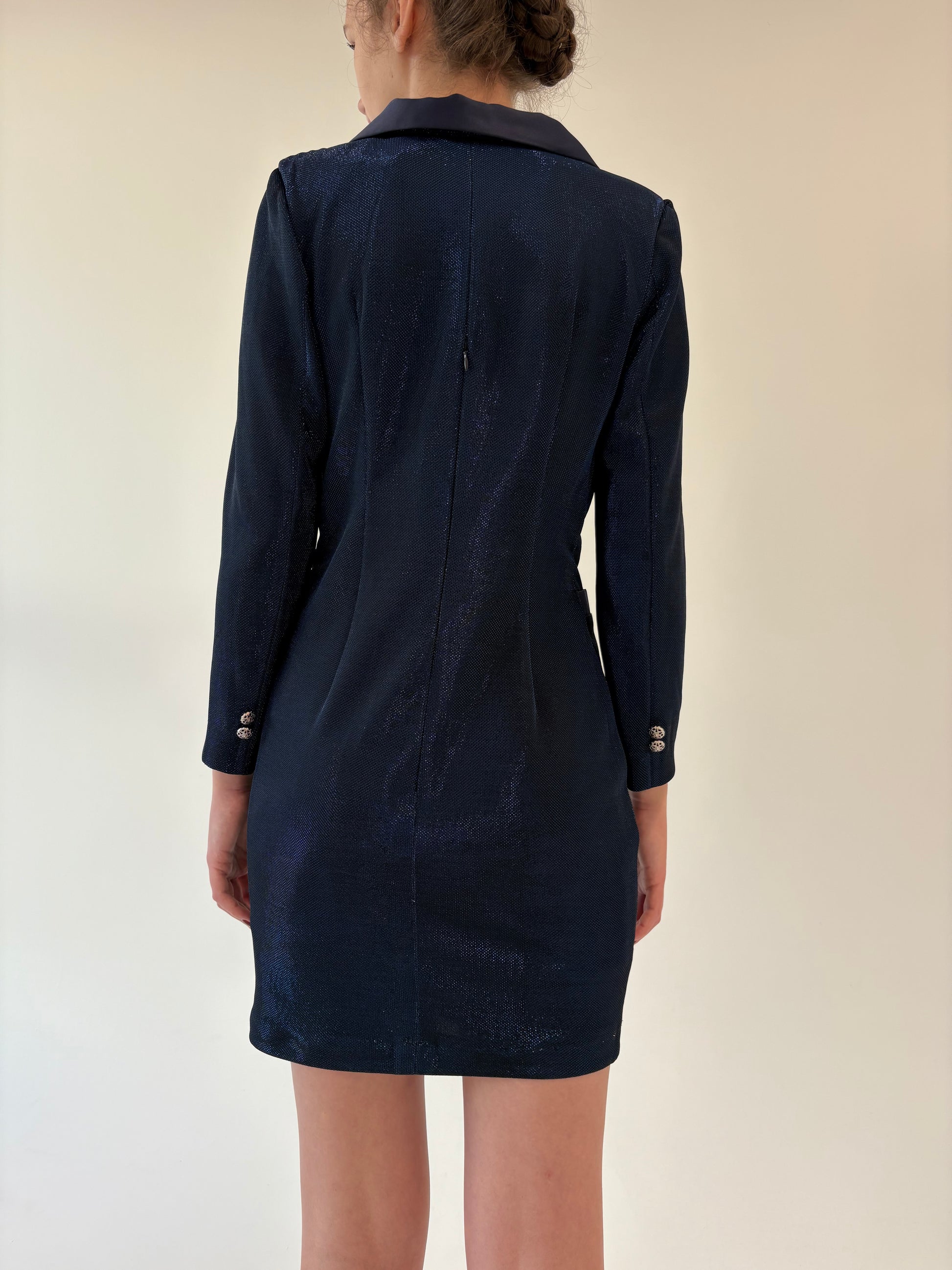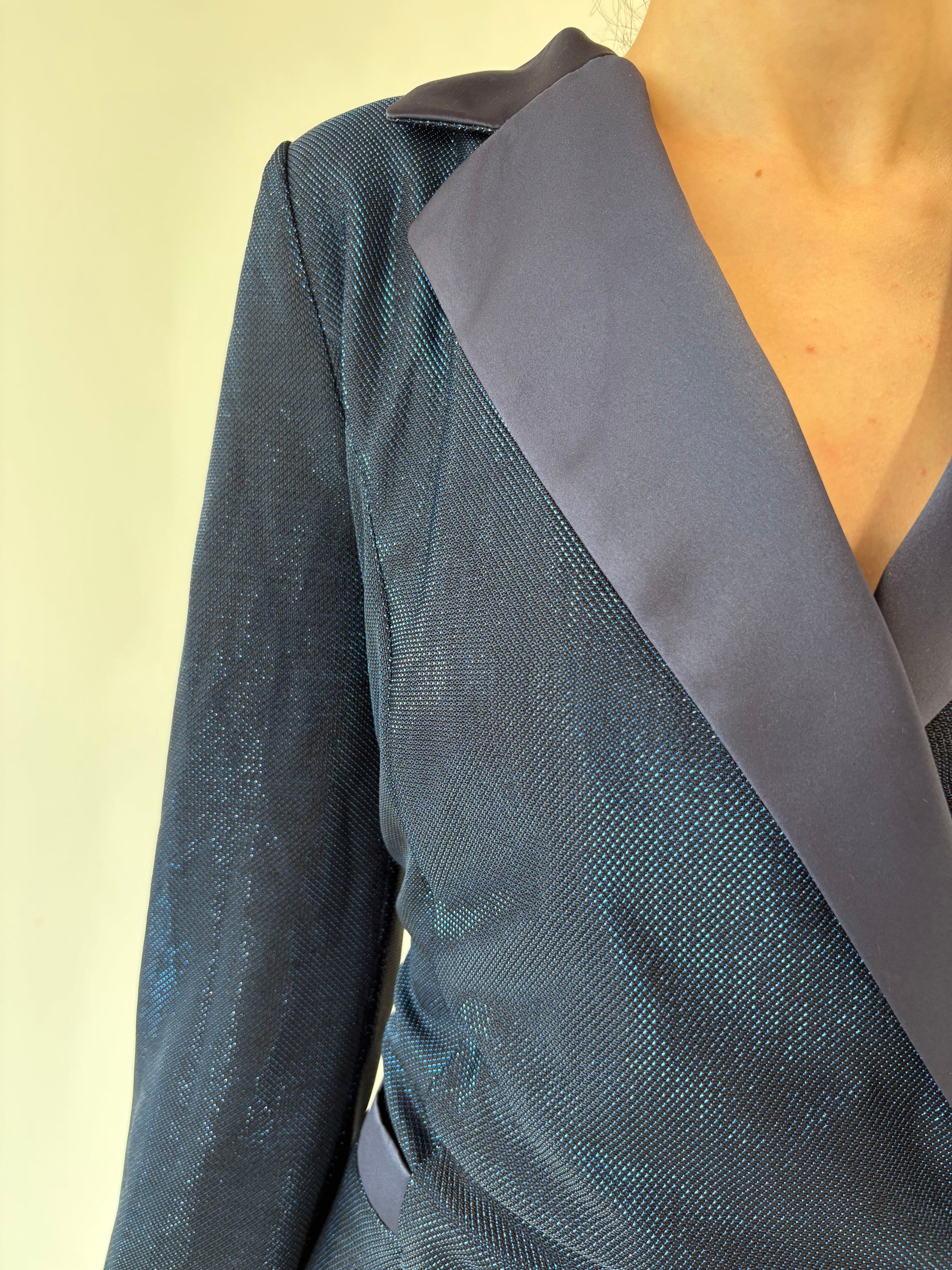 Rochie de brand luxury Luisa Cerano tip sacou cu efect perlat albastru
