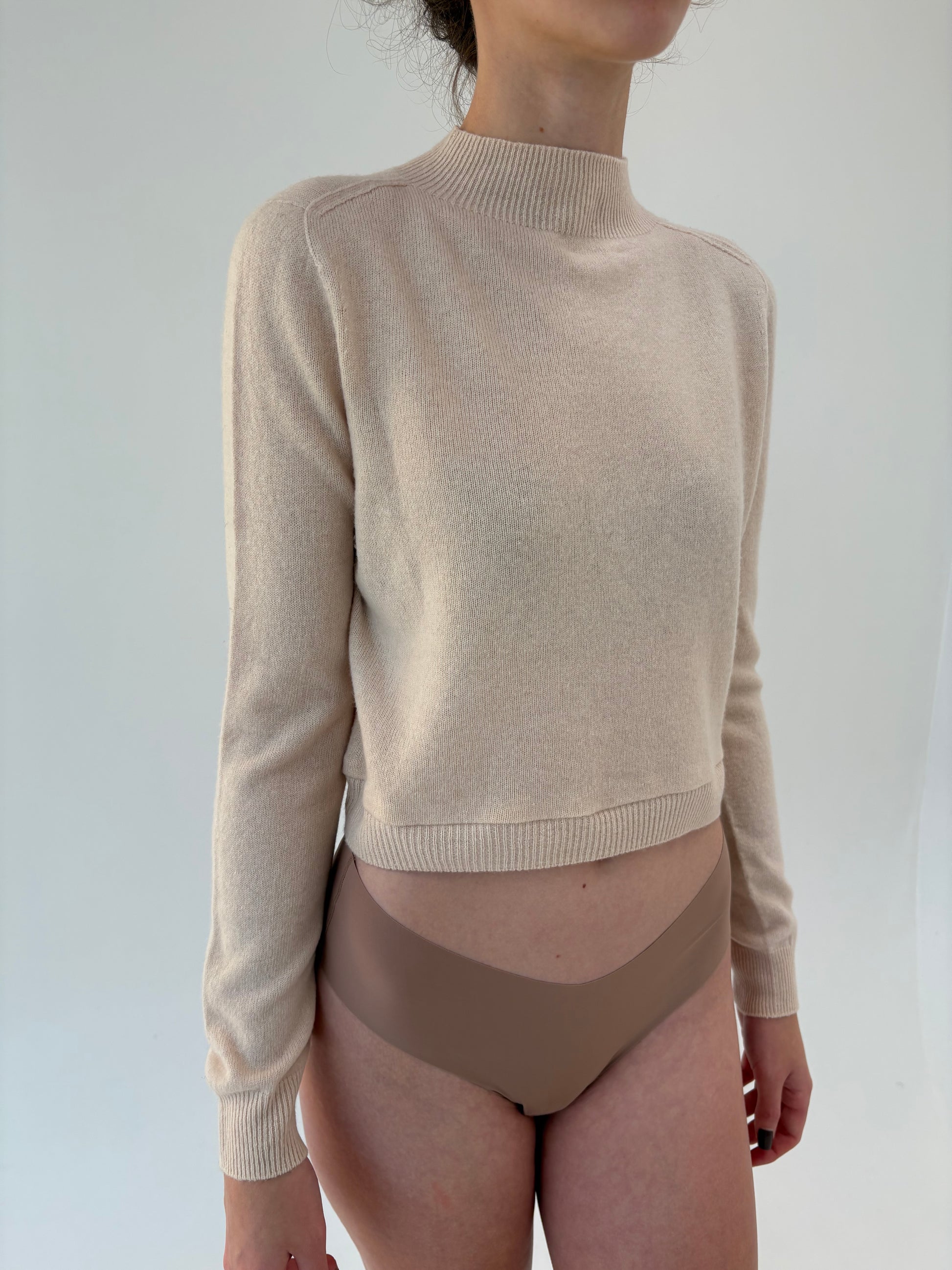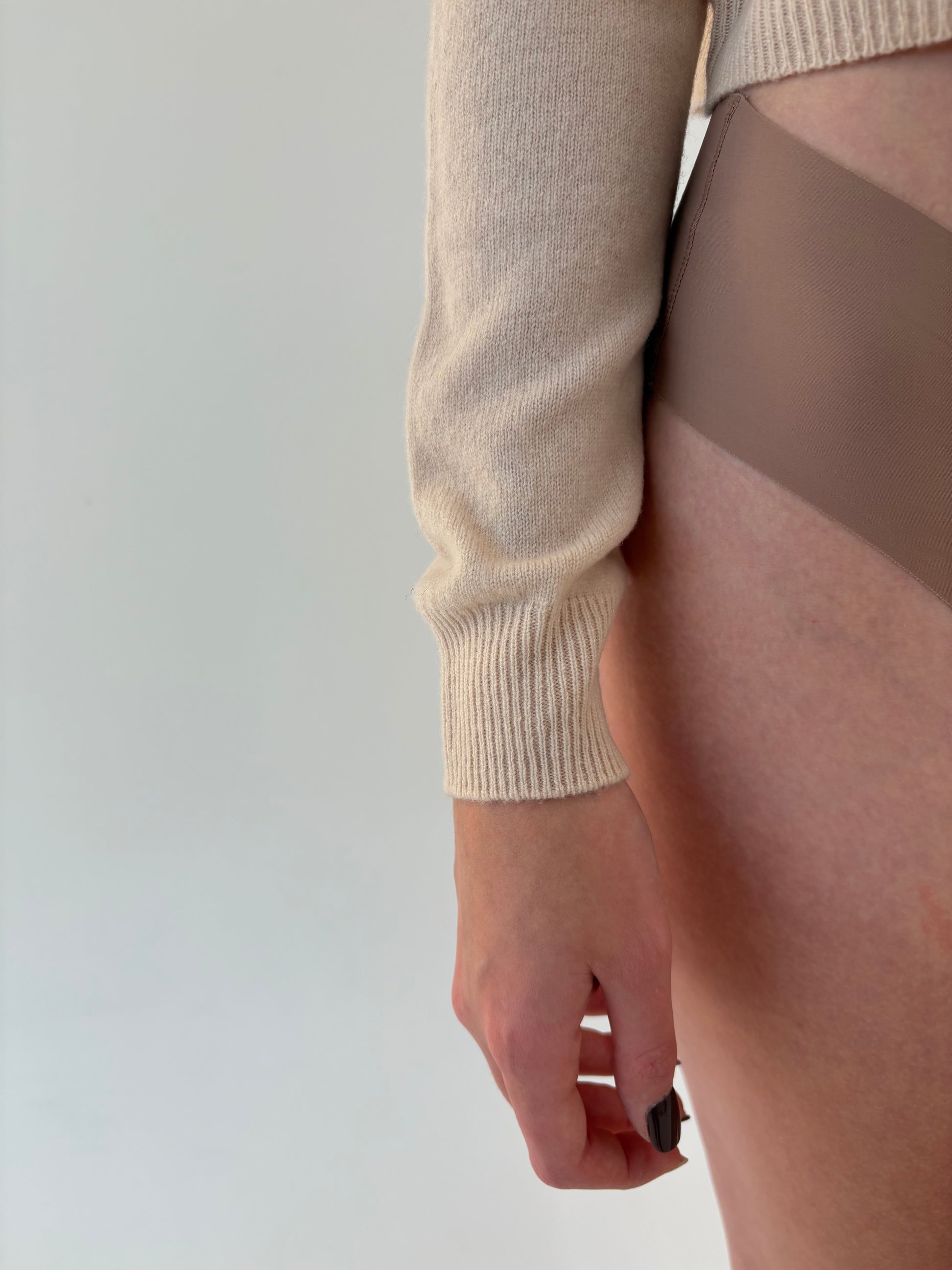 Maleta butter nude din cașmir și lana merino extrafina