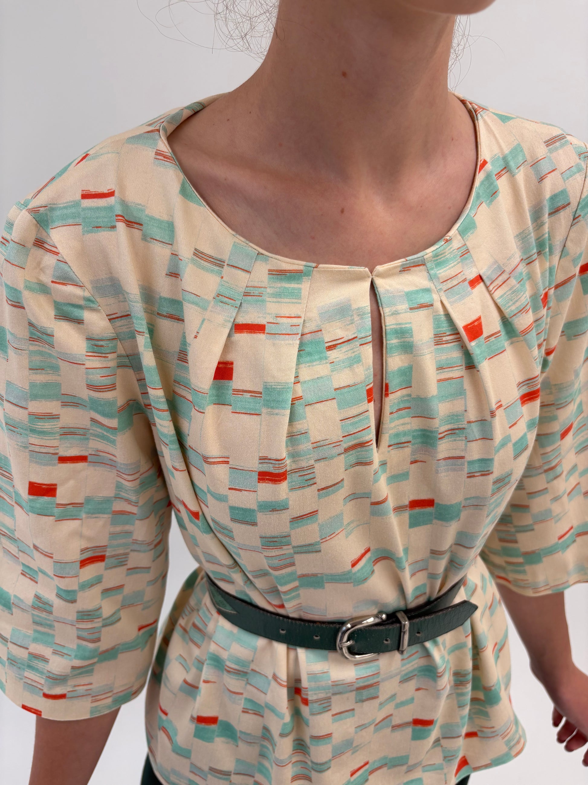 Bust amplu din croi, trebuie să rămână drapat, recomandăm la mărimea M-cu pensele întinse bust de 108