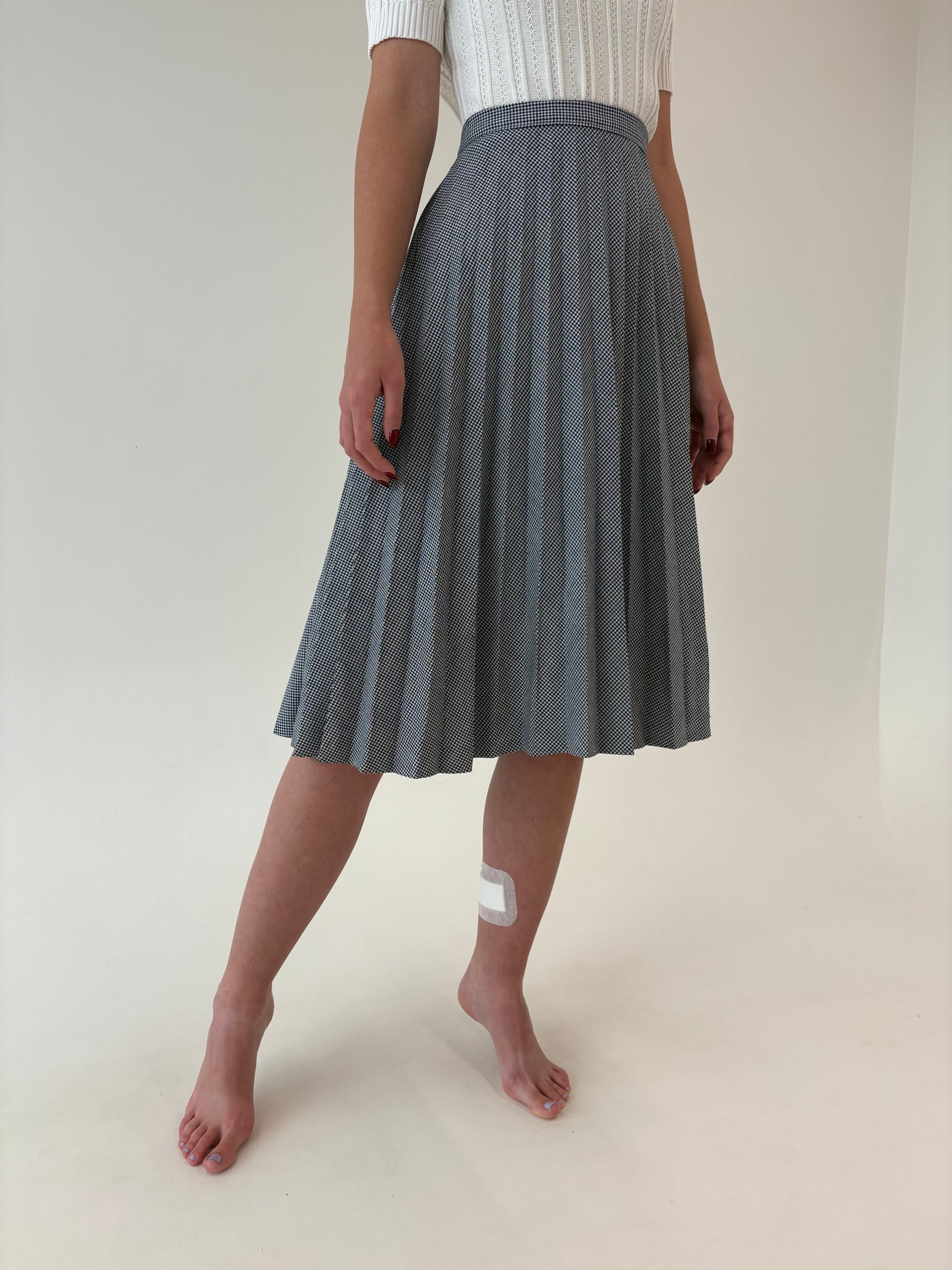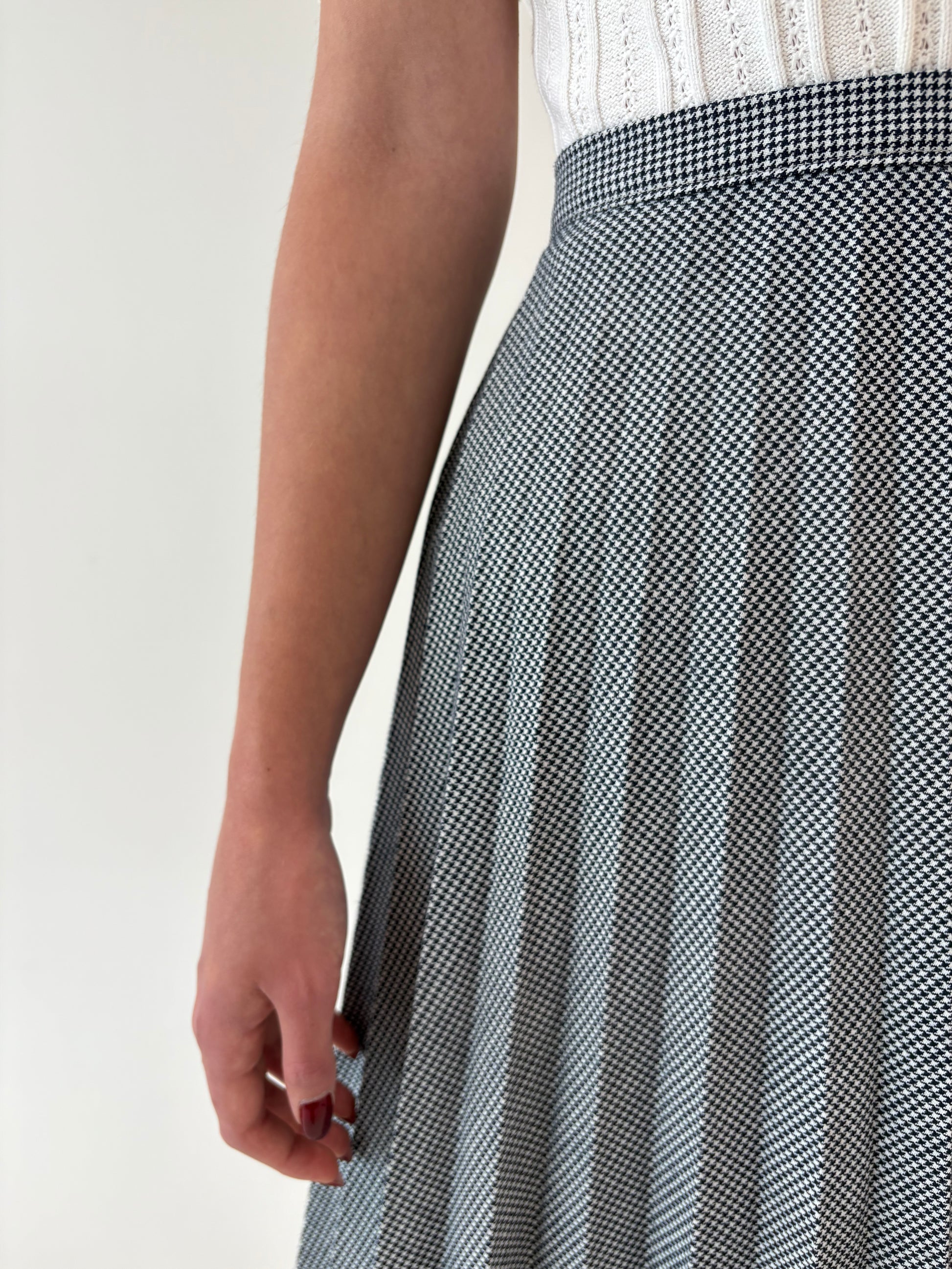 Fustă plisată pied du coq din lana extrafina cu talie ultra înaltă