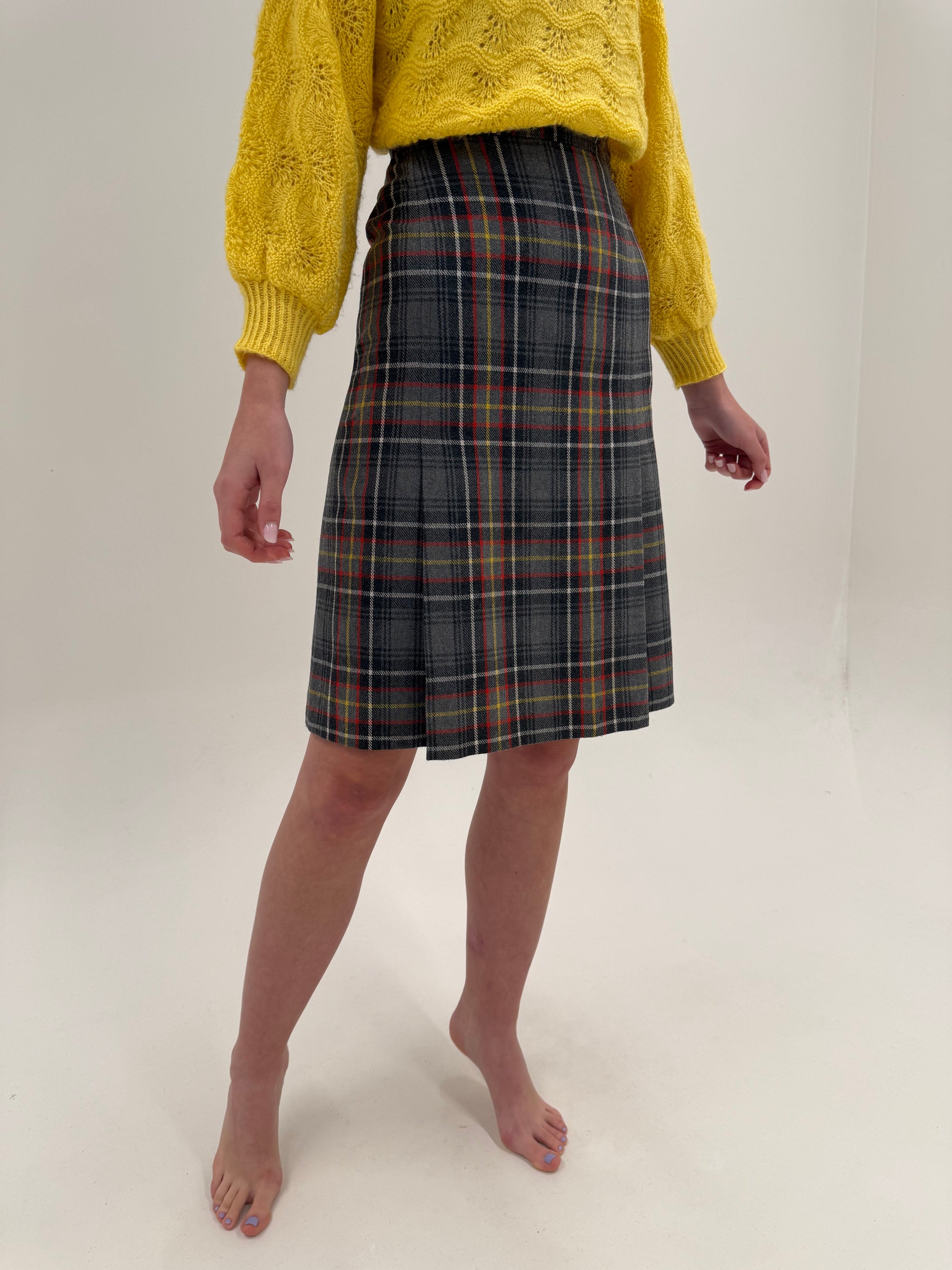 Fustă vintage plisată din Tartan de lana în combinație clasică de culori