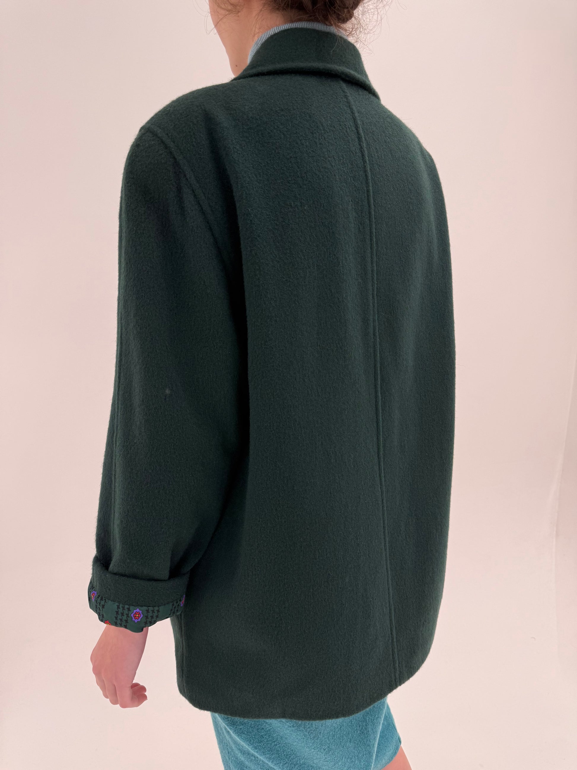 Jacheta vintage de brand luxury plus size Elena Miro din lana plină forest green