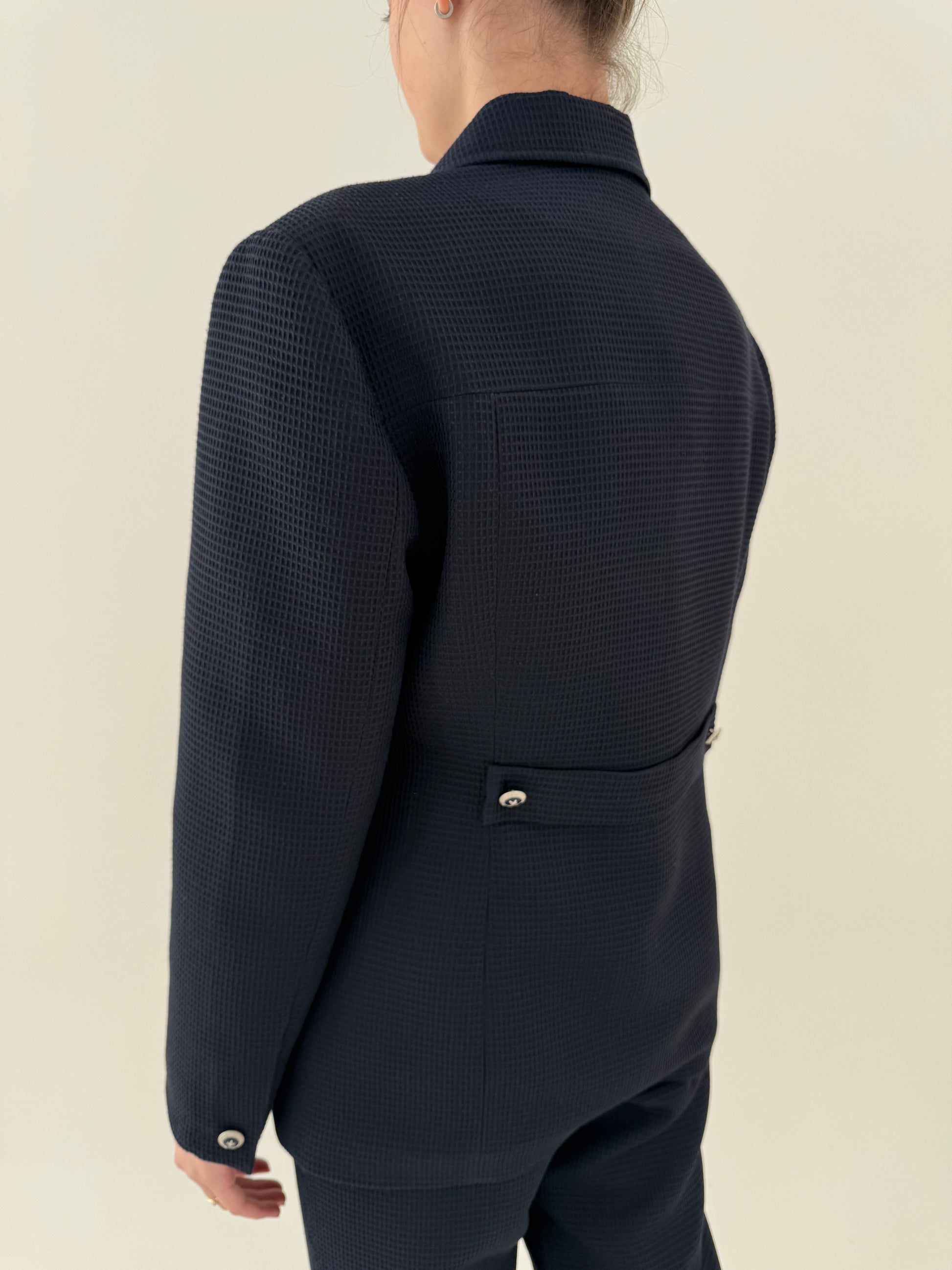 Costum italian high end din seersucker de bumbac plin texturat
