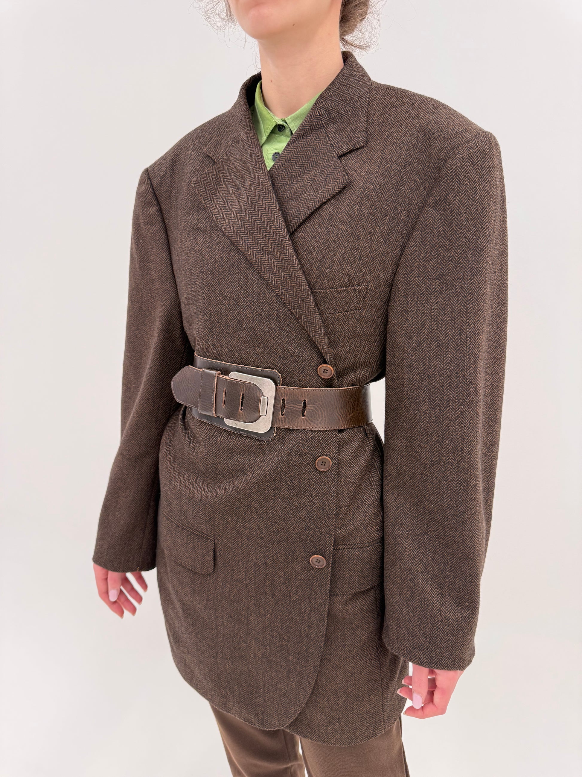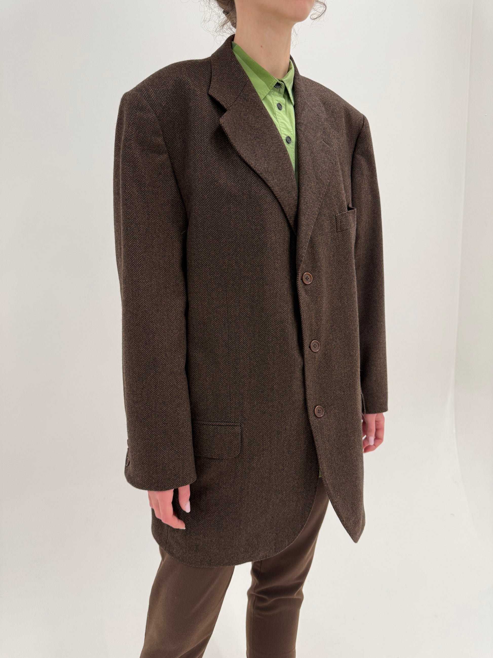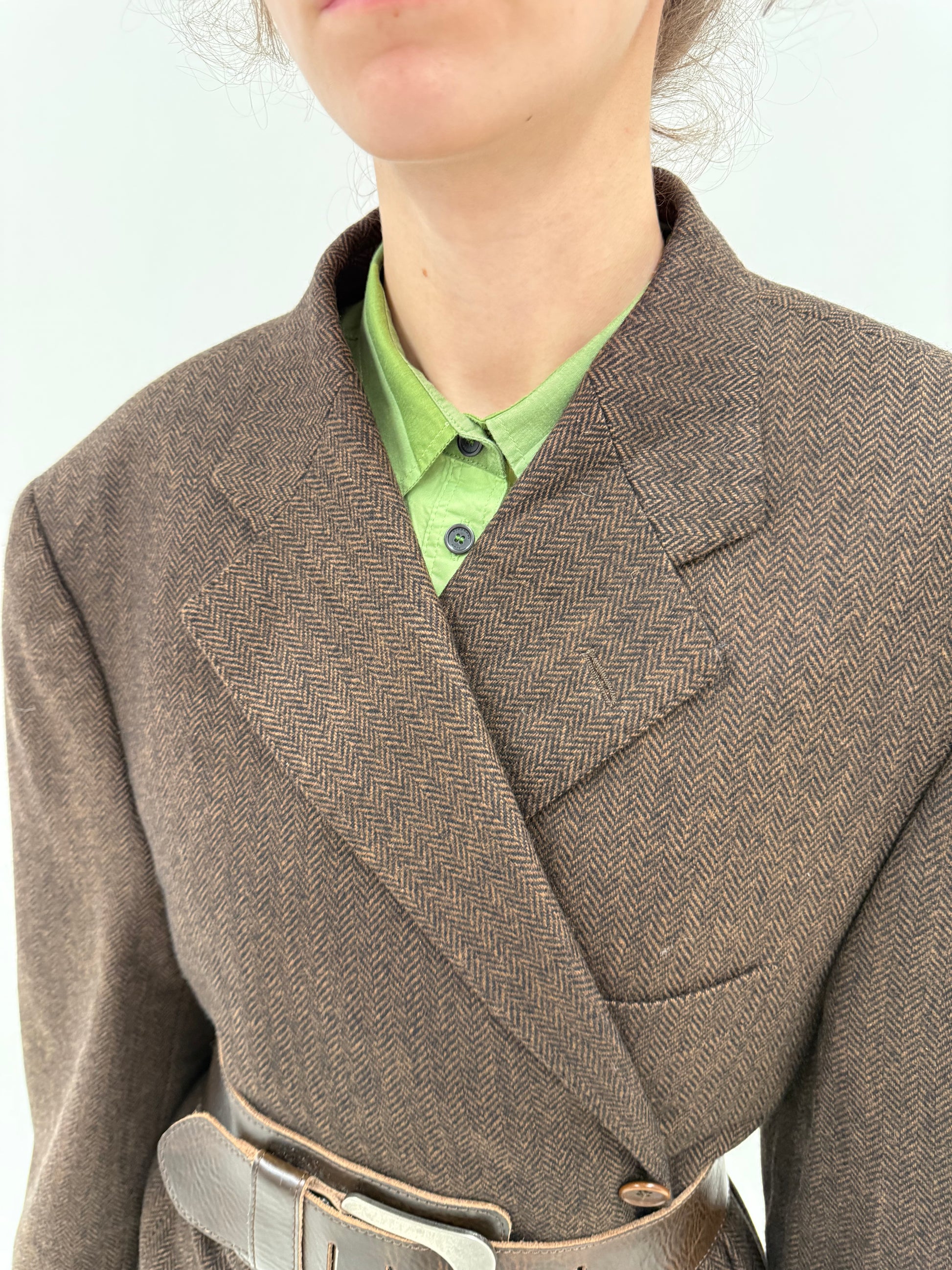 Sacou din stofă 100% cașmir în croi actual camel și negru