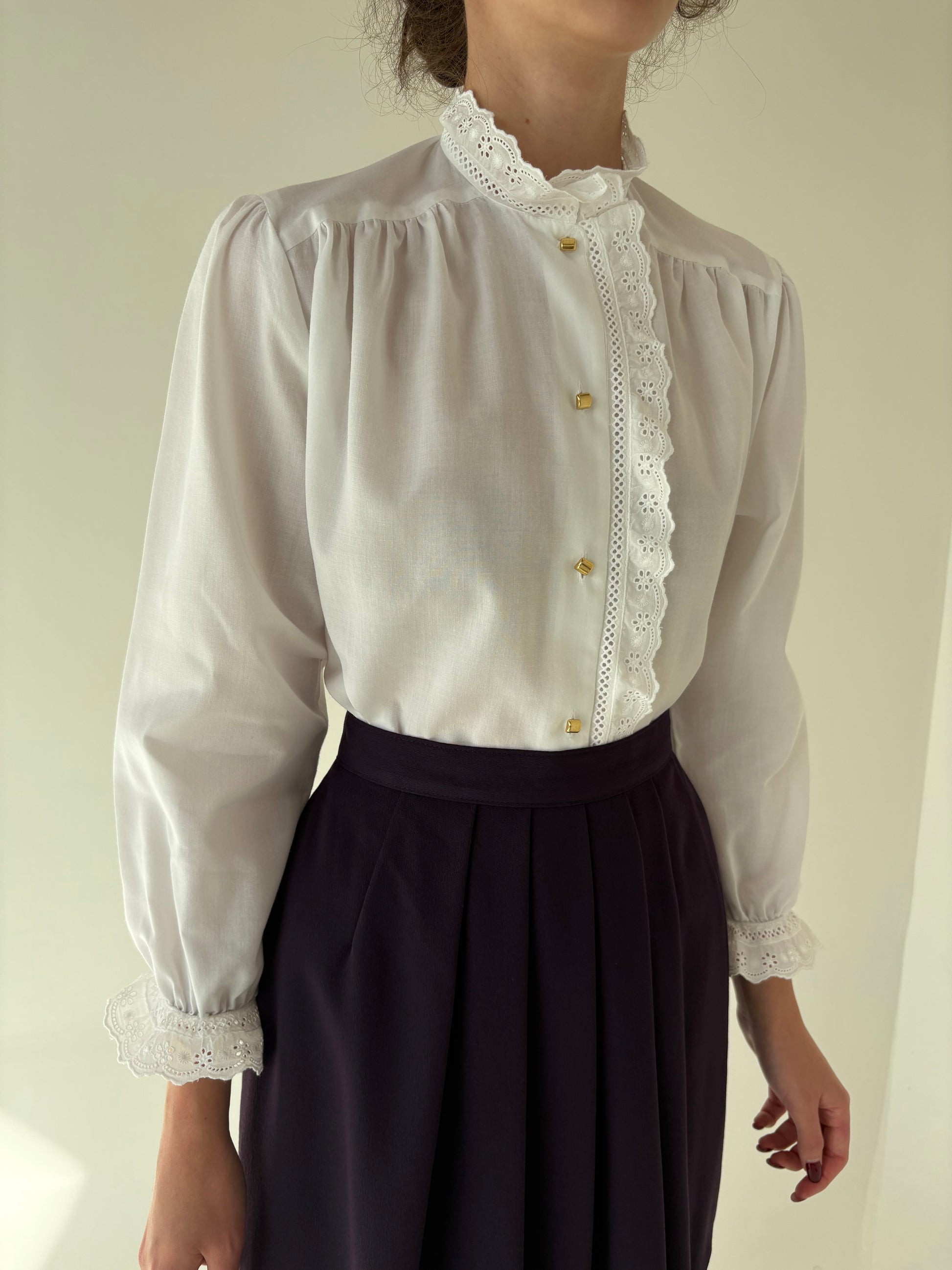 Cămașa vintage cu broderie anglaise și jabou asimetric